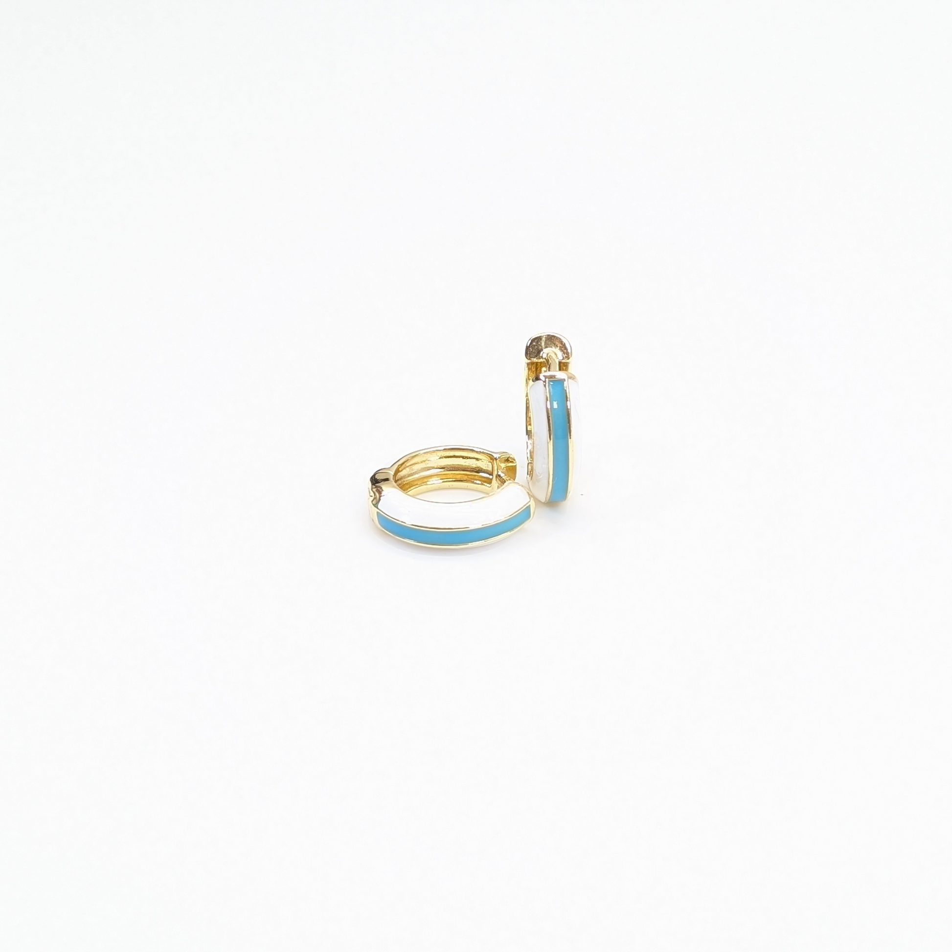 Sky Blue and White Huggie Hoop Earrings with Gold Metal.