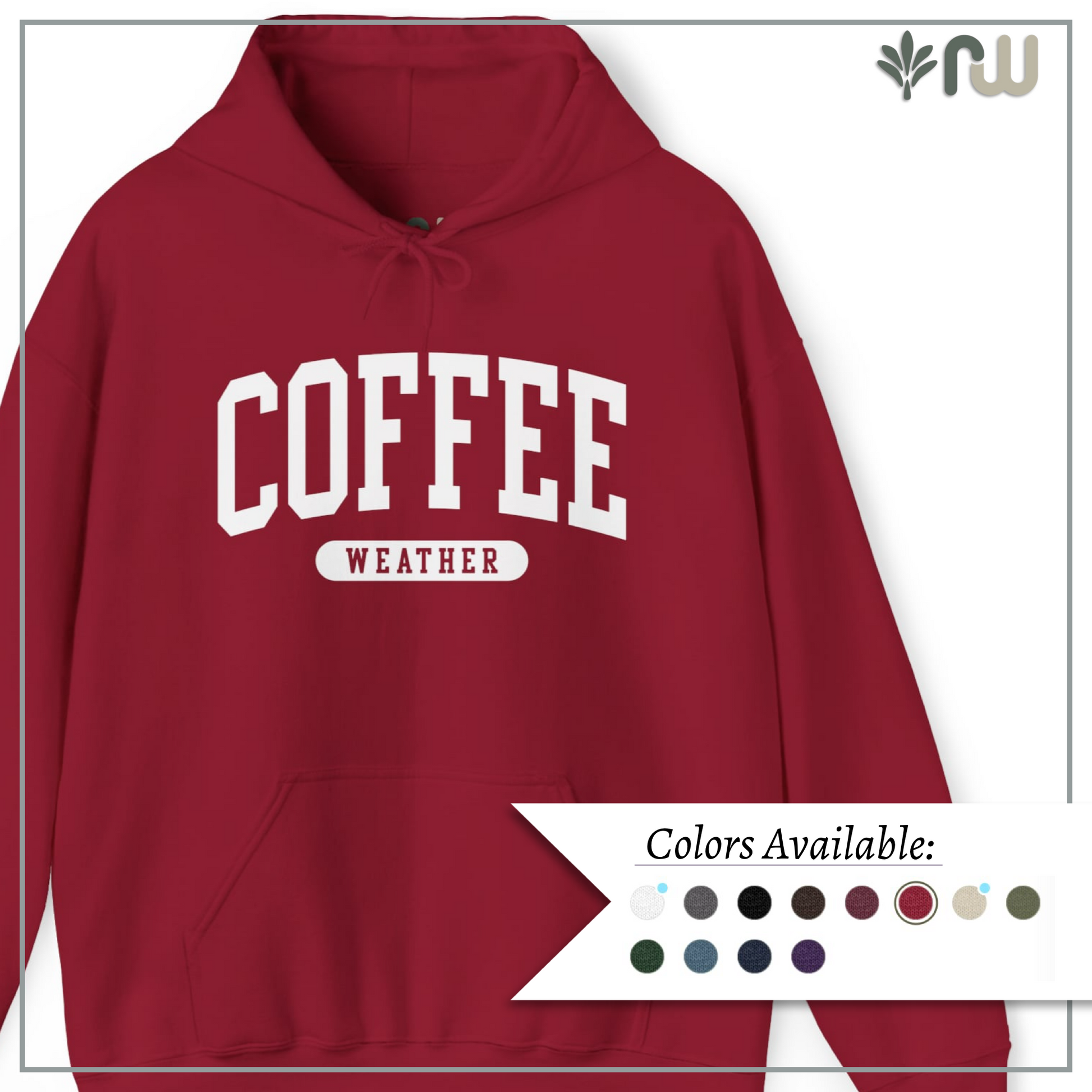 Celebrate the cozy charm of autumn with our "Coffee Weather" hooded sweatshirt, a perfect nod to crisp fall days and warm drinks. Crafted from a soft, warm cotton-blend, this unisex hoodie offers all-day comfort and relaxed style with a drawstring hood for extra coziness. The design features the phrase "Coffee Weather" in a bold, stylish font, evoking the inviting feeling of sipping a hot coffee on a chilly morning. Perfect for layering during cool autumn outings or gifting to fellow coffee lovers, this hoodie captures the essence of fall’s cozy, comforting vibe.