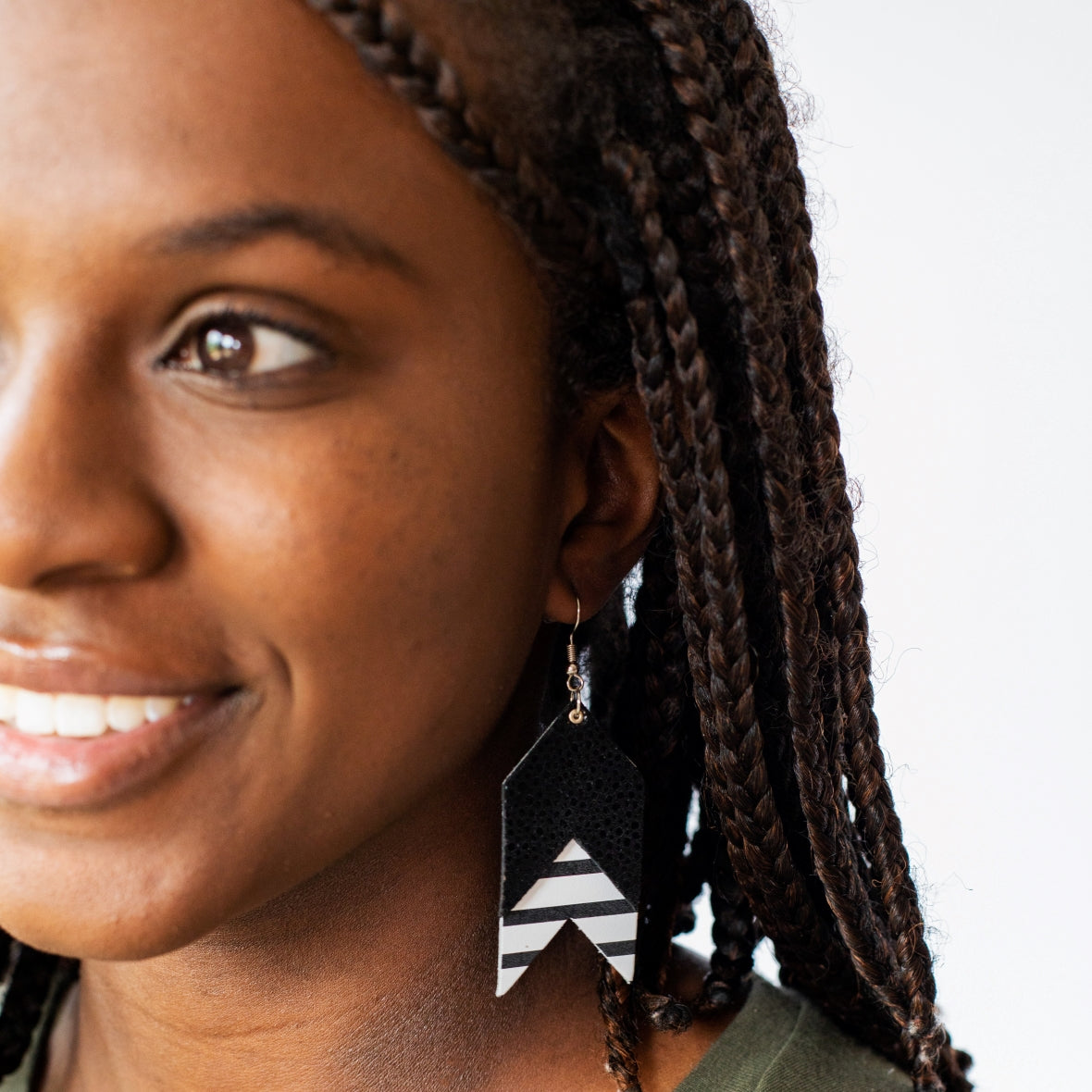 Lightweight, ribbon-shaped earrings. Customize in your choice of leather.