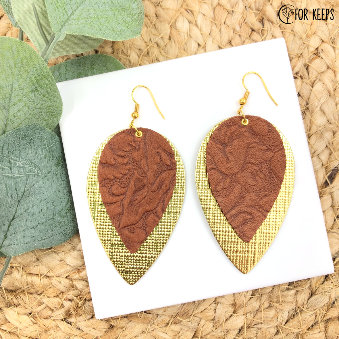 Double layered, lightweight, spade-shaped earrings. Customize in your choice of leather.
