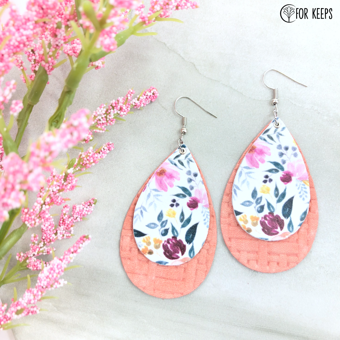 Double layered, lightweight, teardrop-shaped earrings. Customize in your choice of leather.