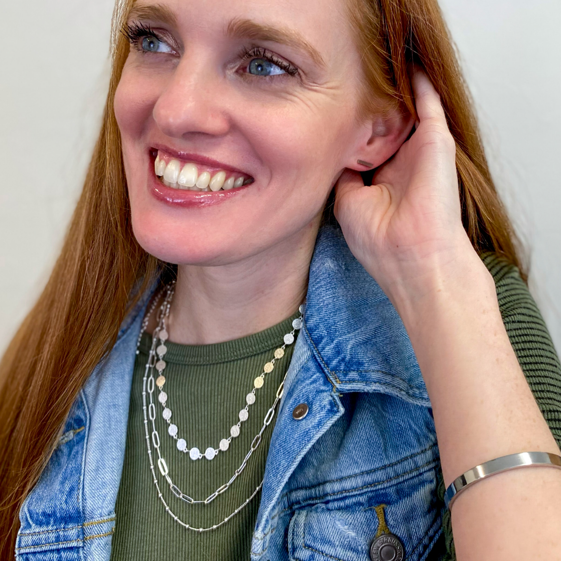 Layer this necklace with our other minimalist necklaces: Ariel and Emery