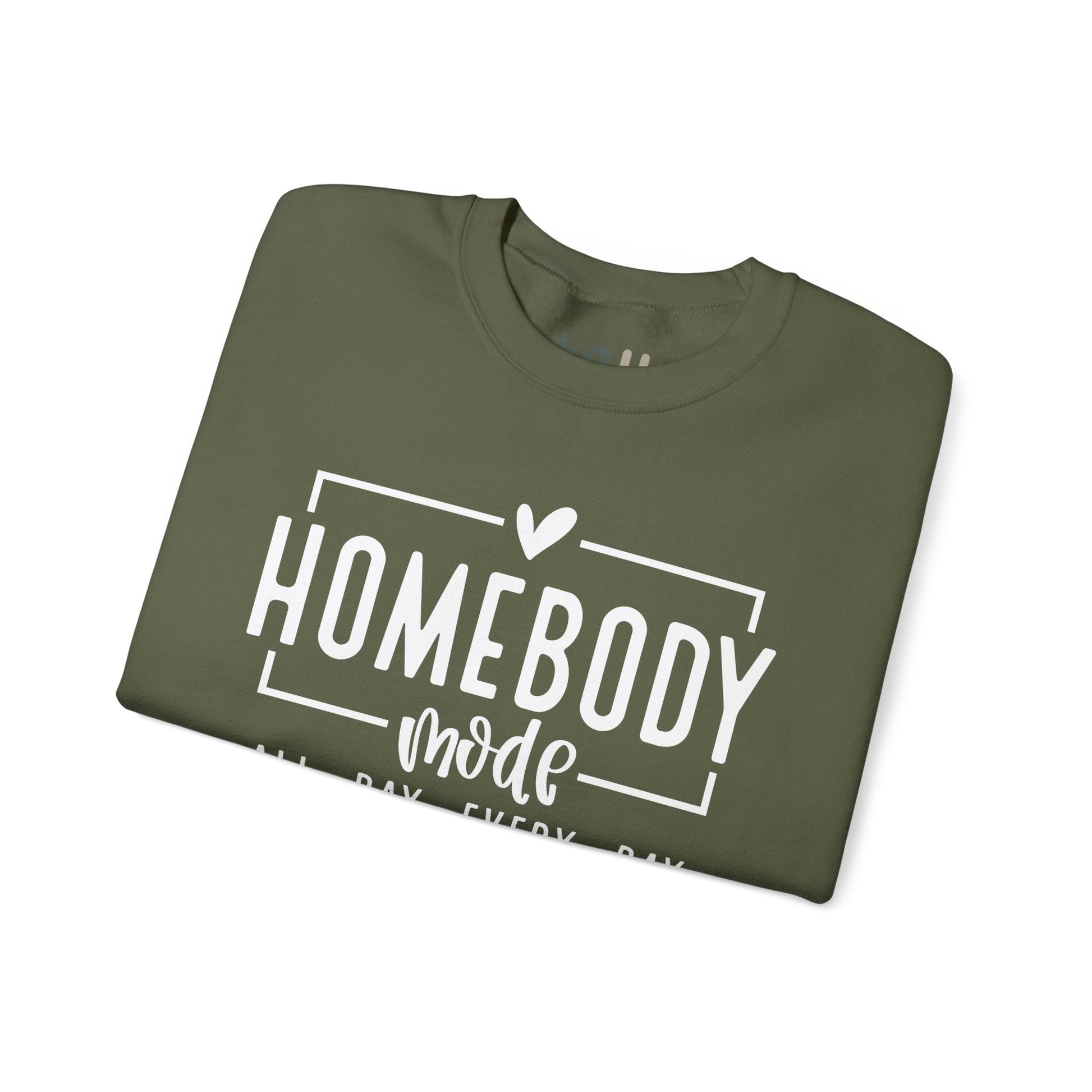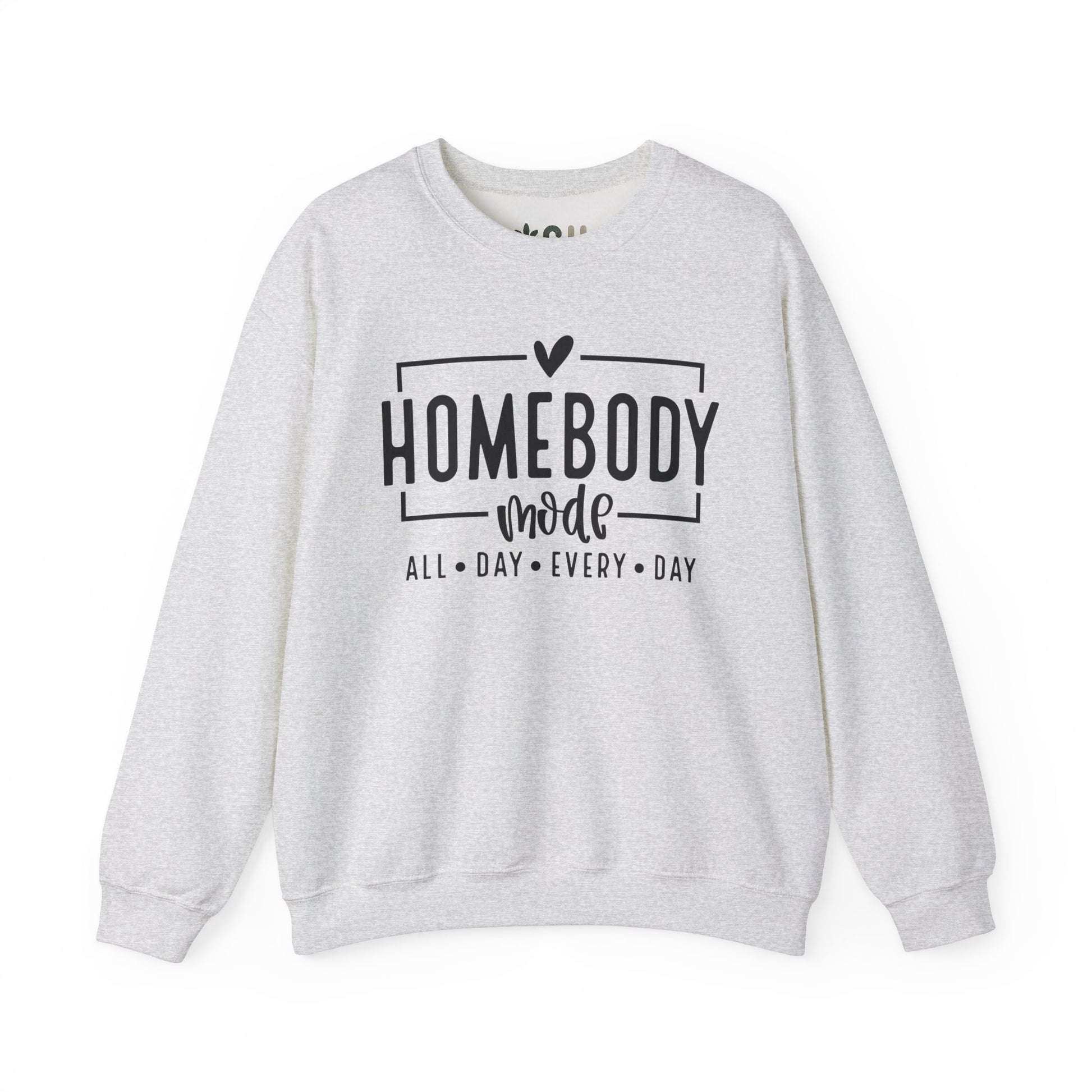 This cozy 'Homebody Mode' sweatshirt is perfect for those who love staying in and relaxing. It offers a clean-cut style with a comfy fit, making it ideal for lounging at home or running errands with a laid-back vibe. It's a great piece to wear during the colder months and makes a thoughtful gift for someone who enjoys their downtime. Perfect for adults, this sweatshirt is made with a medium-heavy fabric blend for ultimate comfort.