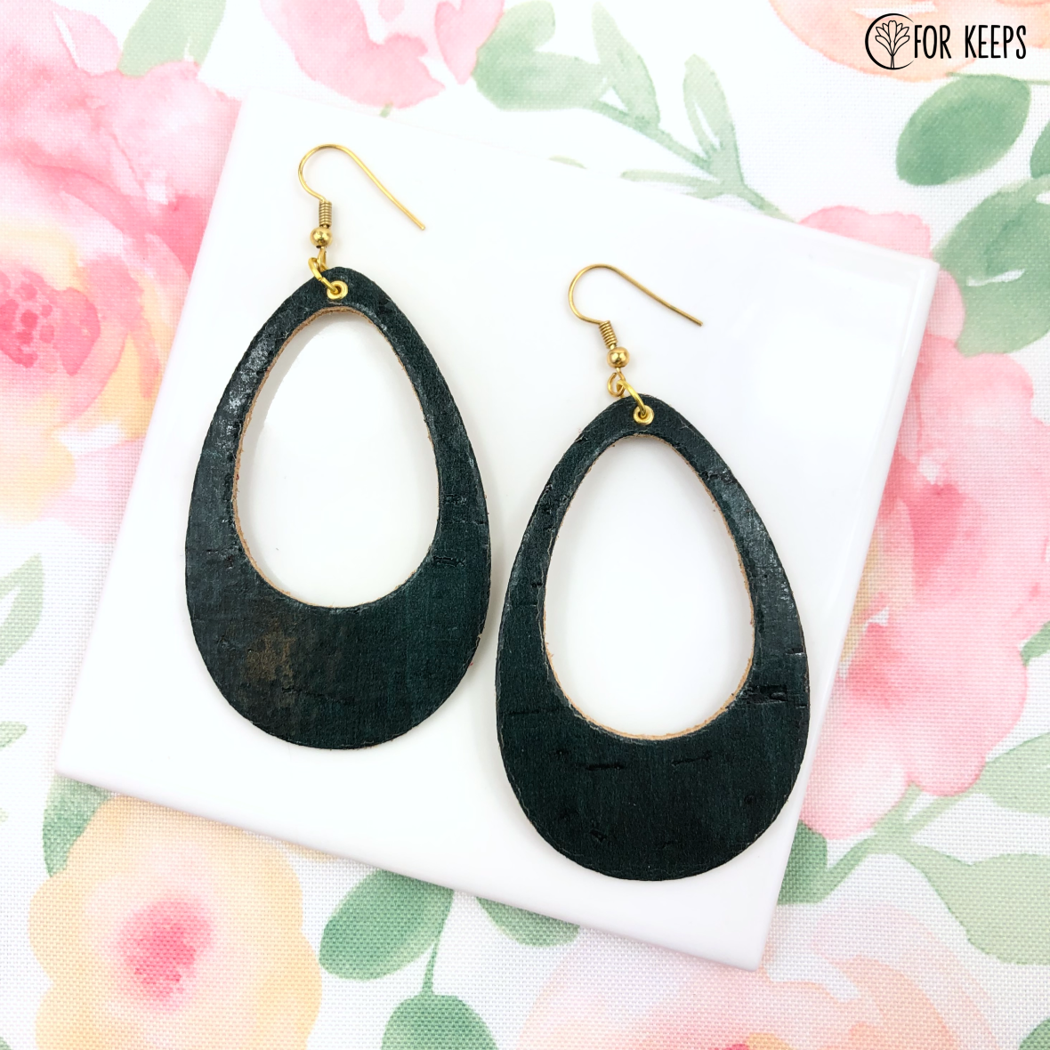 Lightweight, teardrop-shaped hoop earrings. Customize in your choice of leather.