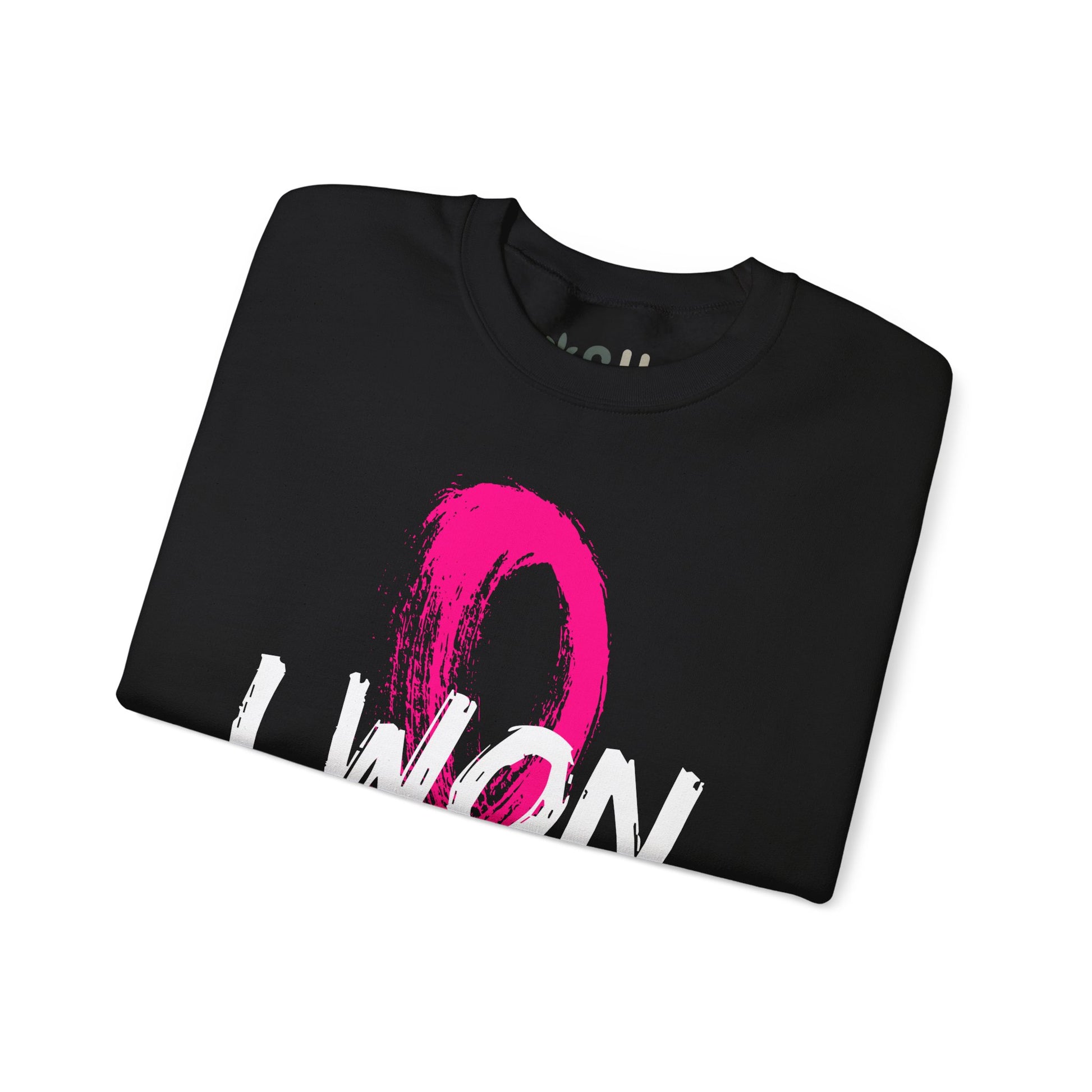 Celebrate triumph with our "I Won" breast cancer awareness crewneck sweatshirt, a bold statement of victory and resilience. Crafted from soft, breathable cotton-blend fabric, this unisex sweatshirt delivers all-day comfort and a relaxed fit in a striking black design. The powerful graphic features a vibrant pink ribbon intertwined with the words "I Won" in bold white text, symbolizing strength and hope. Perfect for chilly days, survivors, supporters, or gifting to those inspired by the cause, this crewneck is a proud way to honor the battle against breast cancer.