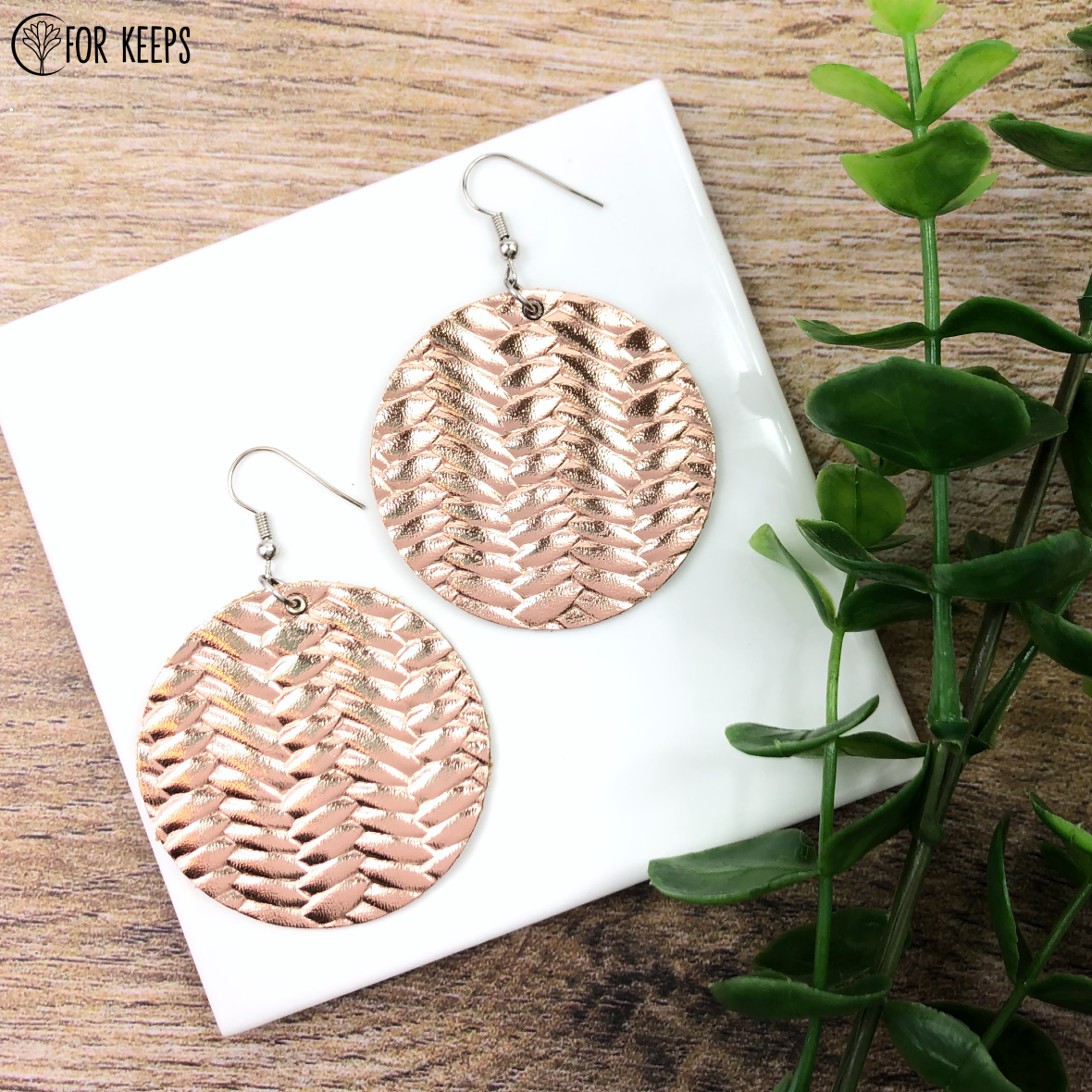Lightweight, round-shaped earrings. Customize in your choice of leather.