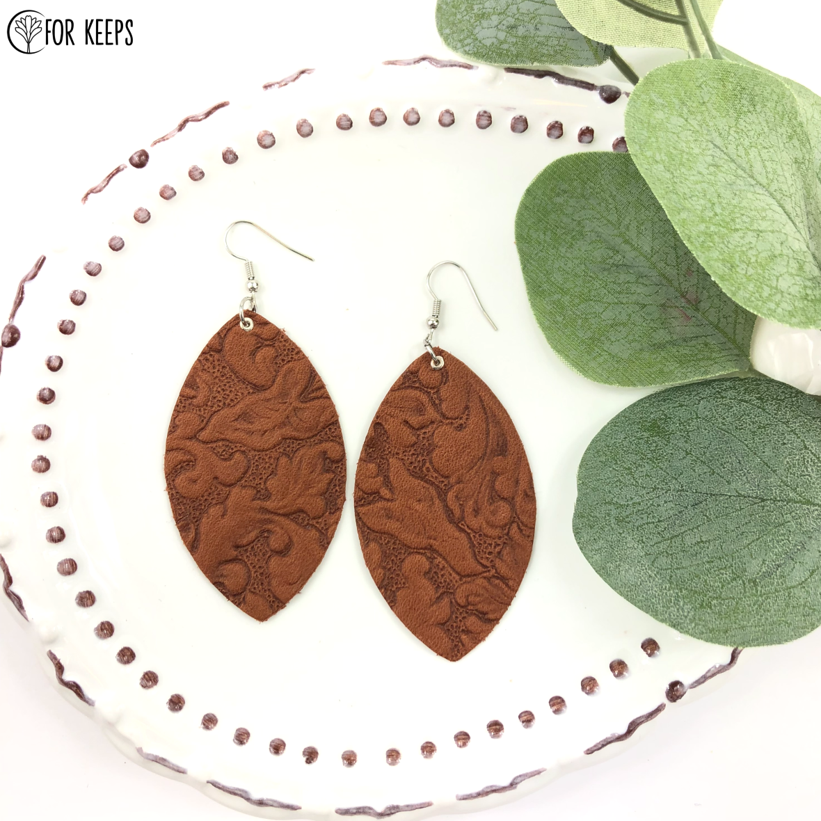 Lightweight, leaf-shaped earrings. Customize in your choice of leather.