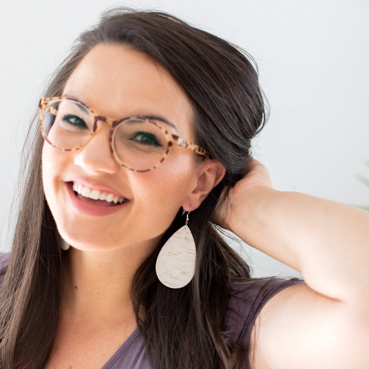 Lightweight, teardrop-shaped leather earrings. Customize in your choice of leather, metal, and hardware.