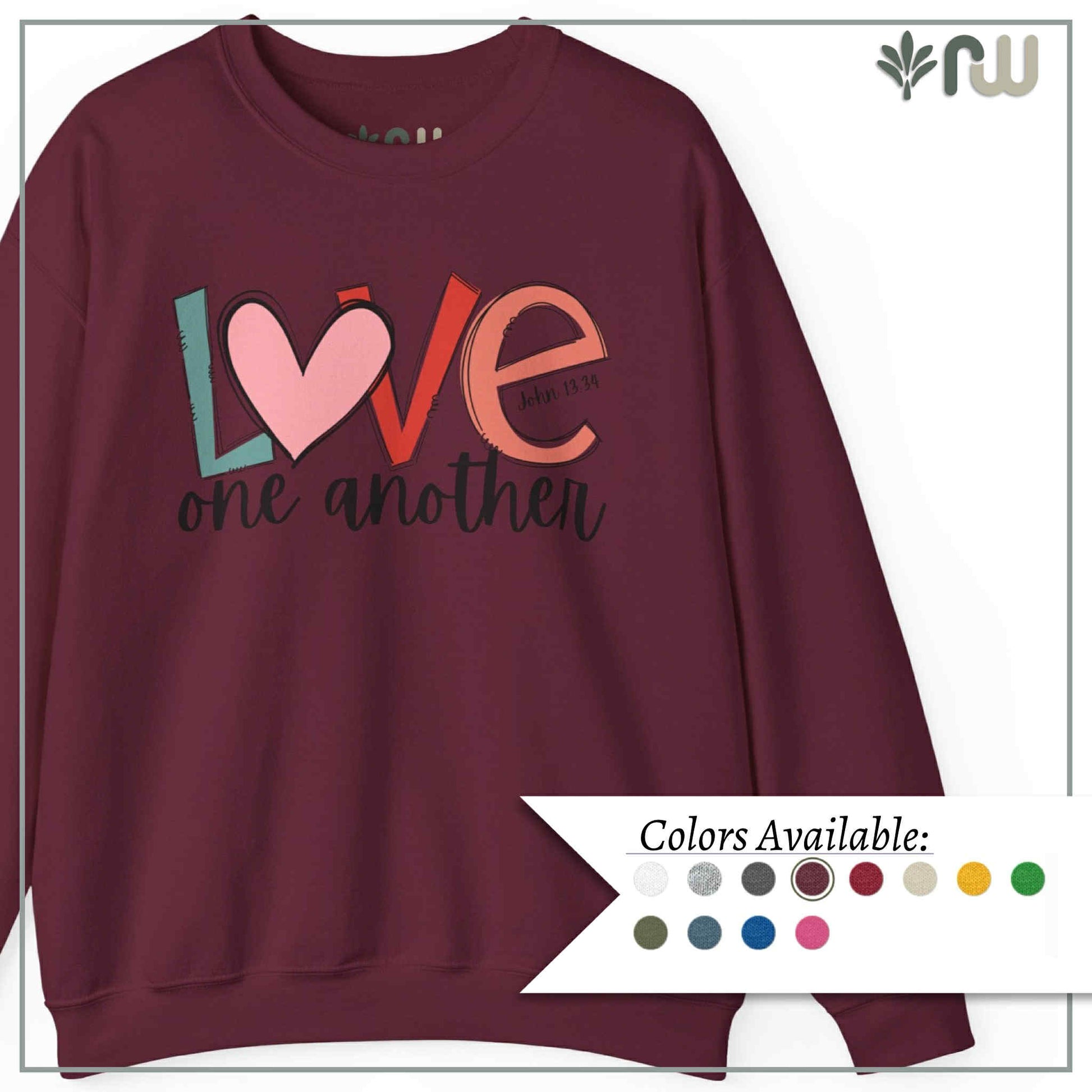 The world needs more love! Wrap yourself in the warmth of compassion with this crewneck sweatshirt, inspired by the timeless message of John 13:34, "Love One Another." This cozy sweatshirt features a heartfelt design that radiates unity and kindness. Made from soft, comfortable fabric, it’s perfect for chilly days, whether you're spreading love or embracing the spirit of togetherness. Wear it, cherish it, and inspire love in style!