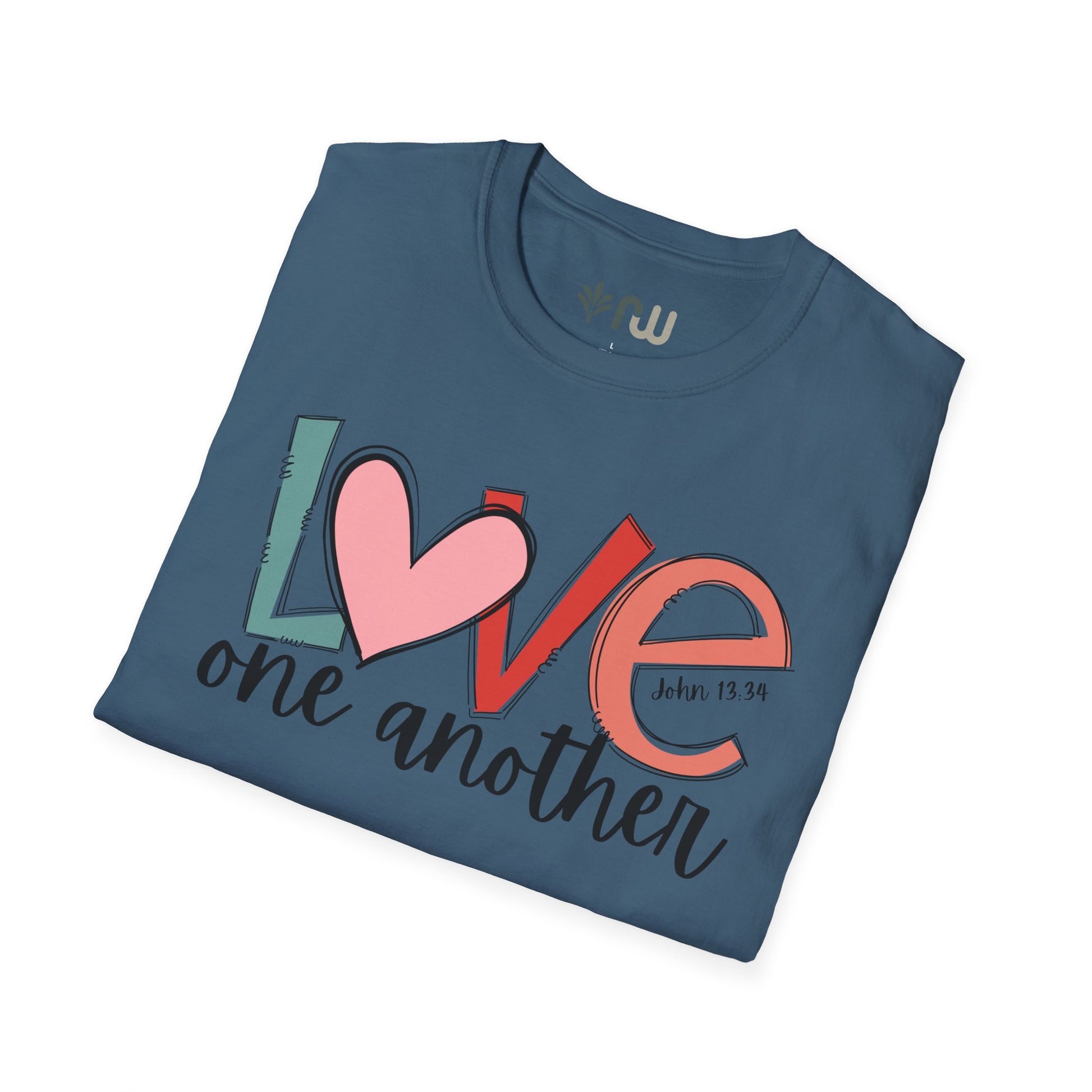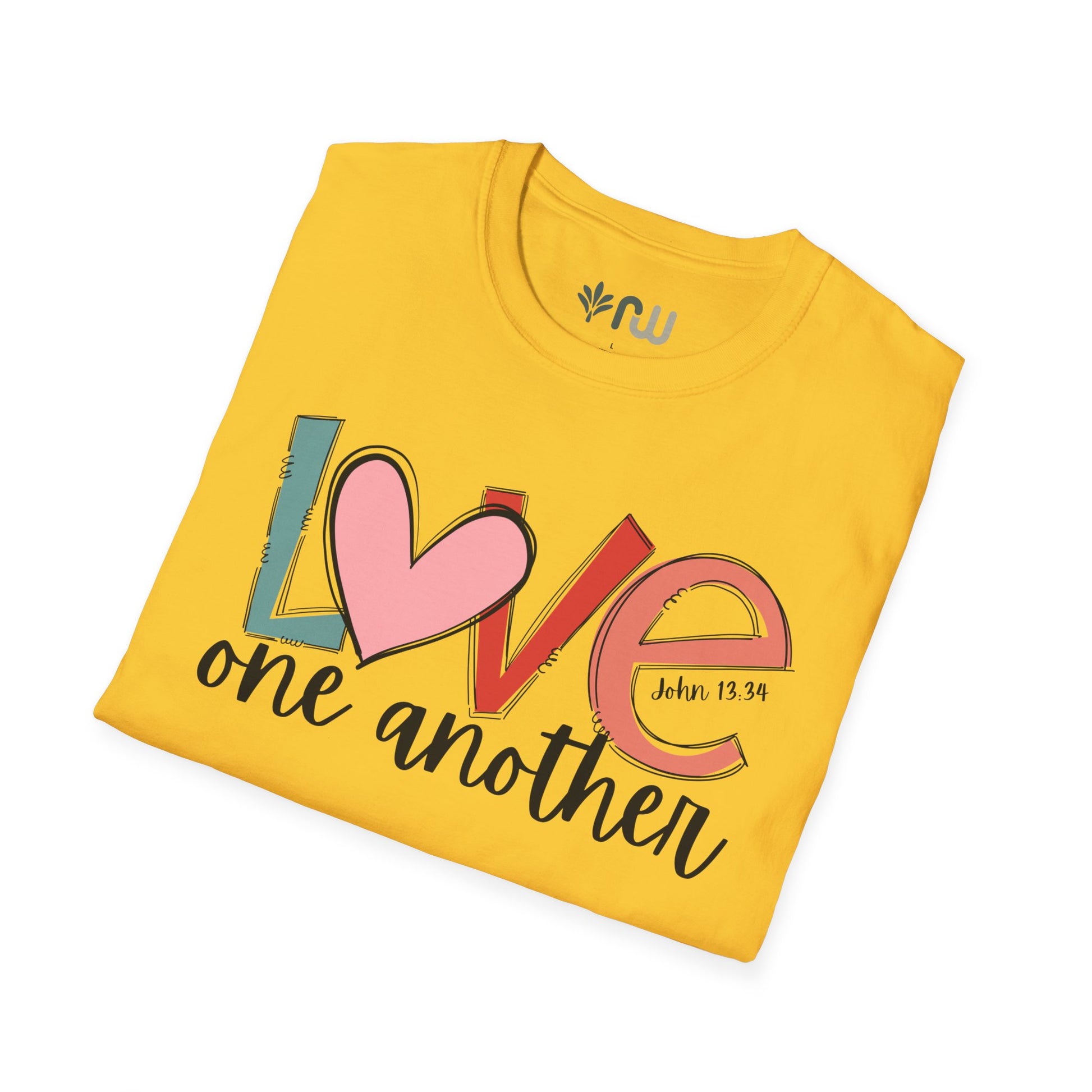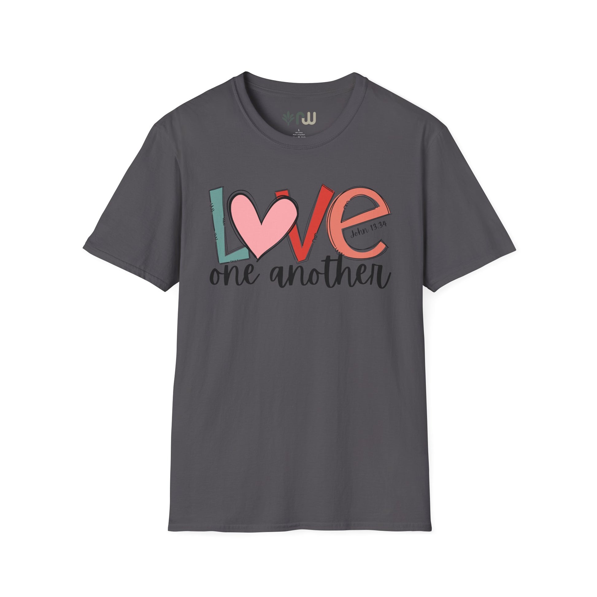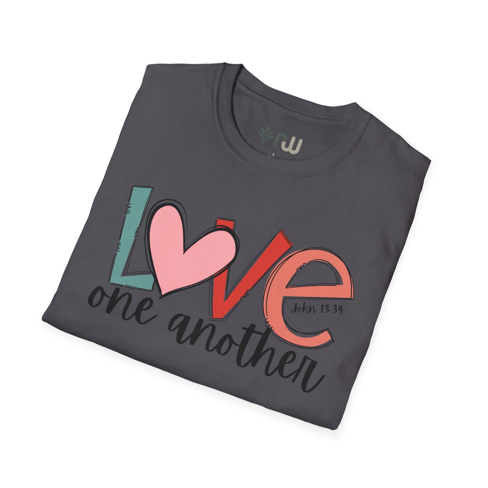 The world needs more love! Spread the message of love with this T-shirt, inspired by the timeless wisdom of John 13:34, "Love One Another." This stylish tee features a heartfelt design that captures the essence of compassion and unity. Crafted from soft, comfortable fabric, it’s perfect for everyday wear, whether you're sharing kindness or embracing the spirit of togetherness. Wear it, live it, and inspire love in style!
