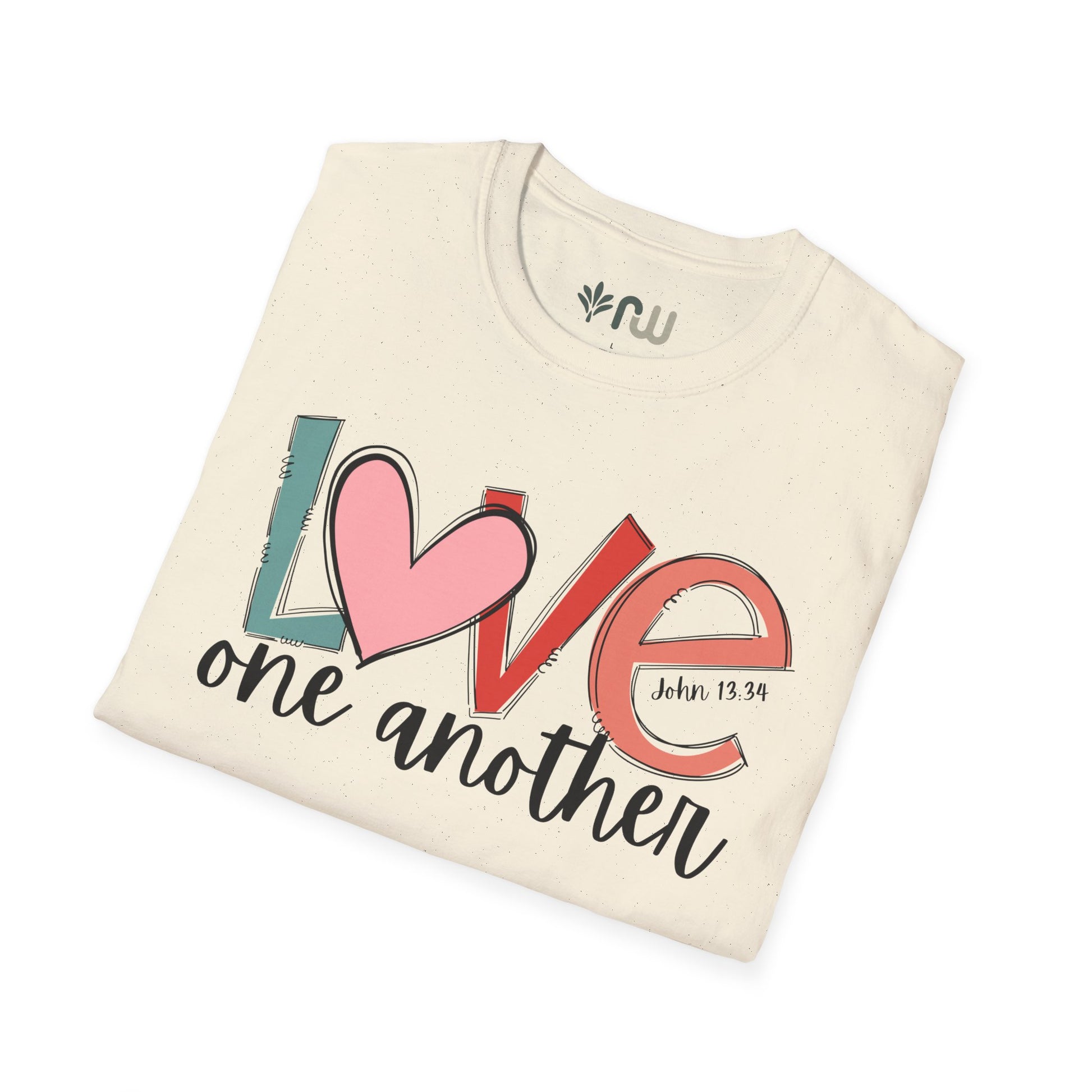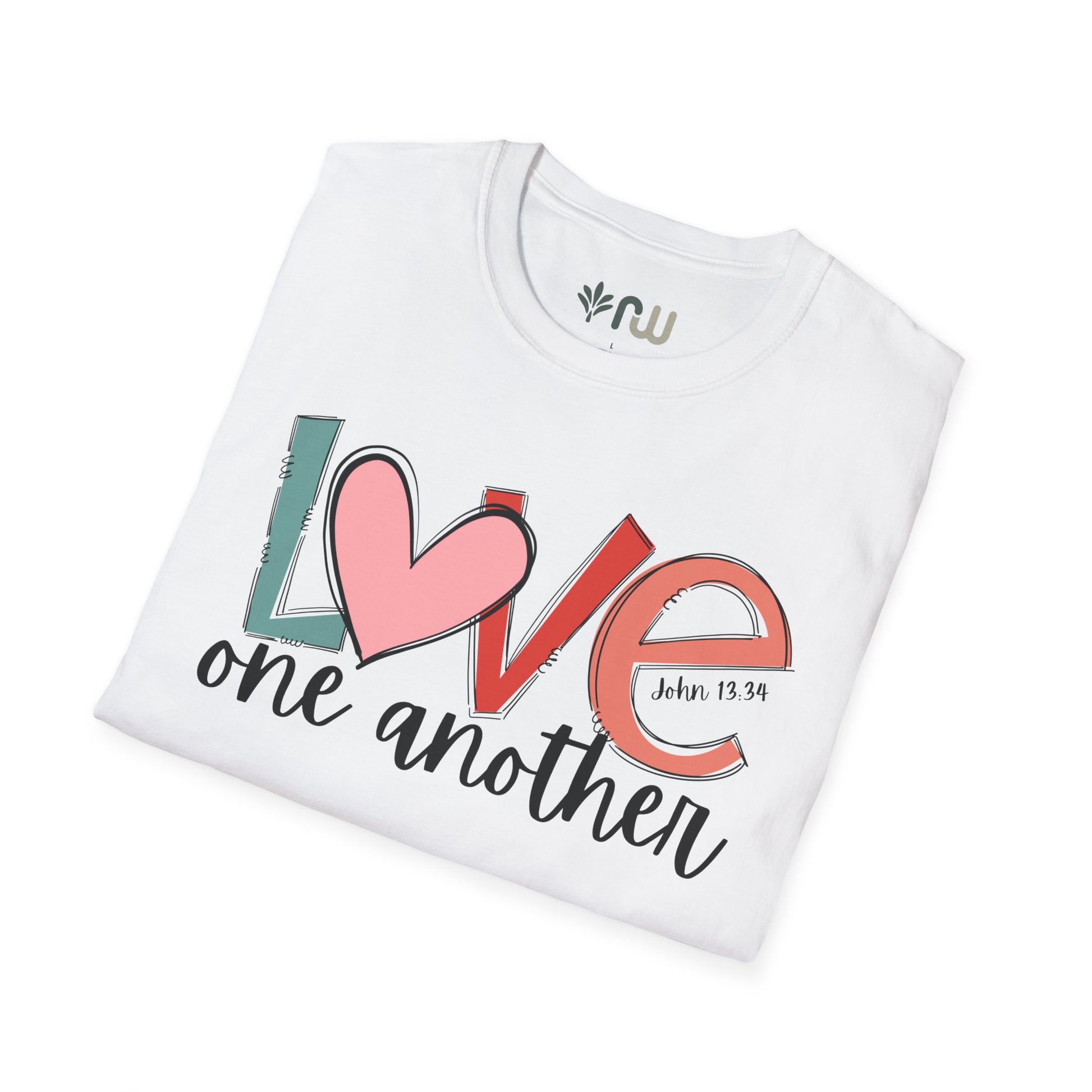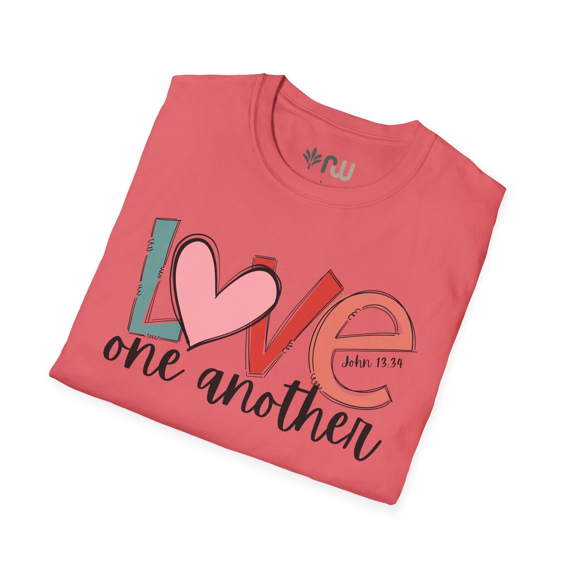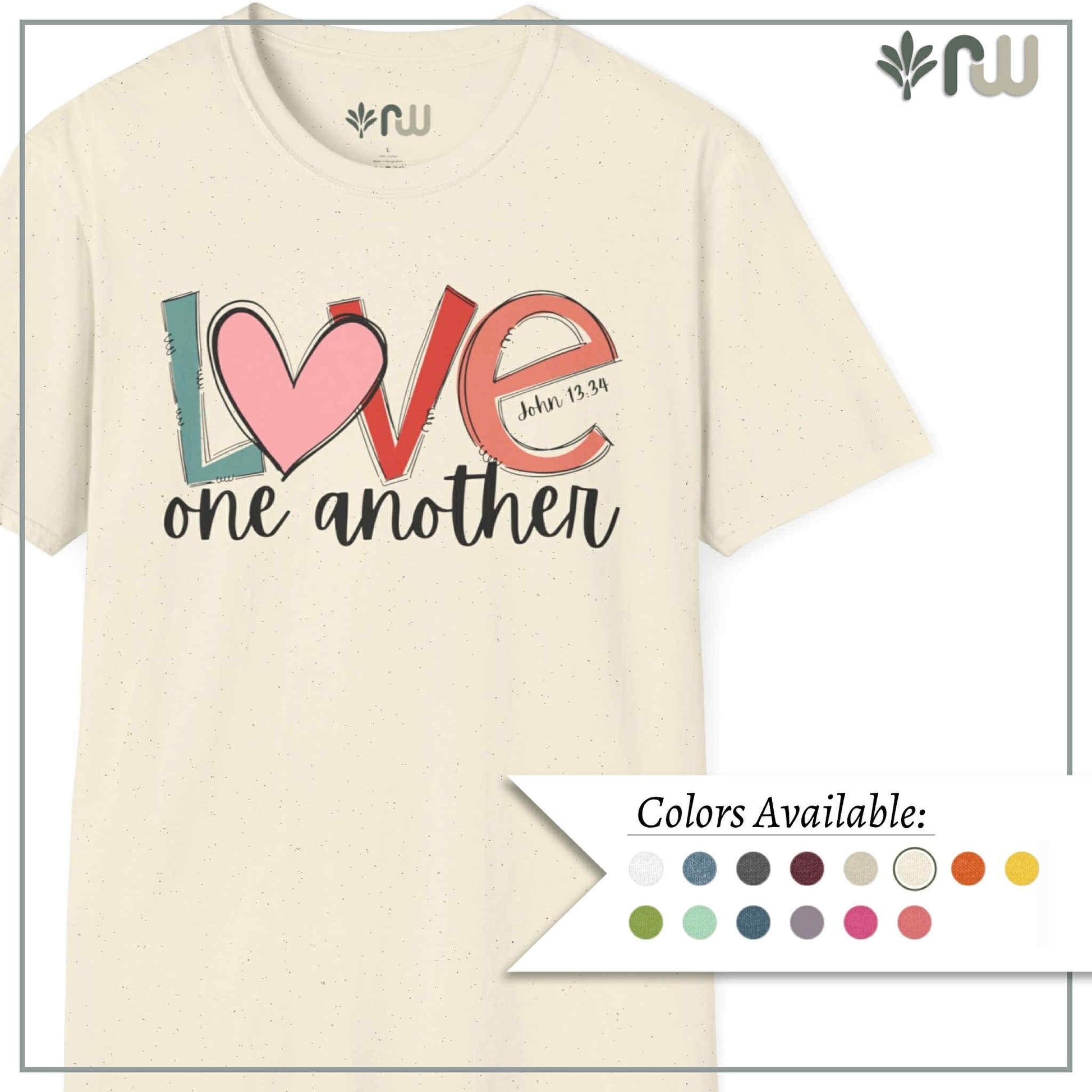 The world needs more love! Spread the message of love with this T-shirt, inspired by the timeless wisdom of John 13:34, "Love One Another." This stylish tee features a heartfelt design that captures the essence of compassion and unity. Crafted from soft, comfortable fabric, it’s perfect for everyday wear, whether you're sharing kindness or embracing the spirit of togetherness. Wear it, live it, and inspire love in style!