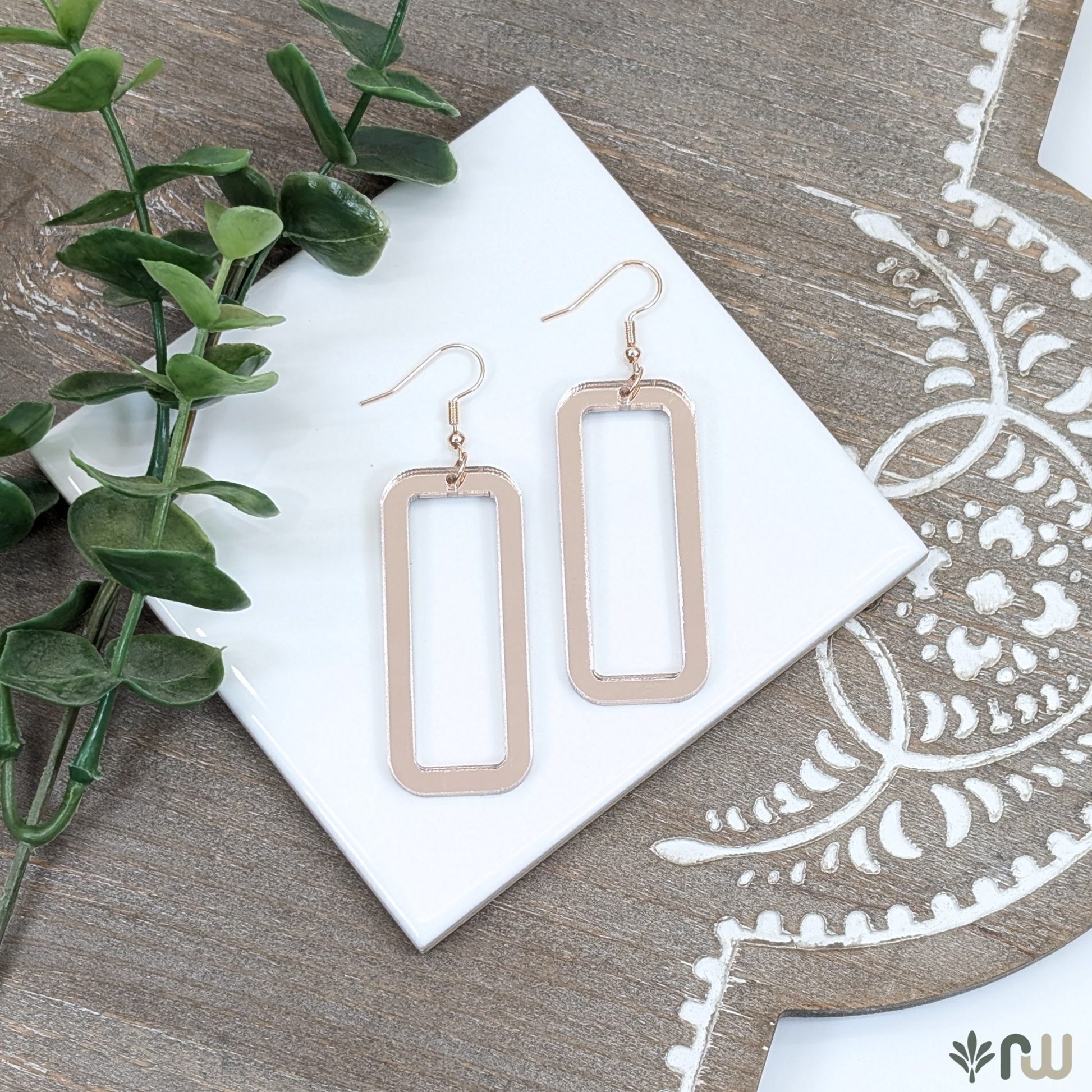 Rounded Rectangle Earrings. Customize in Your Choice of Acrylic or Hardwood.