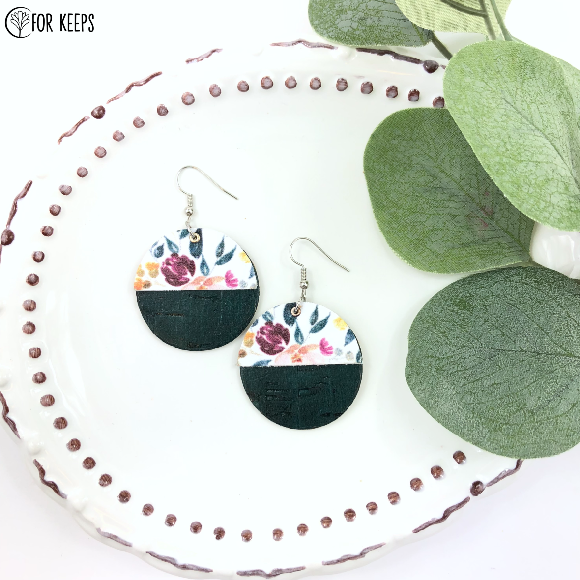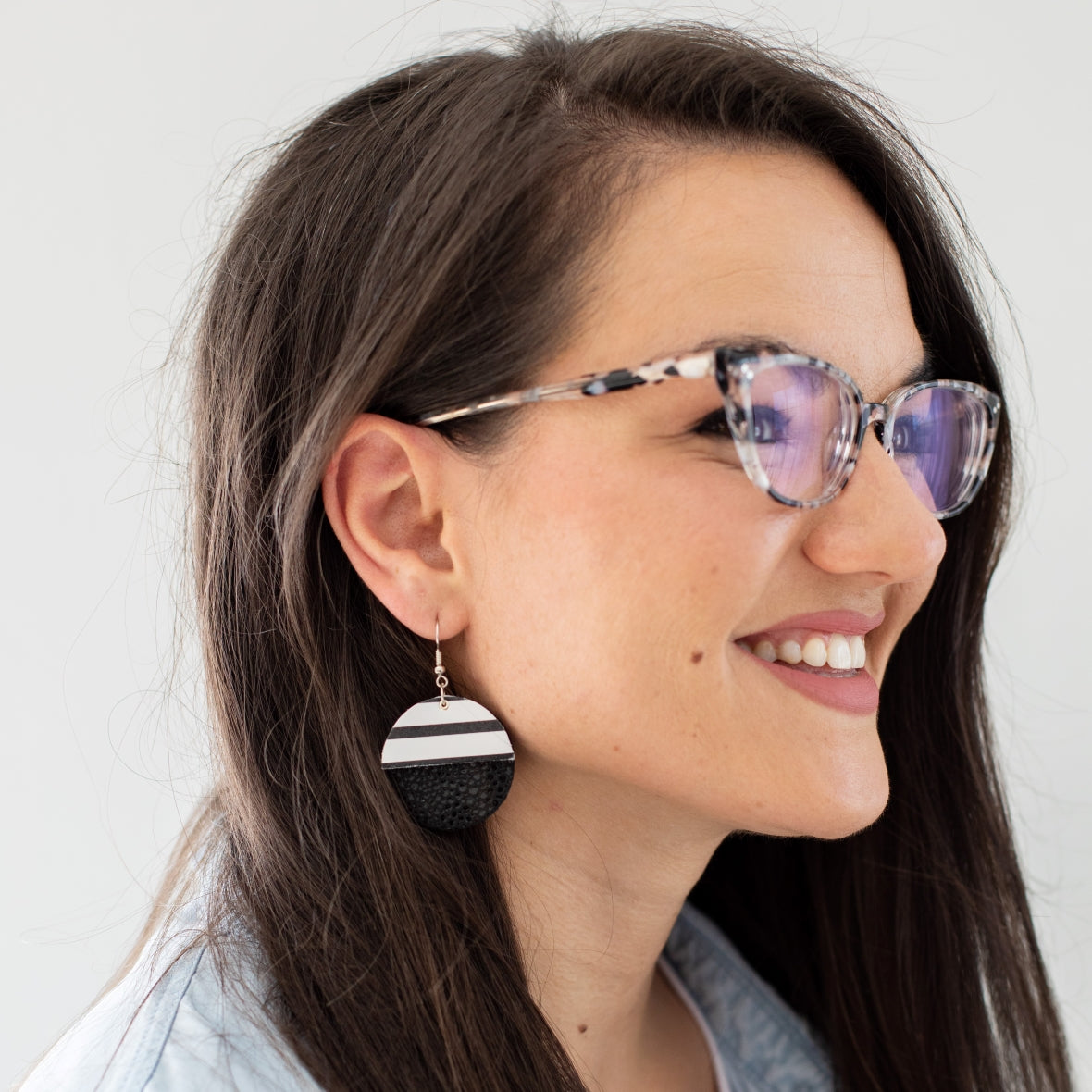 Double layered, lightweight, round-earring with half circle on top layer. Customize in your choice of leather.