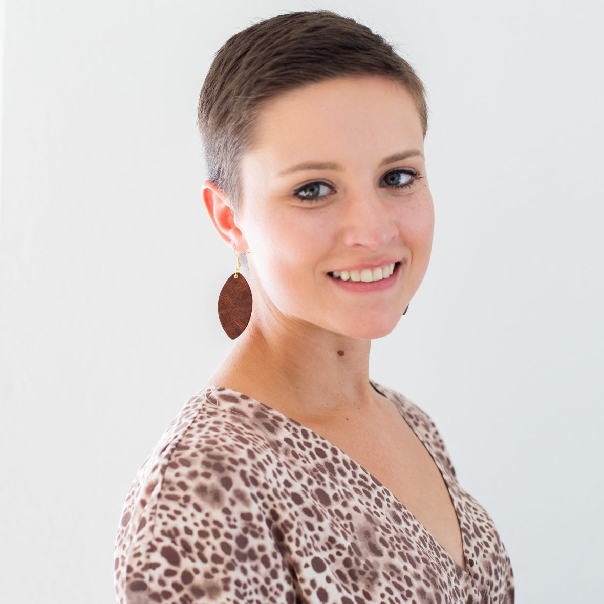 Lightweight, leaf-shaped earrings. Customize in your choice of leather.