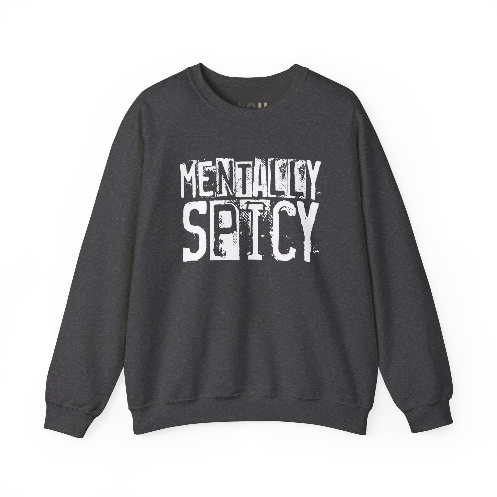 Ignite your bold side with our "Mentally Spicy" crewneck sweatshirt, a playful celebration of a fiery mindset. Crafted from soft, breathable cotton-blend fabric, this unisex sweatshirt delivers all-day comfort and a relaxed fit in a stylish taupe color. The edgy design features "Mentally Spicy" in a distressed, eye-catching font, blending humor with a touch of heat. Ideal for chilly days or gifting to someone with a spirited personality, this crewneck is a fun way to showcase your unique flair.
