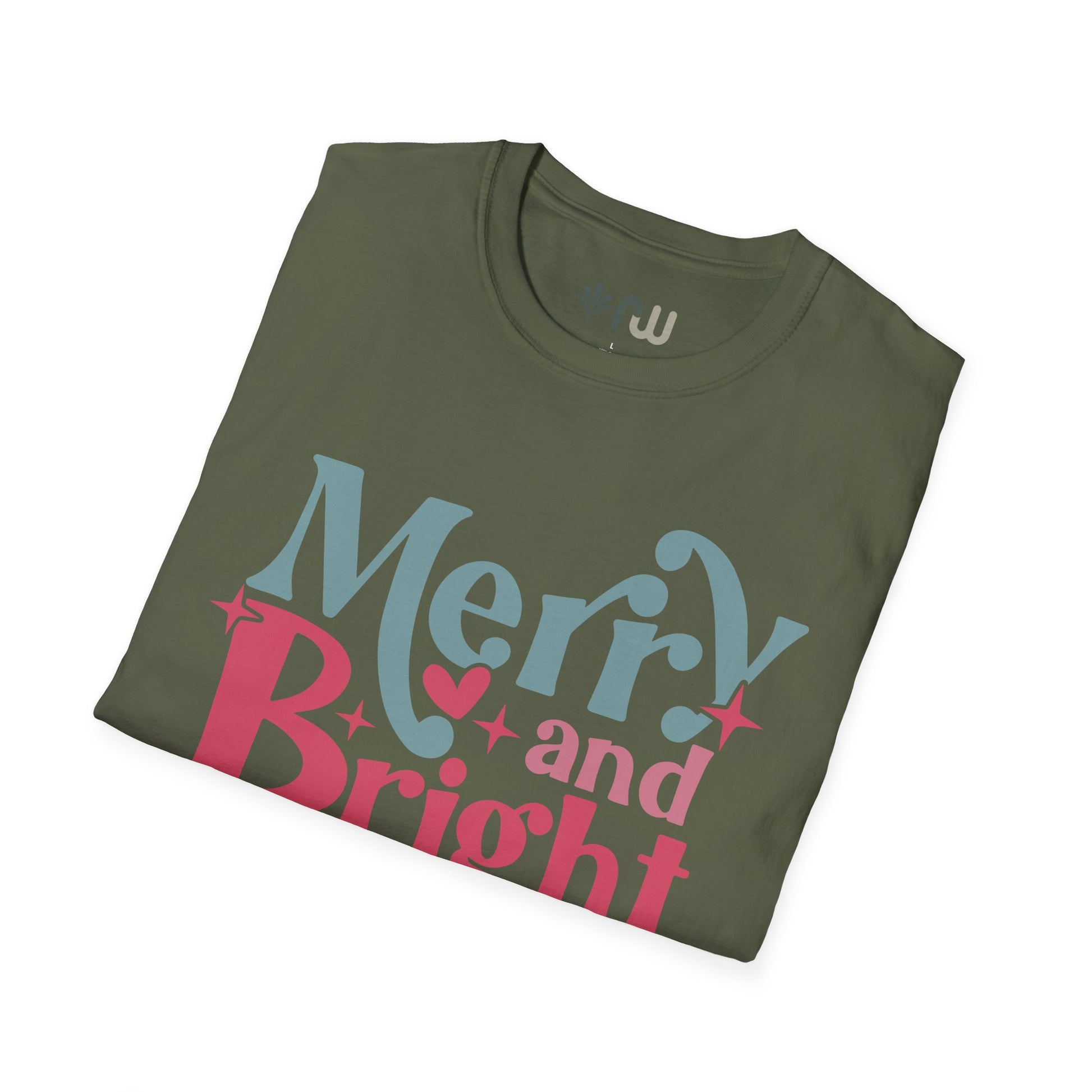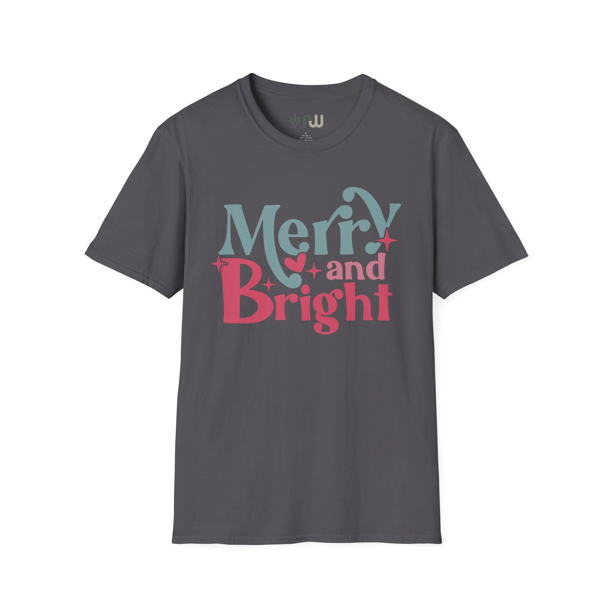 Rock the holiday vibes with our "Merry & Bright" t-shirt—the perfect blend of festive cheer and effortless style. Crafted from soft, breathable 100% ring-spun cotton (or cotton-blend for heather colors), this unisex tee offers a lightweight, relaxed fit that’s ideal for layering under jackets or wearing on its own during milder winter days. The eye-catching design features the words “Merry & Bright” in playful, retro-inspired lettering with soft pastel tones, tiny sparkle accents, and a joyful whimsical vibe. Perfect for Christmas light viewings, holiday parties, cookie decorating, or gifting to anyone who loves spreading seasonal joy, this t-shirt is a trendy way to glow with merry-and-bright energy all season long.