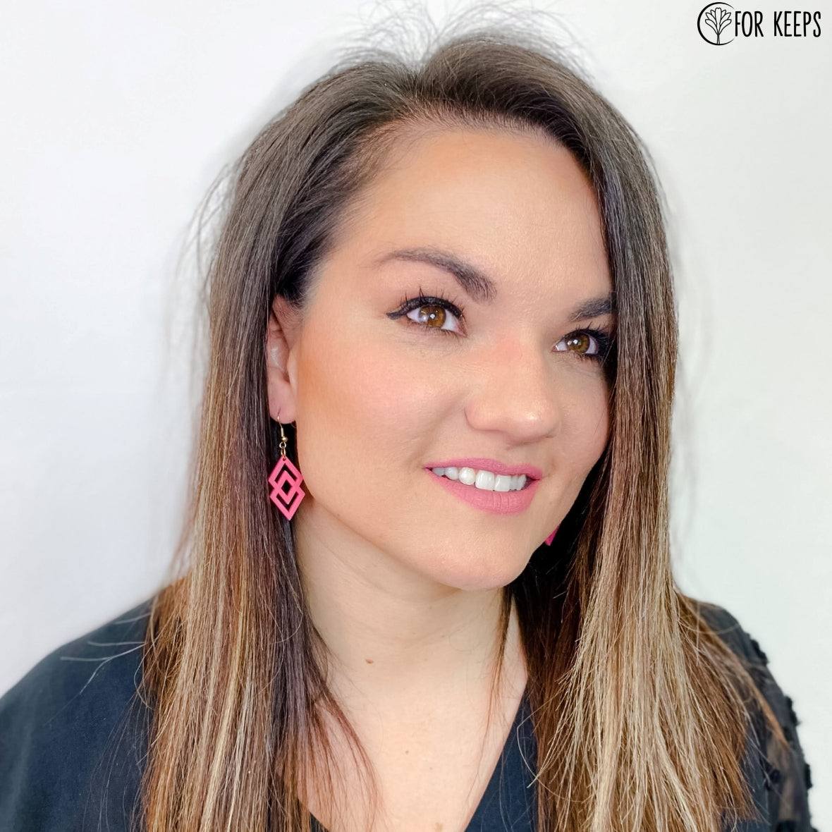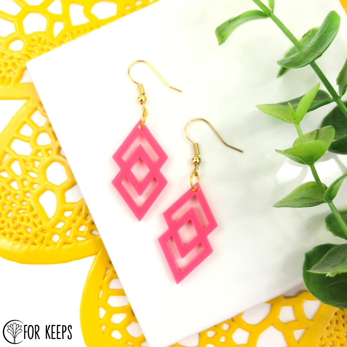 Lightweight, diamond-shaped earrings. Customize in choice acrylic.