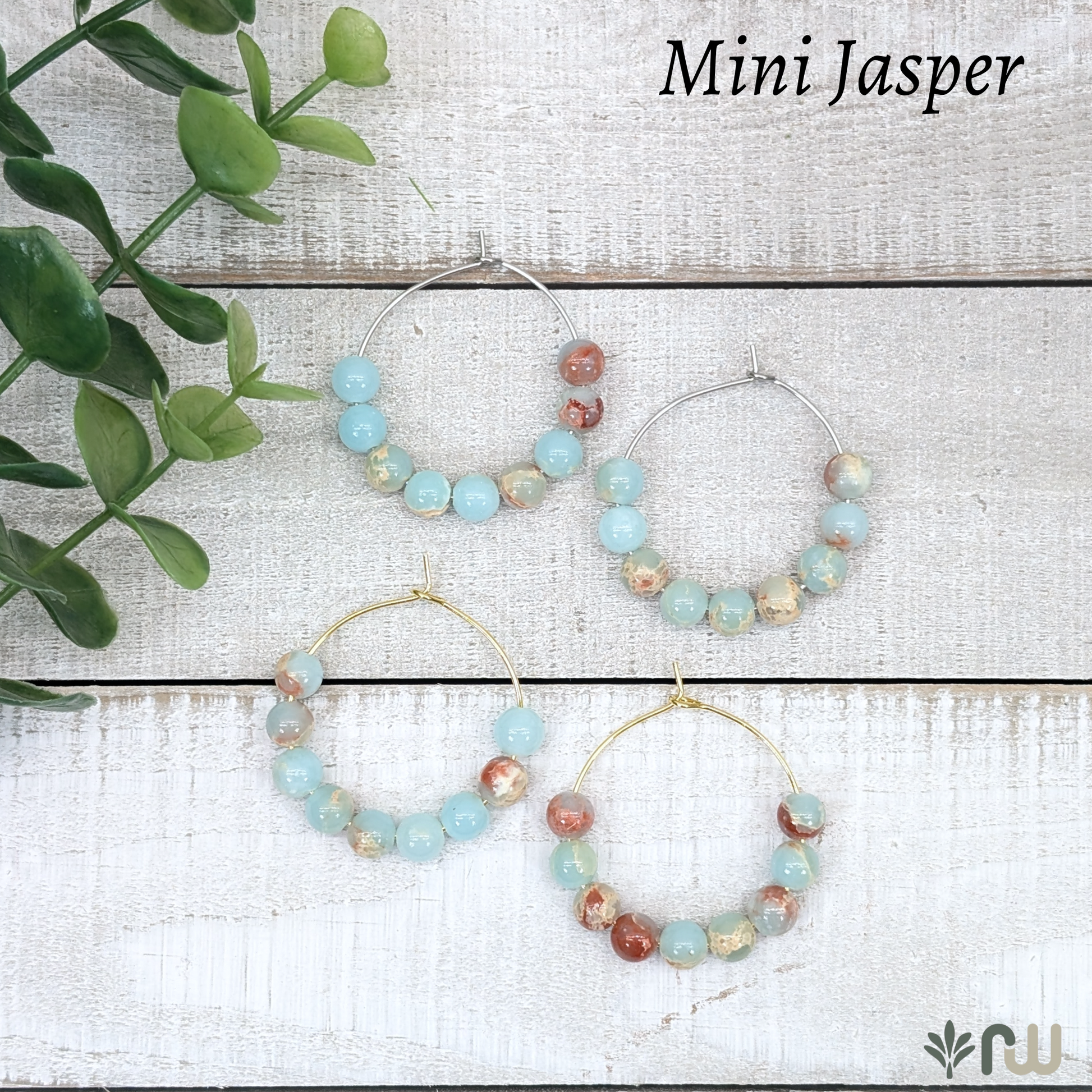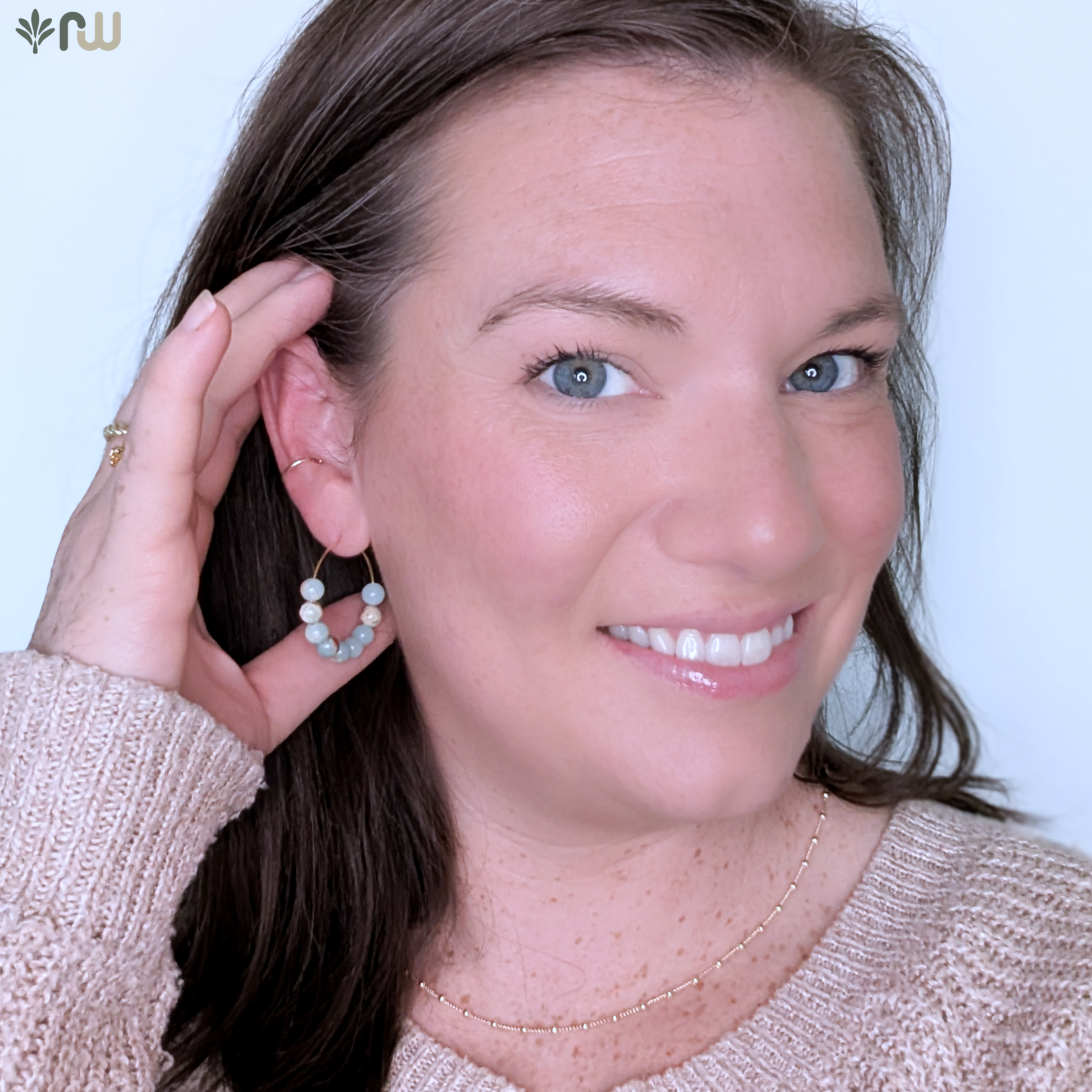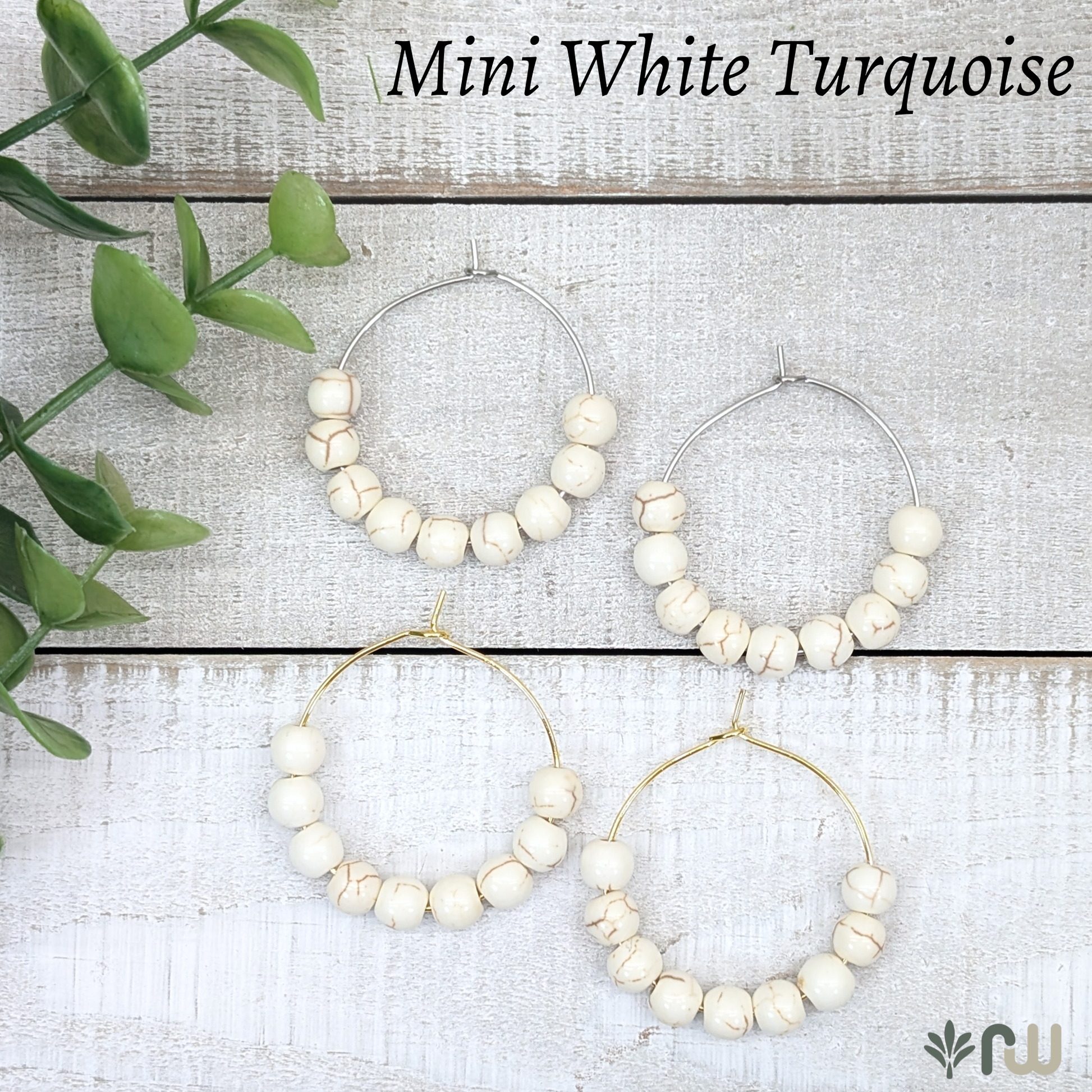 Beaded hoop earrings. Available in these colors for a limited time or while supplies last.