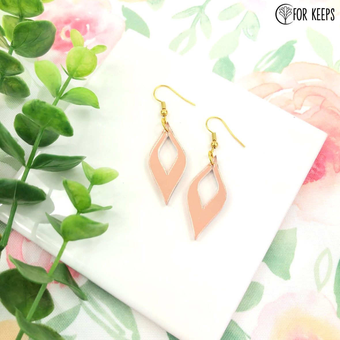 Lightweight, spindle-shaped earrings. Customize in choice acrylic.