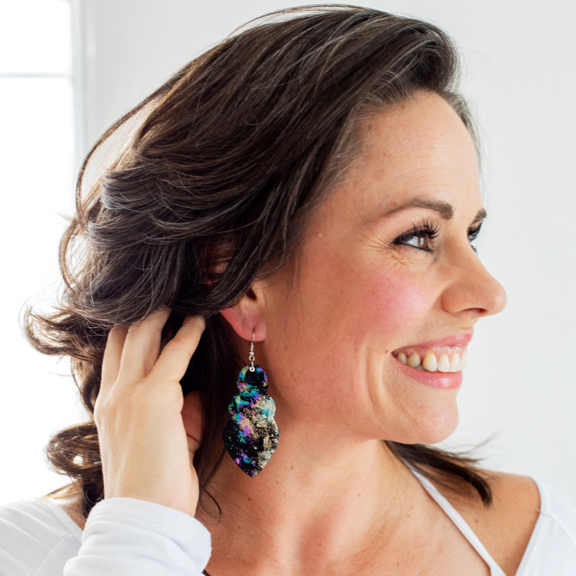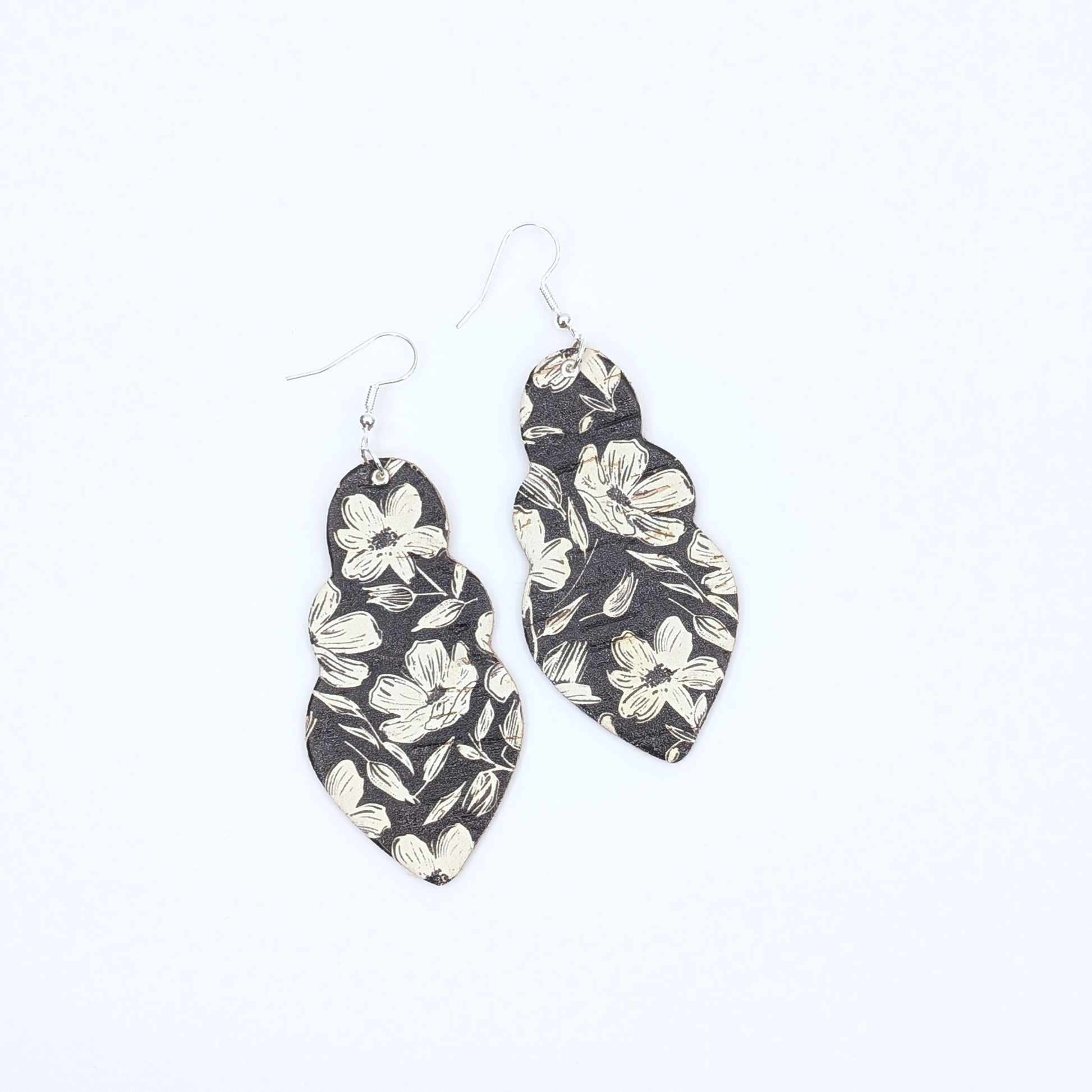 Lightweight, unique-shaped earrings. Customize in your choice of leather.