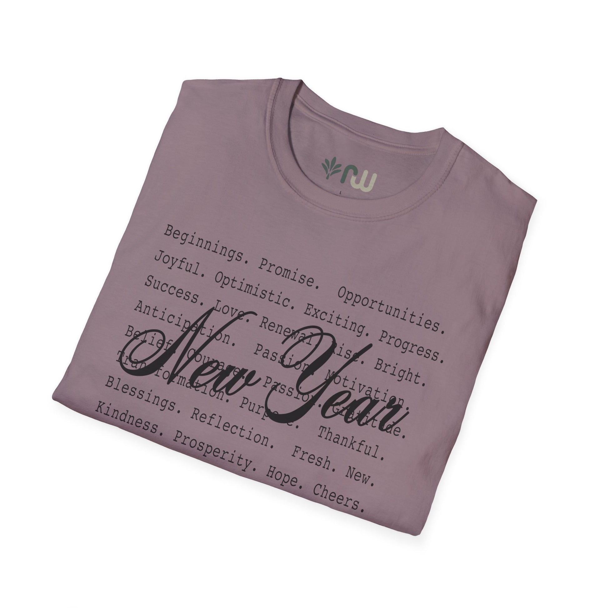 Ring in the new year with hope and heart in our “New Year” word-cloud t-shirt – a beautiful blend of inspiration, style, and effortless comfort. Crafted from ultra-soft 100% ring-spun cotton, this relaxed-fit unisex tee feels light, breathable, and perfect for layering or wearing on its own. The front features an uplifting cascade of positive words – Beginnings, Promise, Joyful, Renewal, Love, Growth, Prosperity, Hope, Cheers – all flowing into a bold, elegant “New Year” script that ties the entire design together. Ideal for dream-chasers, fresh-start seekers, and anyone welcoming 2026 with gratitude and excitement. Wear your intentions close to your heart and let every glance at this tee remind you: the best is yet to come.