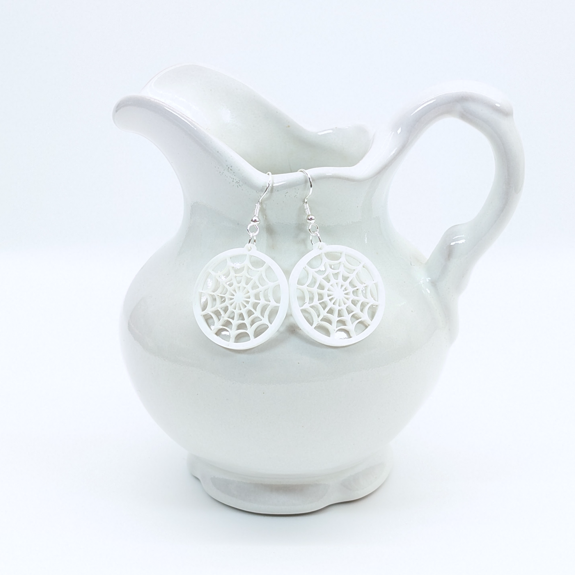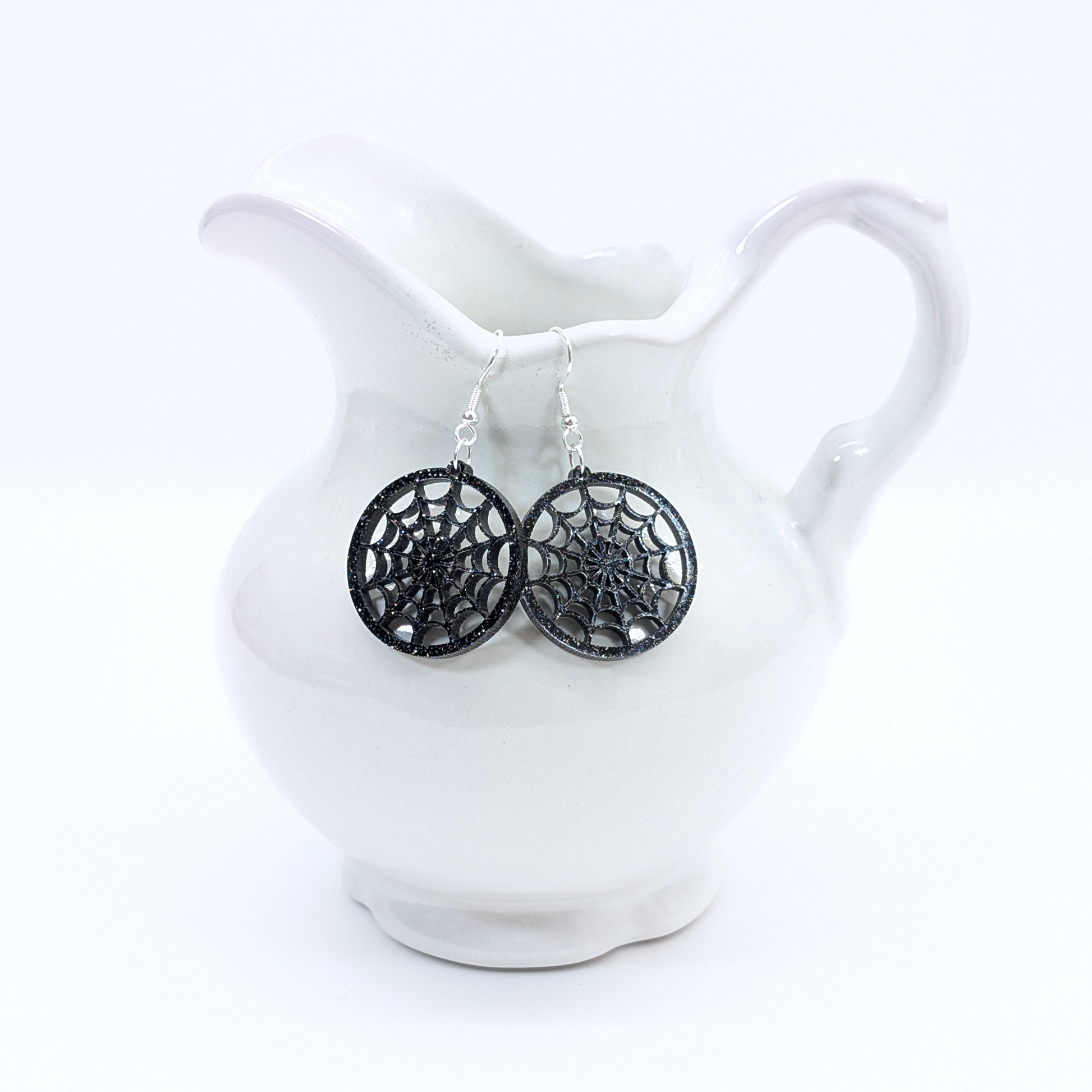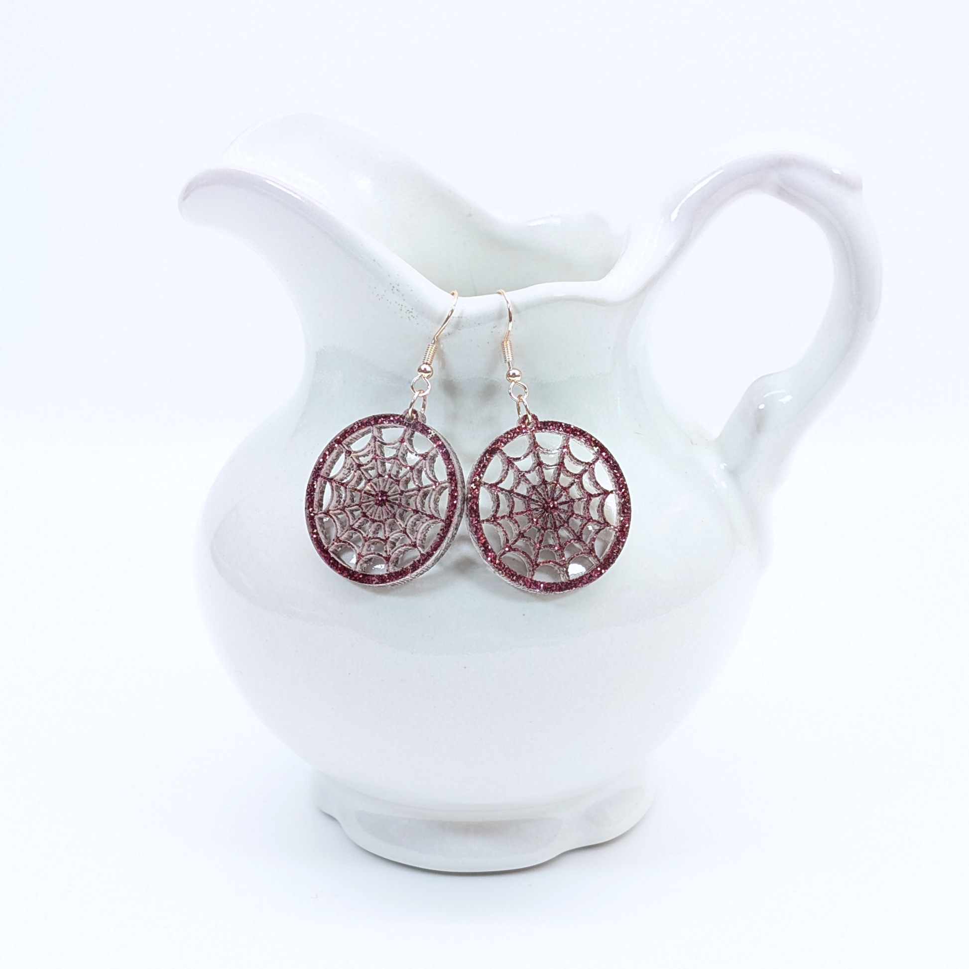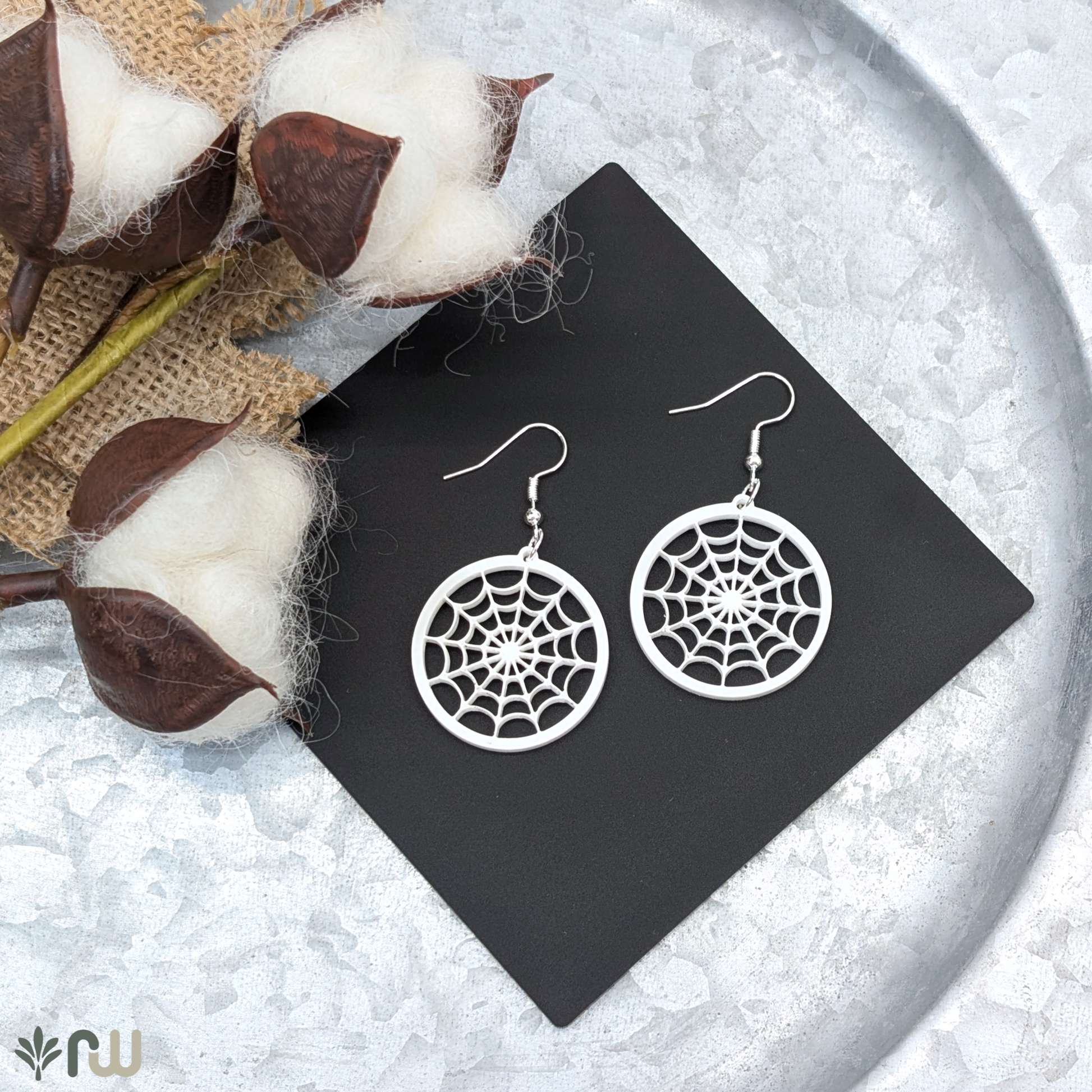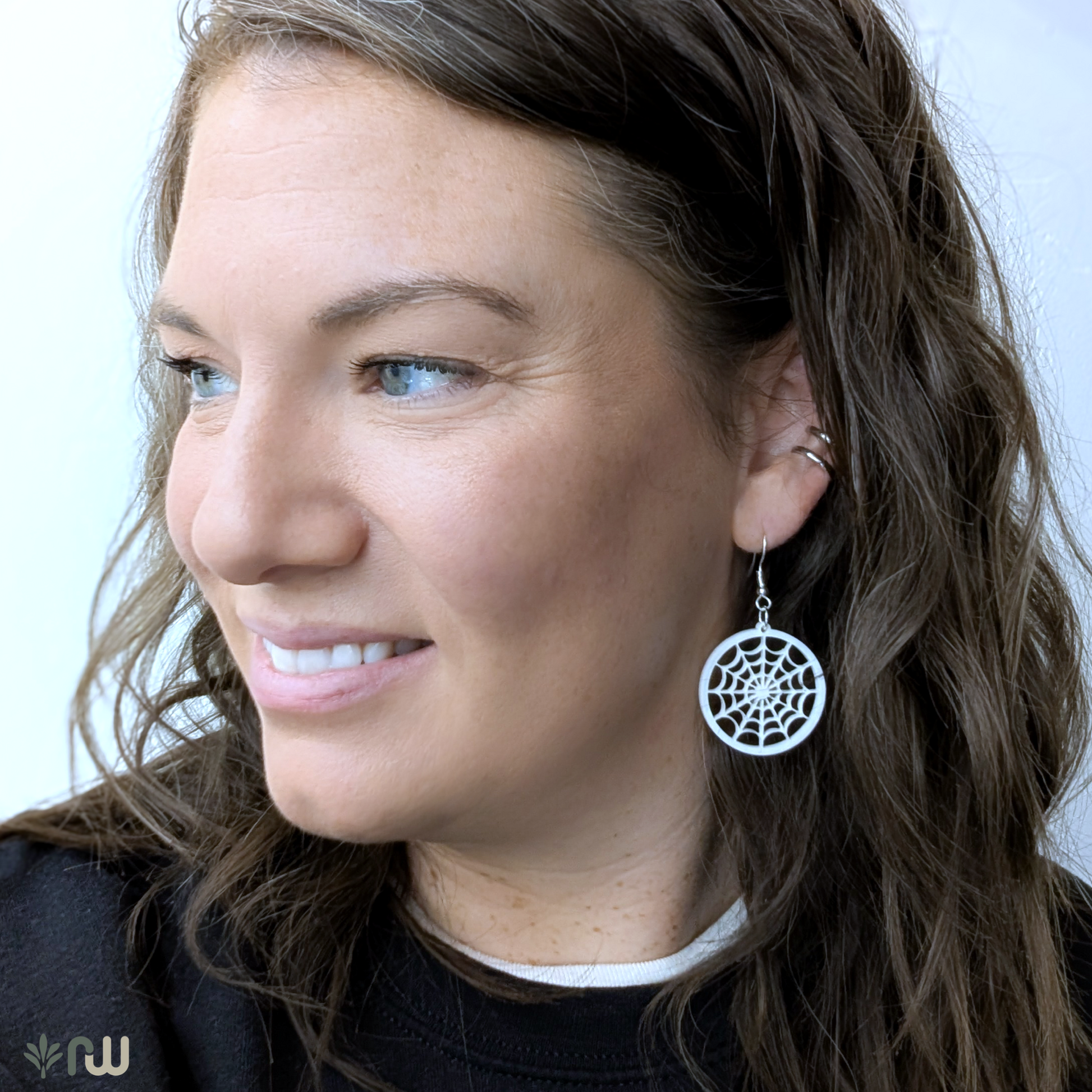Spider Web Earrings. Customizable in your choice of our Acrylic and Hardwood Options.