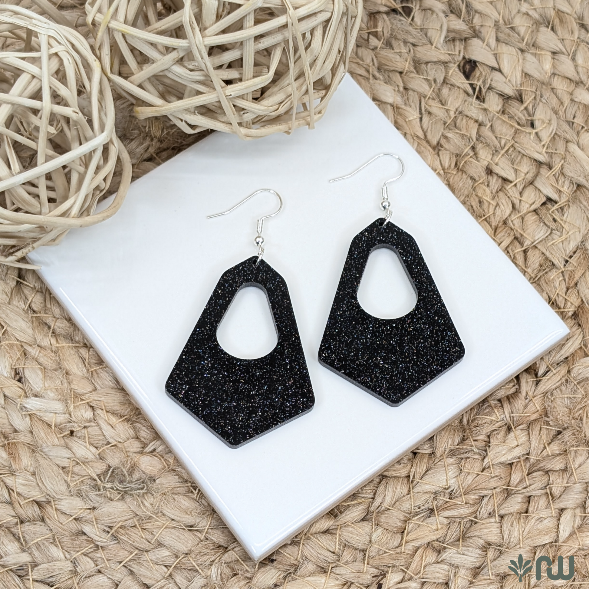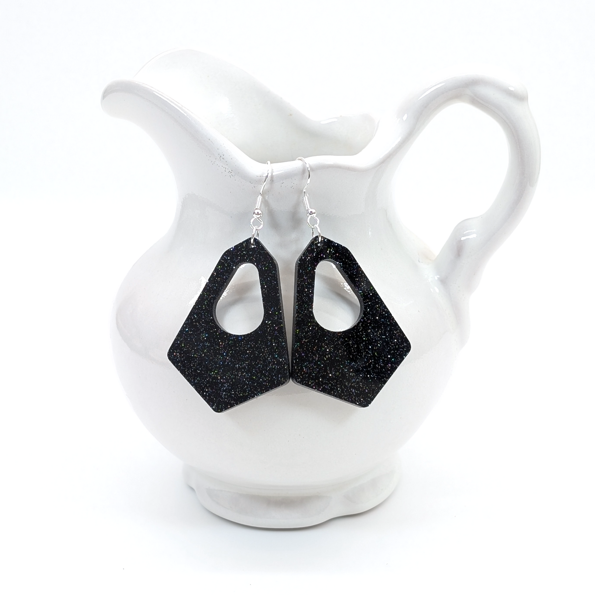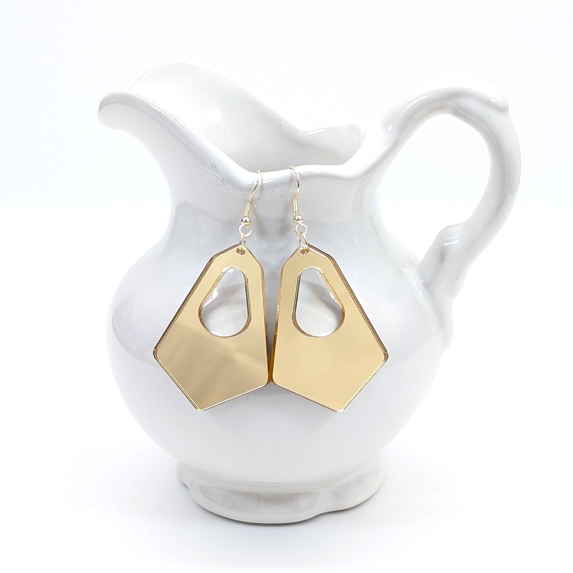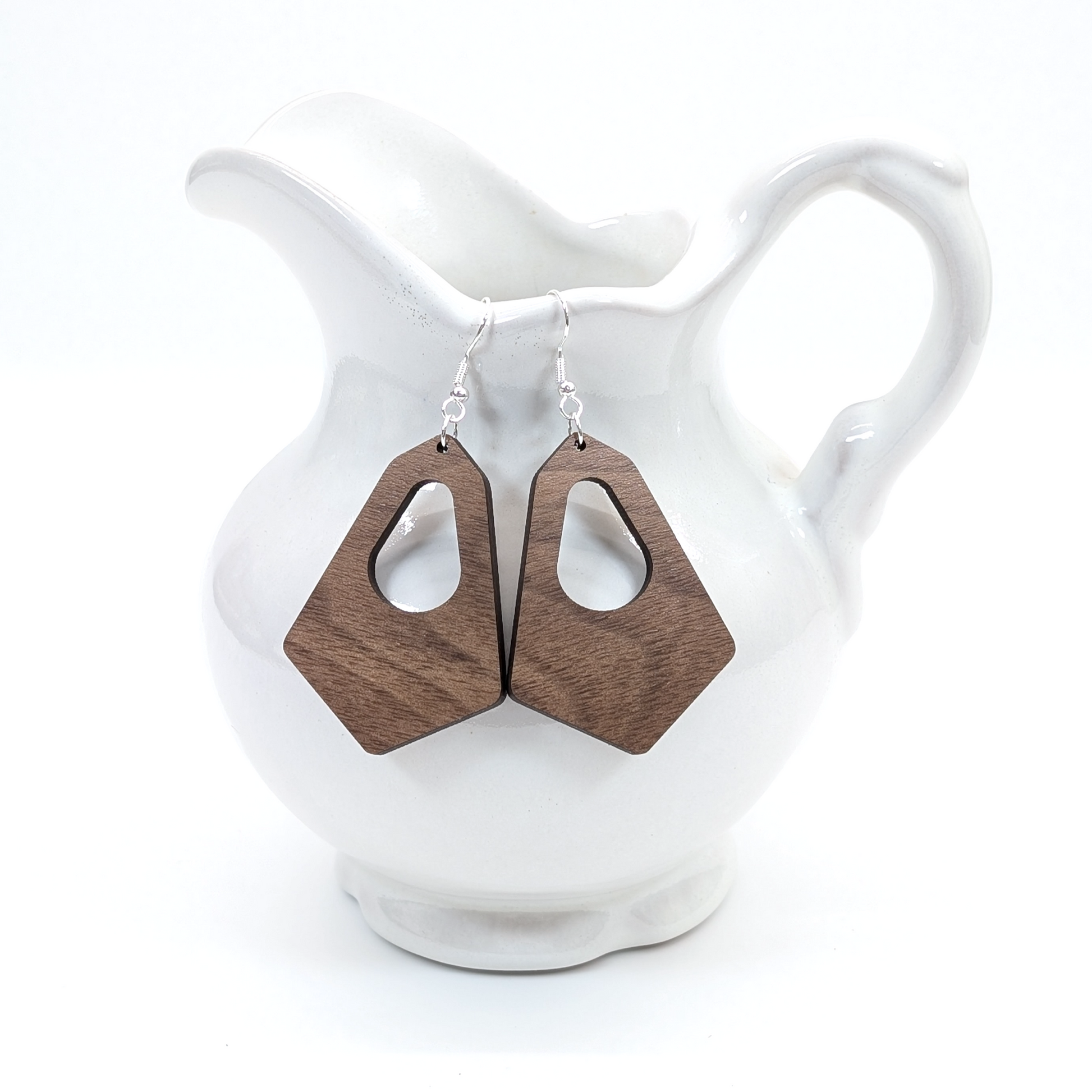 Hexagonal hoop earrings. Customize in your choice of acrylic or hardwood.