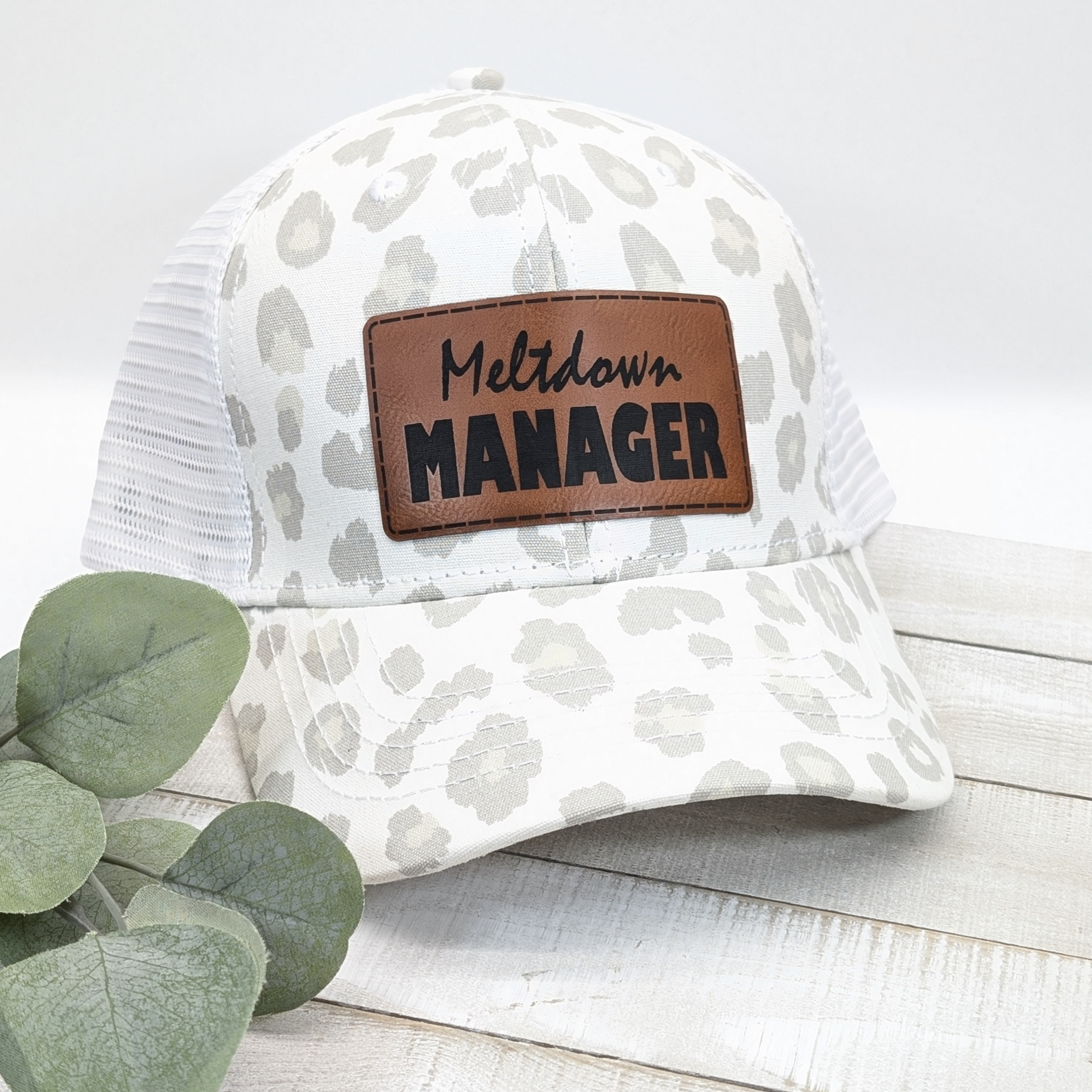 "Meltdown Manager" Women's Modern Trucker Ponytail Hat. Customize your color.