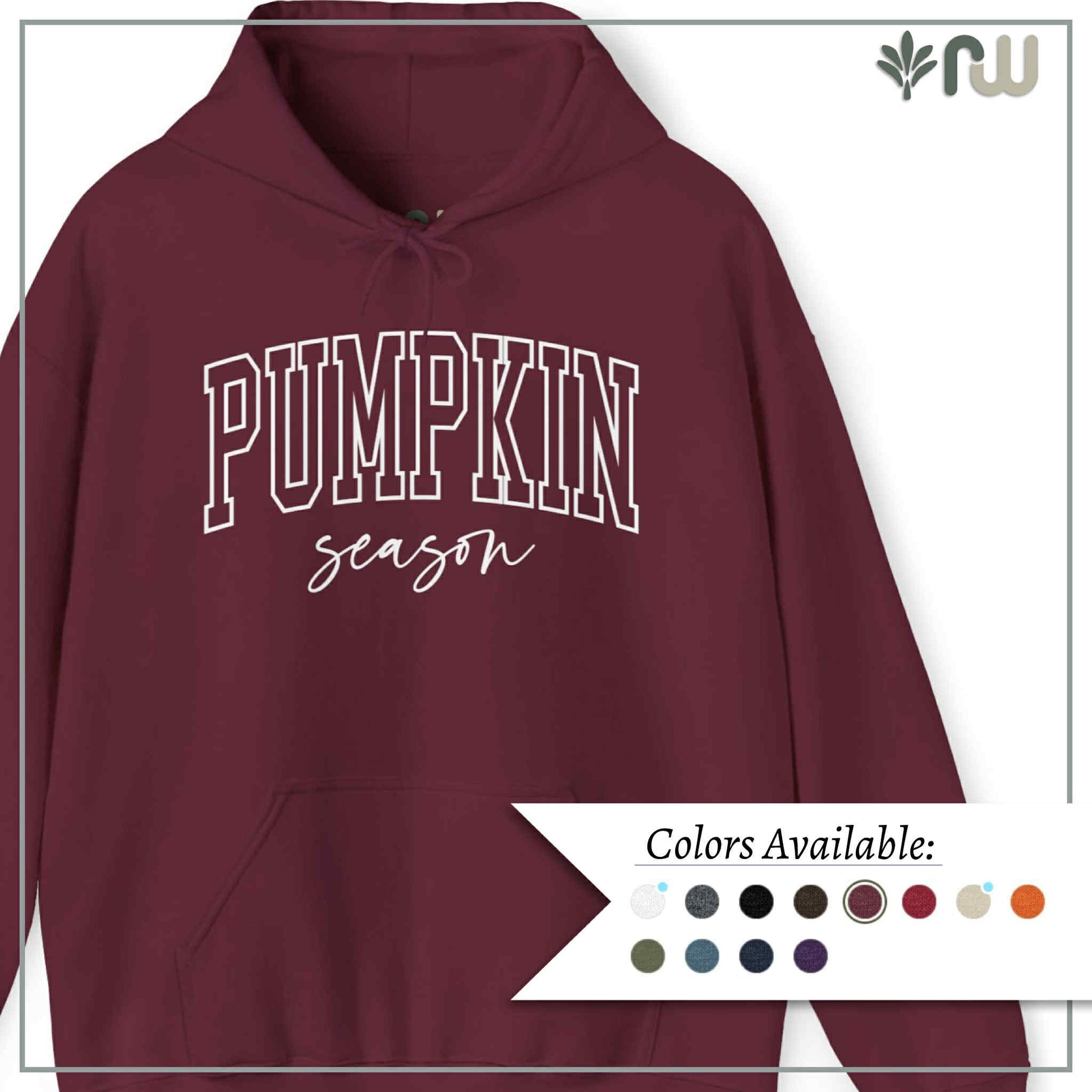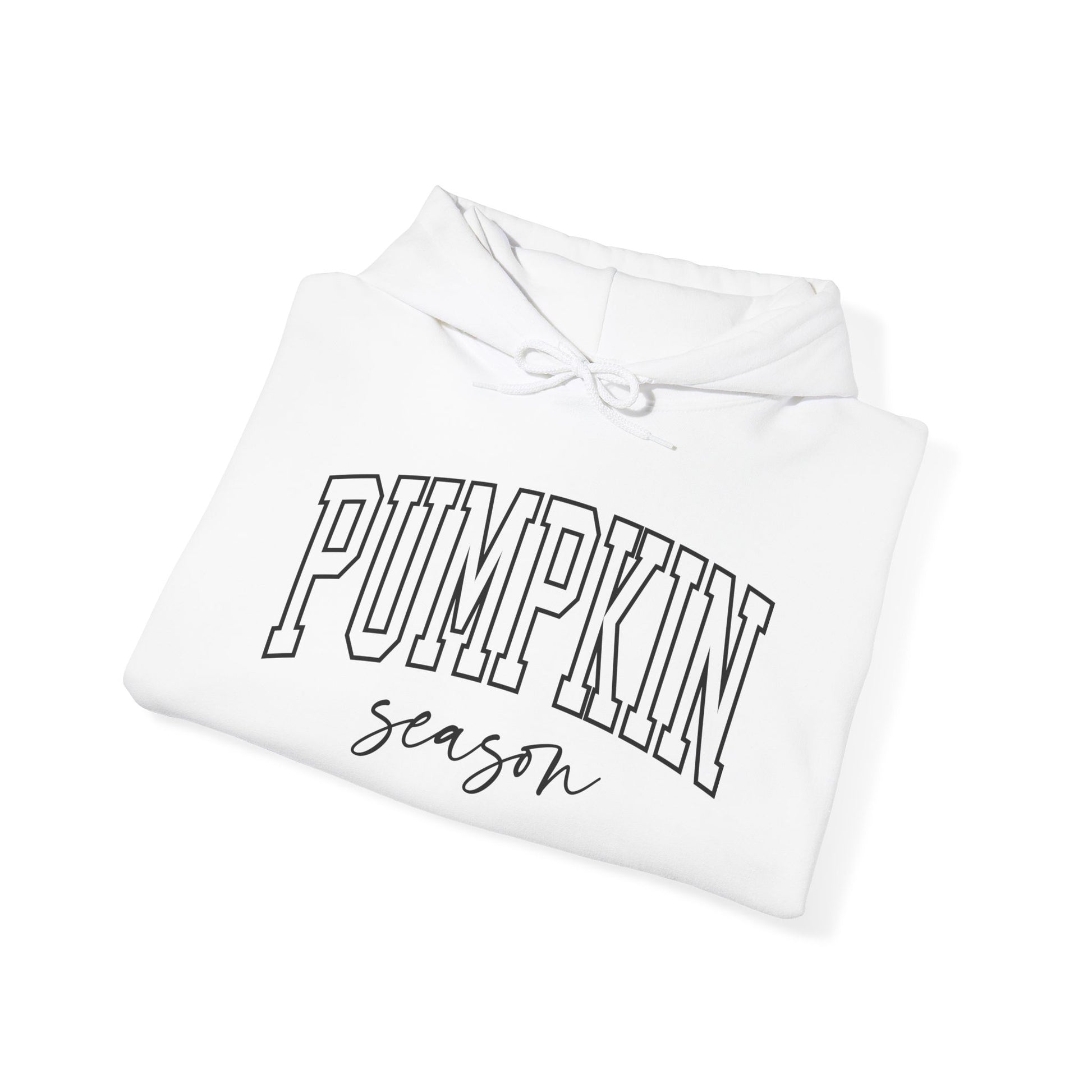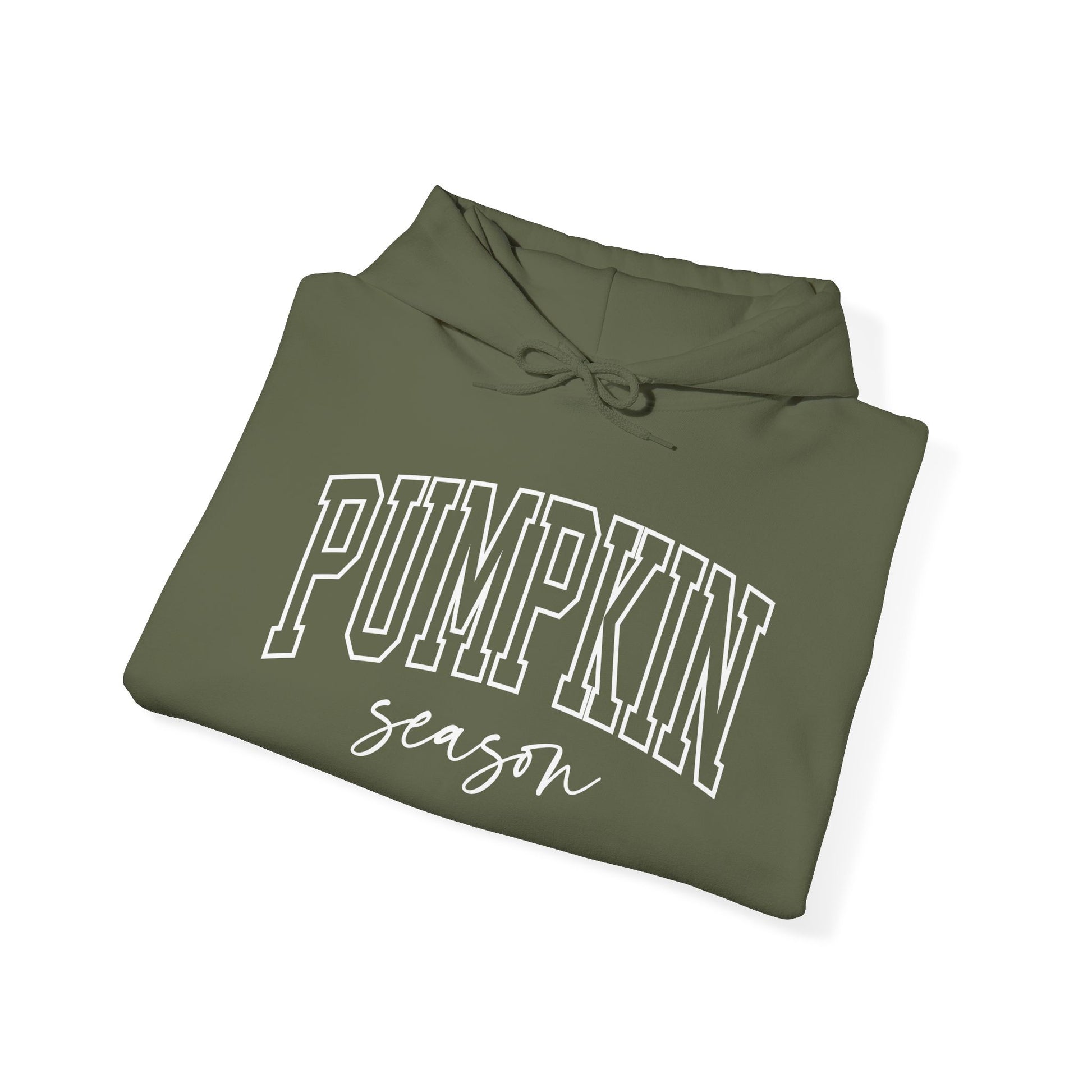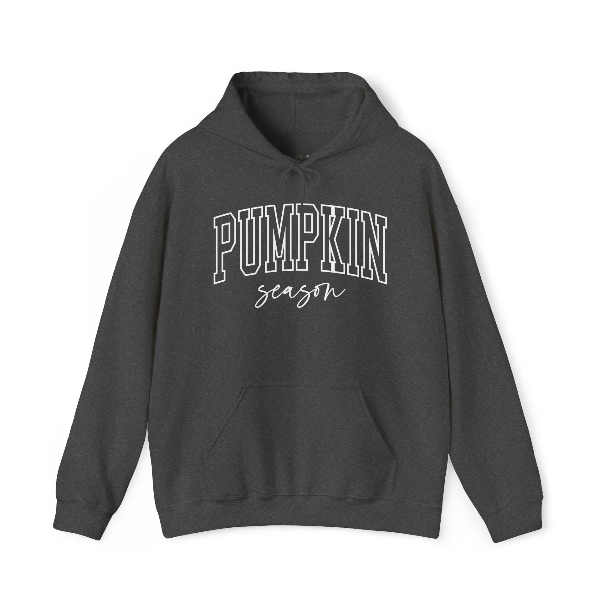 Stay warm and festive this fall with our "Pumpkin Season" hooded sweatshirt, inspired by the cozy charm of autumn. This stylish hoodie prominently features the bold phrase "Pumpkin Season" in a playful, eye-catching text design. Crafted from soft, comfortable fabric with a snug hood and drawstrings, this hoodie is perfect for chilly autumn days, whether you're sipping pumpkin spice lattes or enjoying a crisp evening stroll. Wear it, love it, celebrate pumpkin season!
