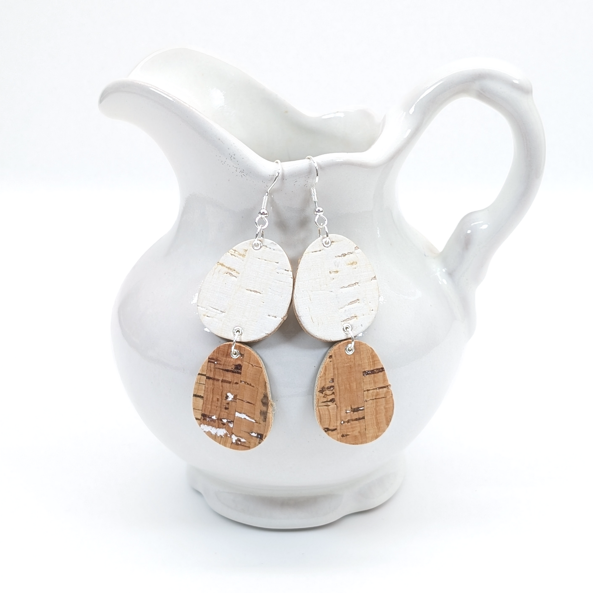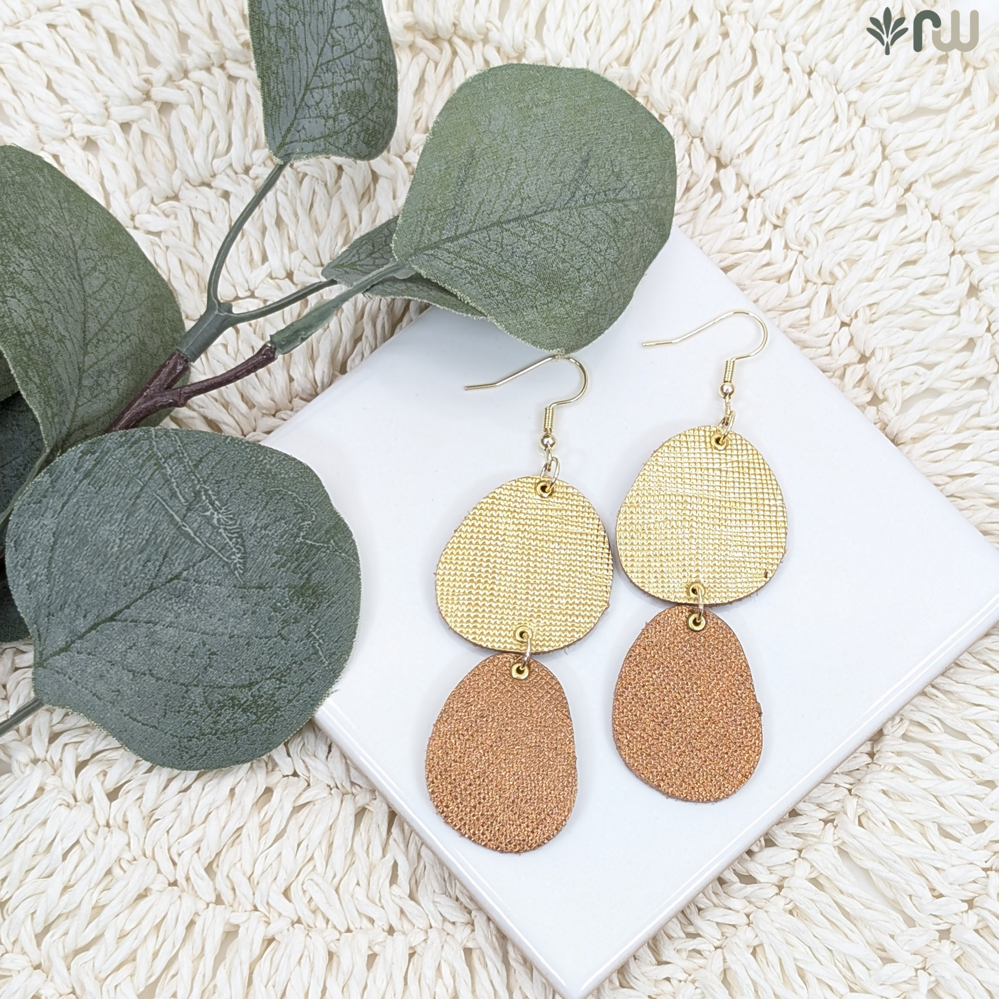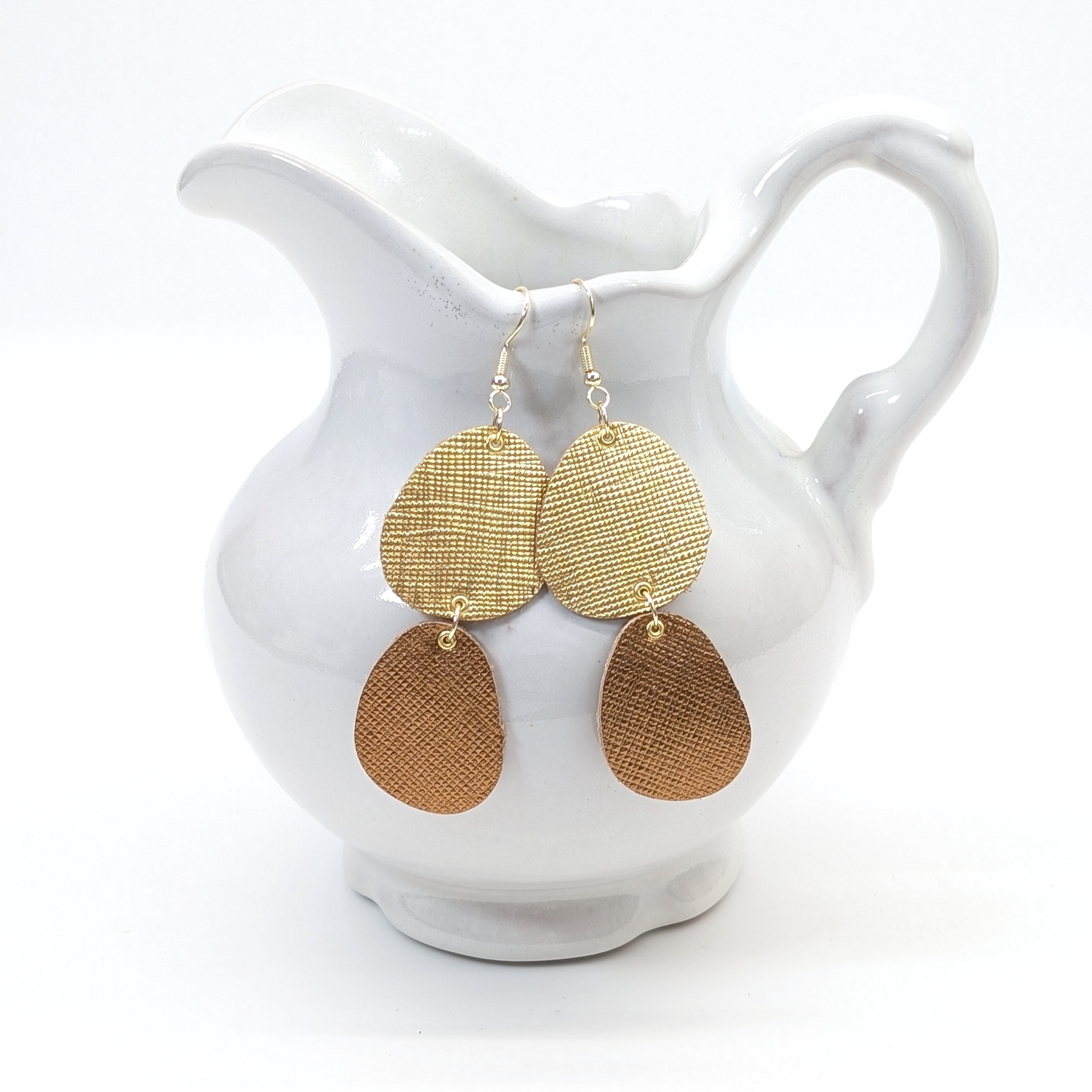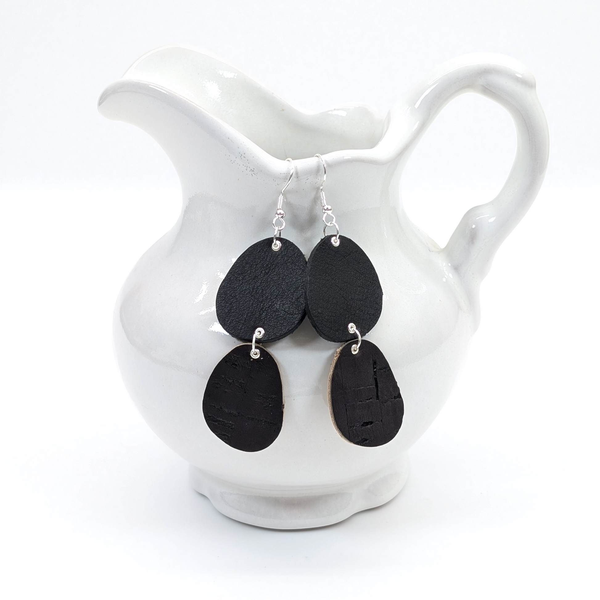 Two-Piece, Abstract, Leather Oval Earrings. Customize in Your Choice of Leathers and Hardware.