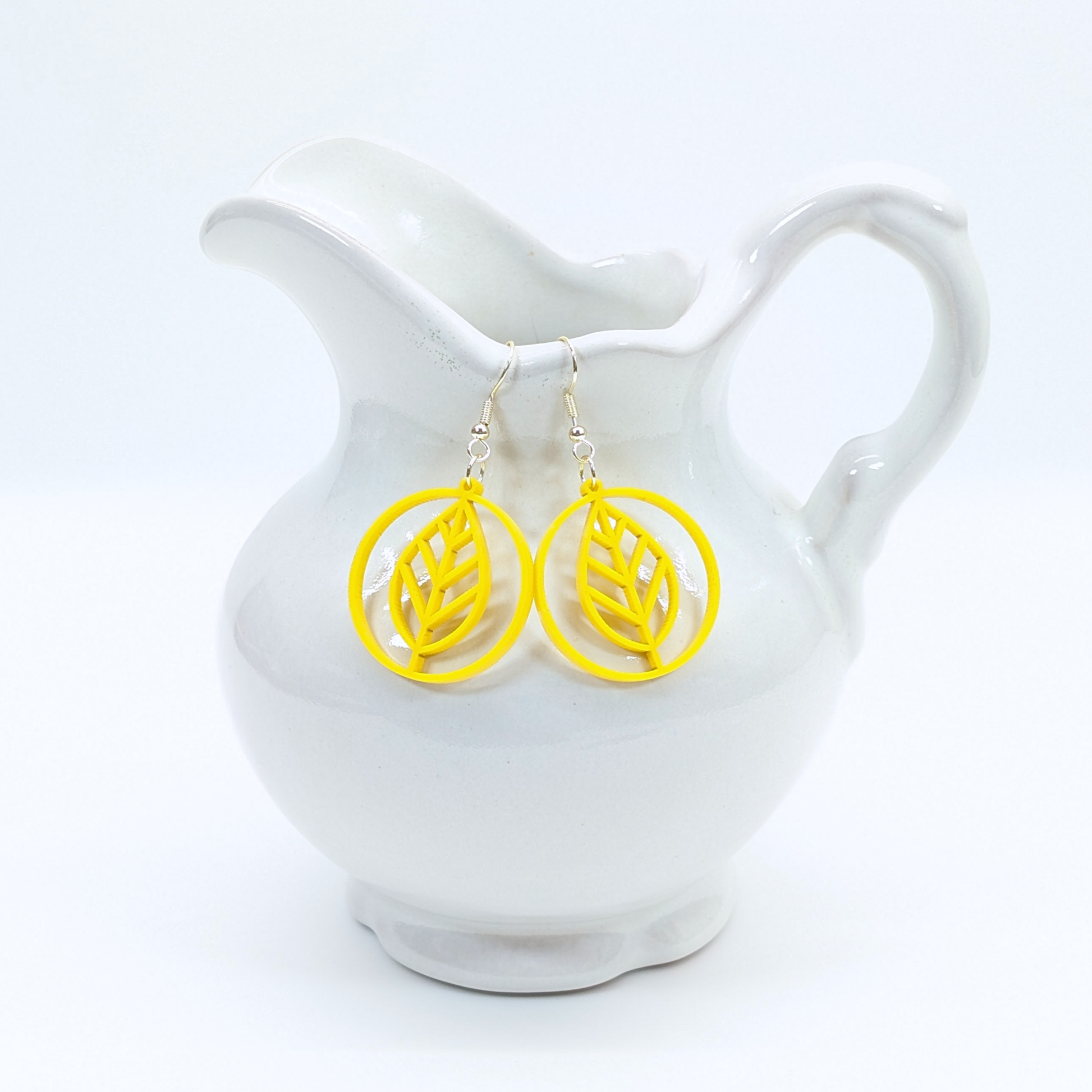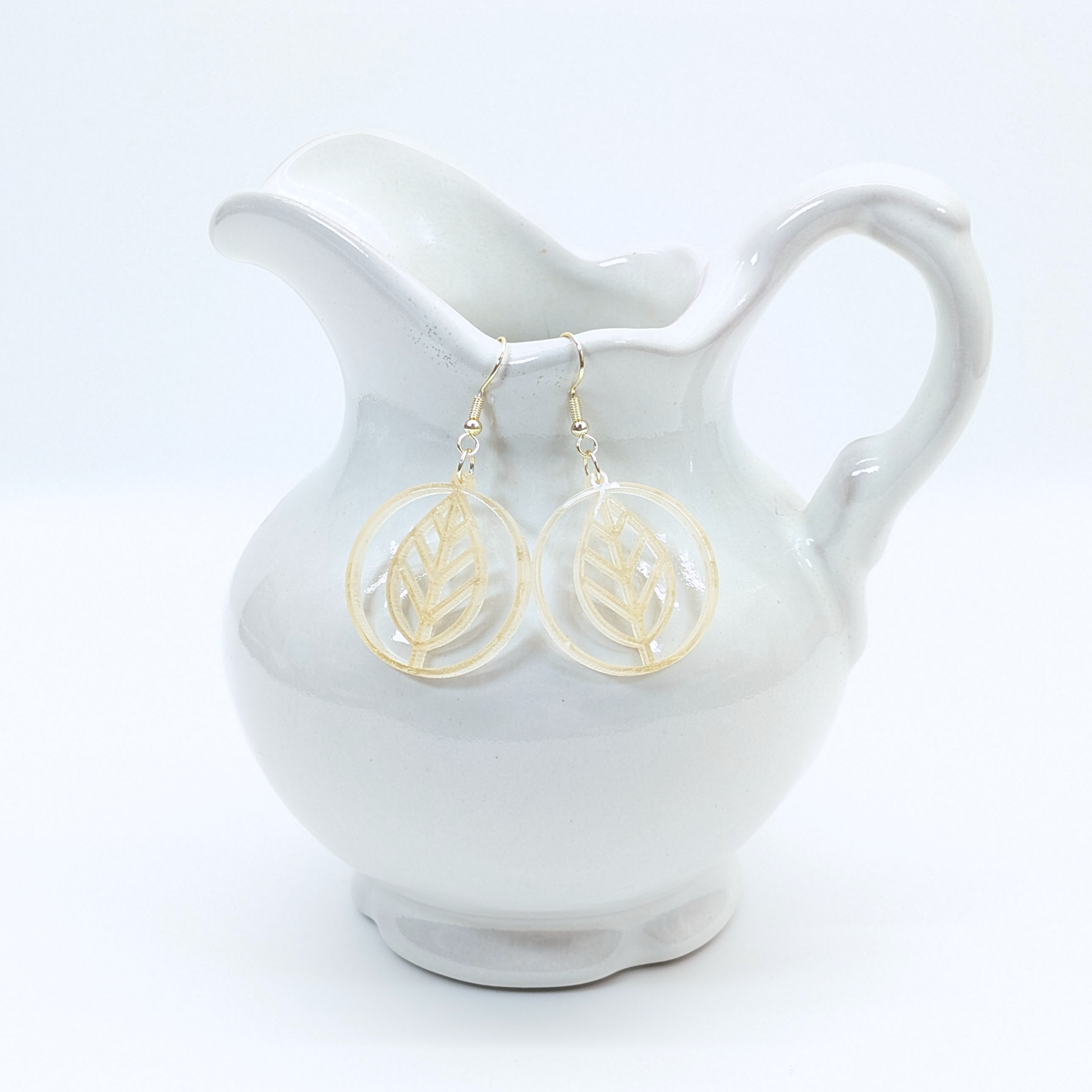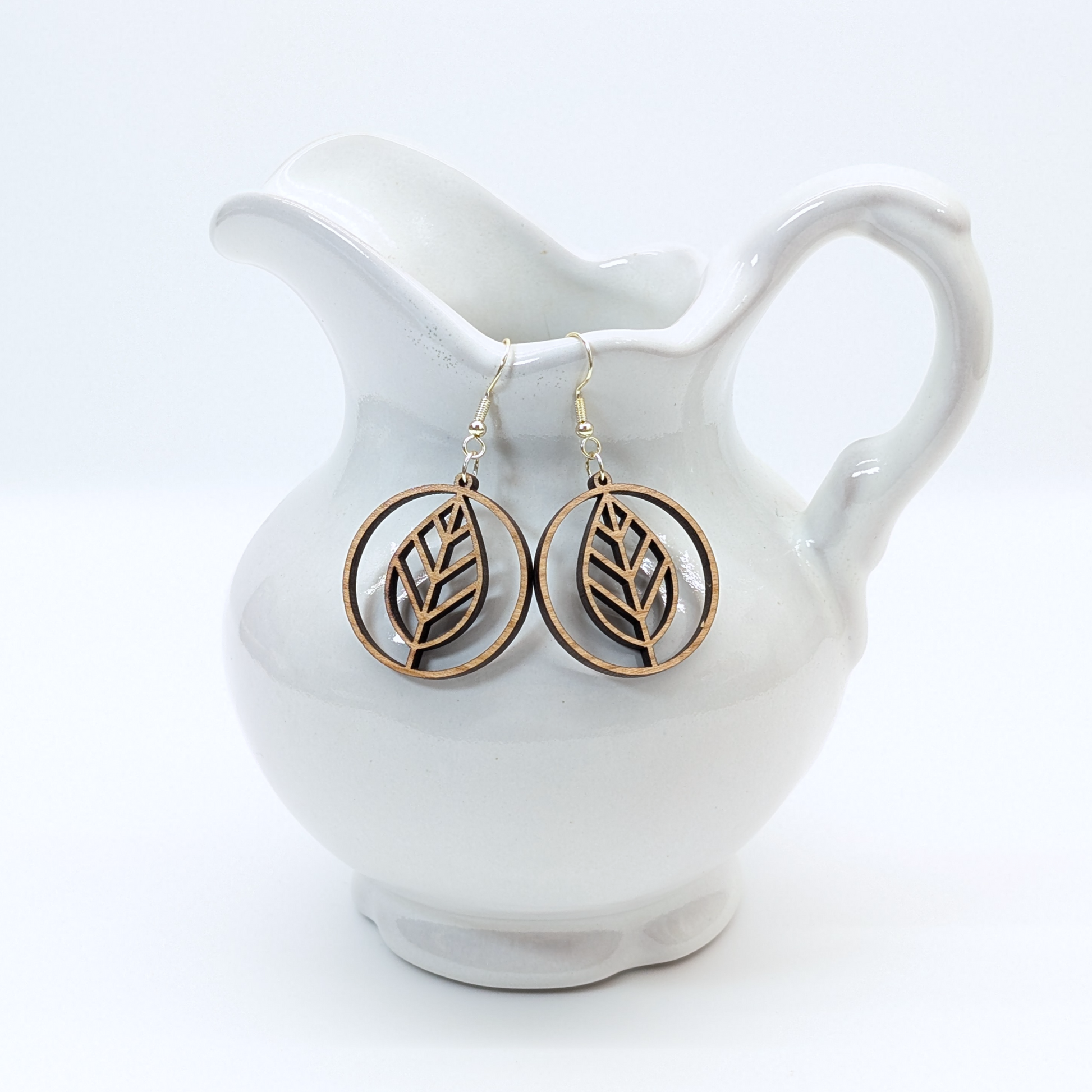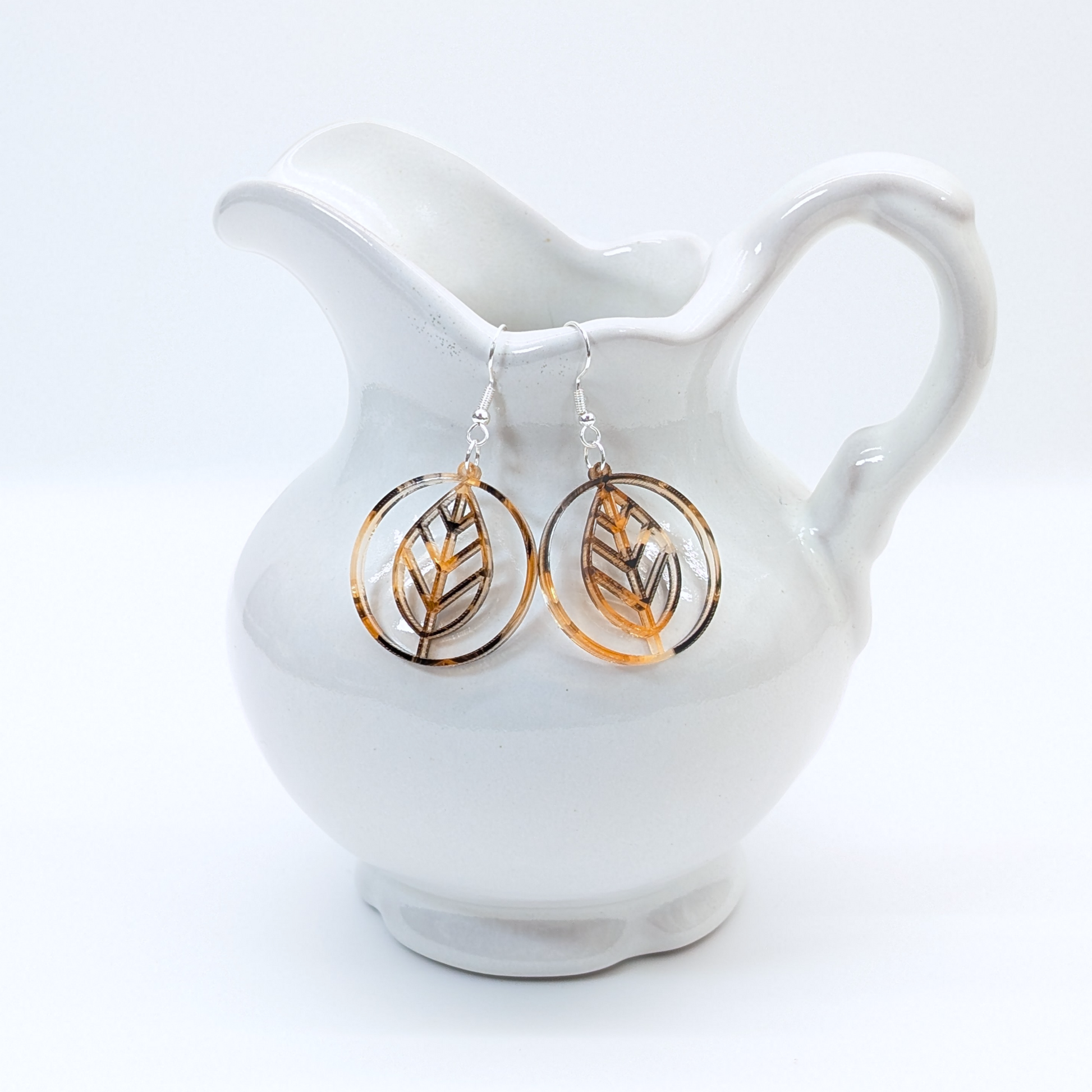 Leaf Hoop Earrings. Customizable in your choice of our Acrylic and Hardwood Options.