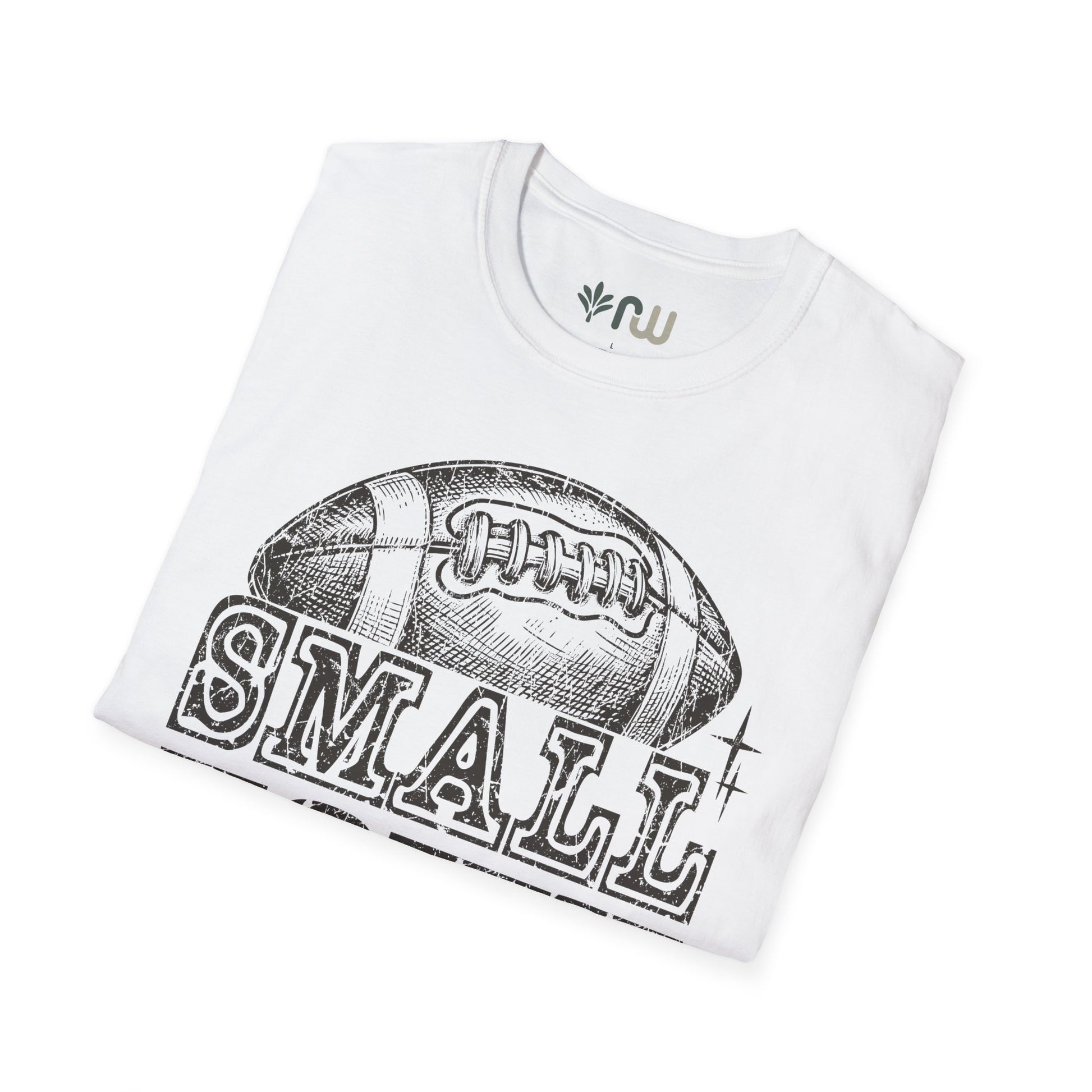 Celebrate community spirit with our "Small Town, Big Pride" T-shirt, perfect for showcasing hometown love. Crafted from soft, breathable cotton, this unisex tee ensures all-day comfort and a relaxed fit. The bold graphic features a football with the phrase "Small Town, Big Pride" in dynamic typography, capturing the heart of local pride and team spirit. Ideal for game days, community events, or gifting to fellow small-town enthusiasts, this T-shirt embodies the passion and unity of close-knit communities.
