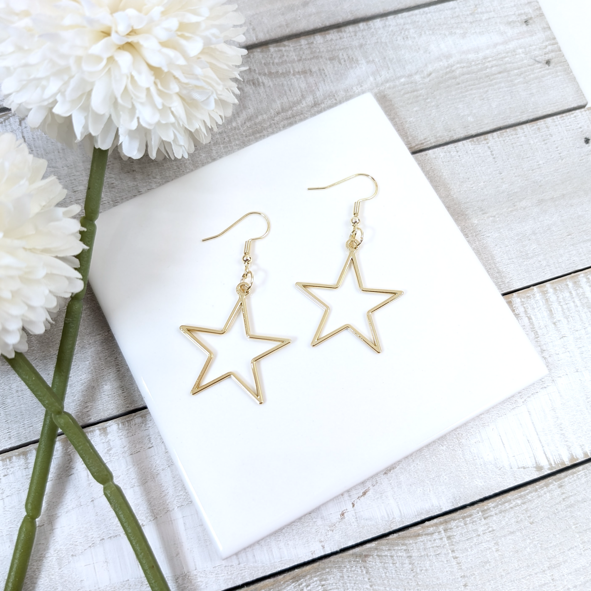 Gold Metal Stars Hoop Earrings