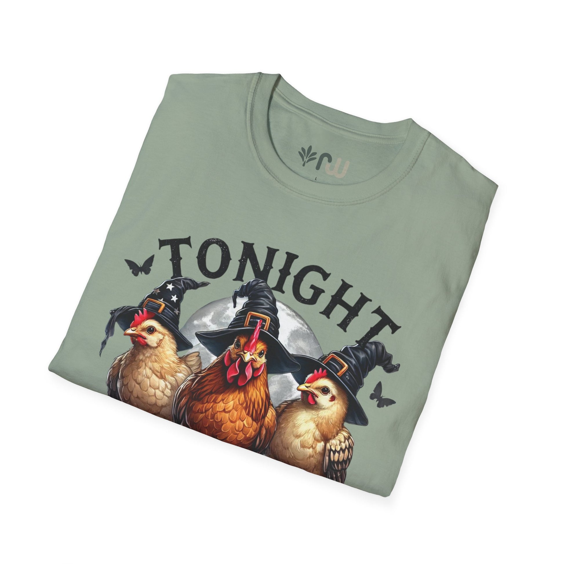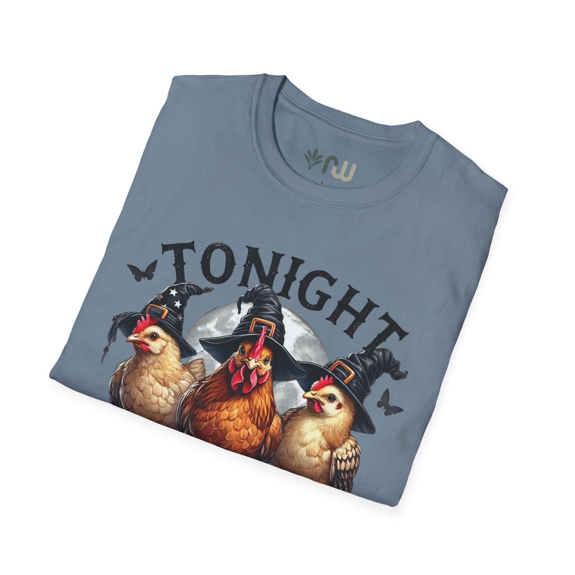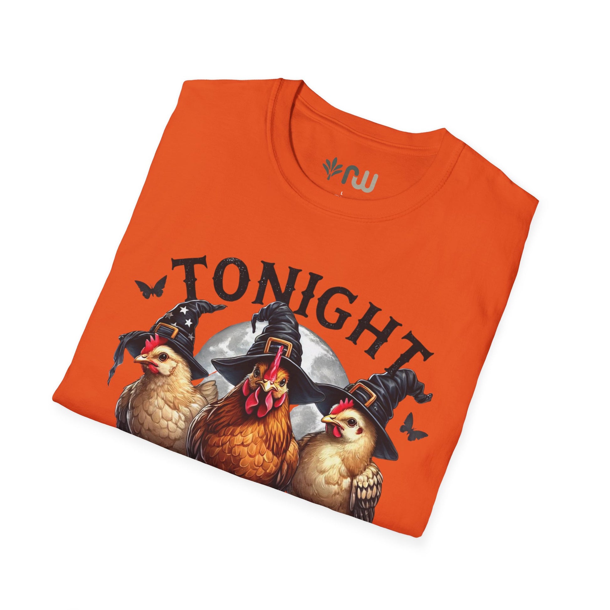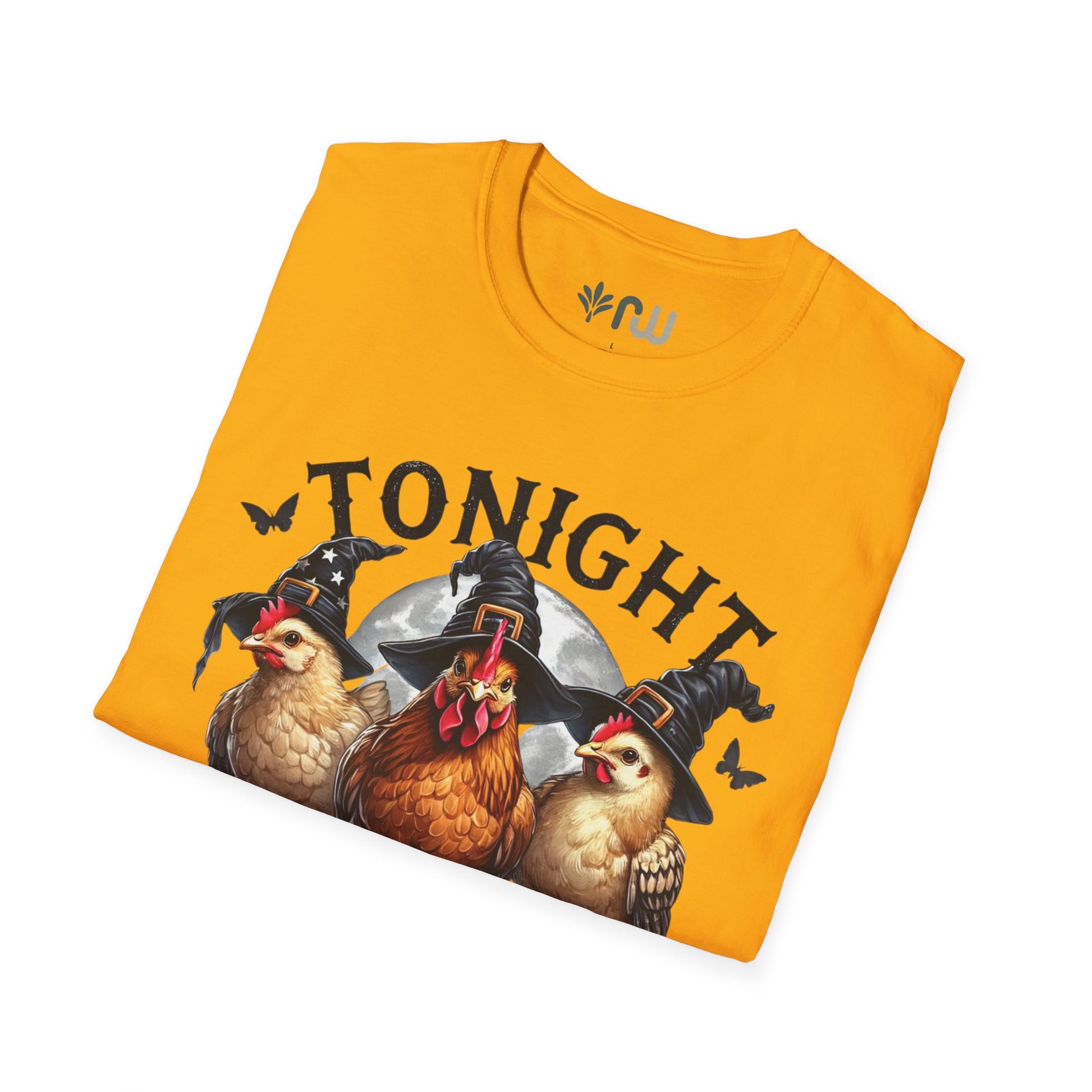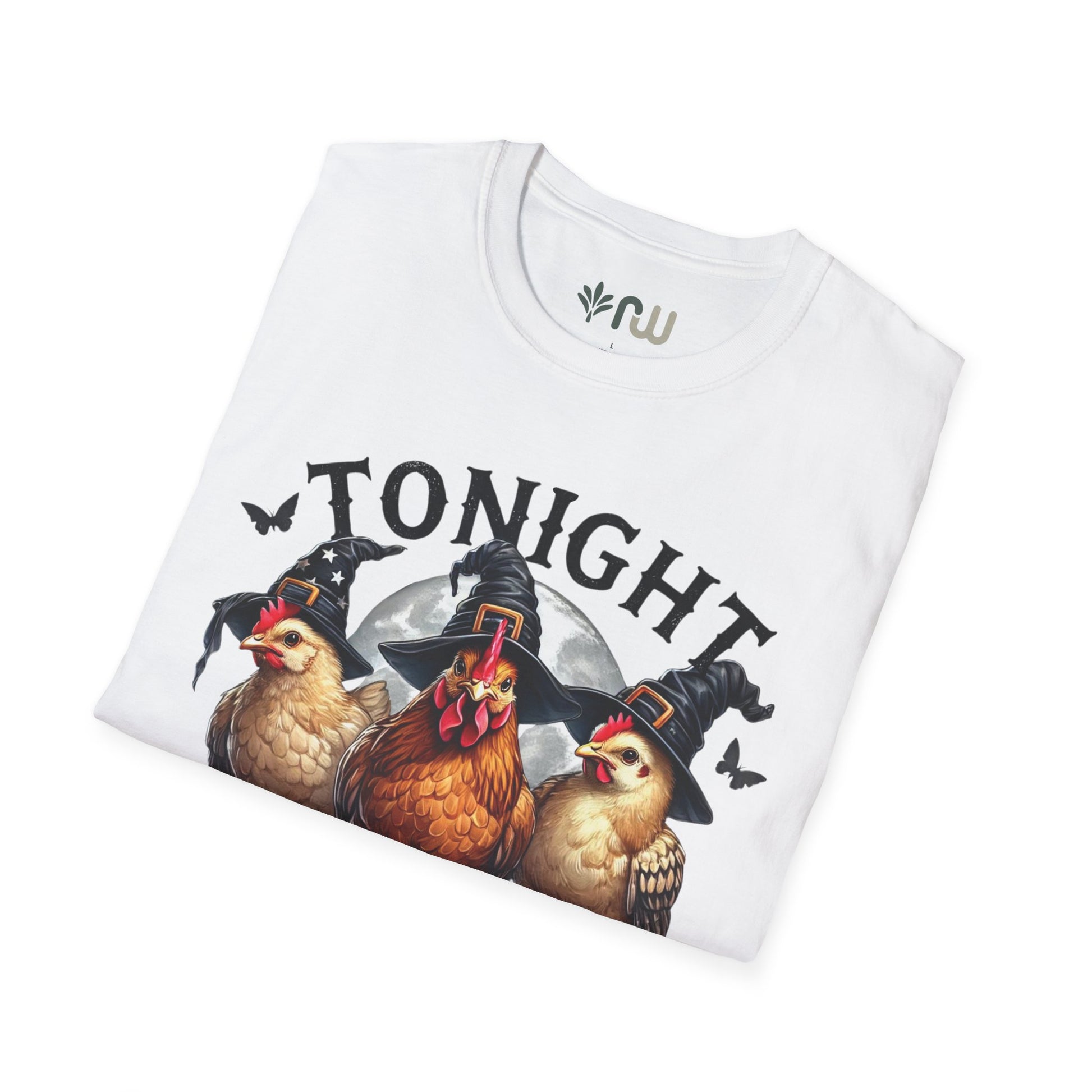 Get ready for a whimsical fall adventure with our "Tonight, We Fly" T-shirt, inspired by the playful magic of Halloween. This stylish tee features the bold phrase "Tonight, We Fly" in a spooky, eye-catching text design, accompanied by a charming illustration of chickens donning witch hats, perched on a broom. Crafted from soft, comfortable fabric, this T-shirt is perfect for crisp autumn days, whether you're embracing the Halloween spirit or enjoying a festive night out. Wear it, love it, and soar into the season!