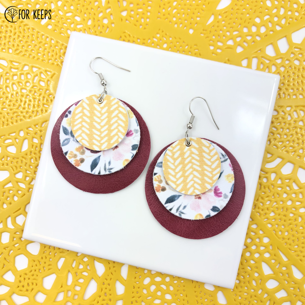 Triple layered, lightweight round earrings. Customize in your choice of leather.