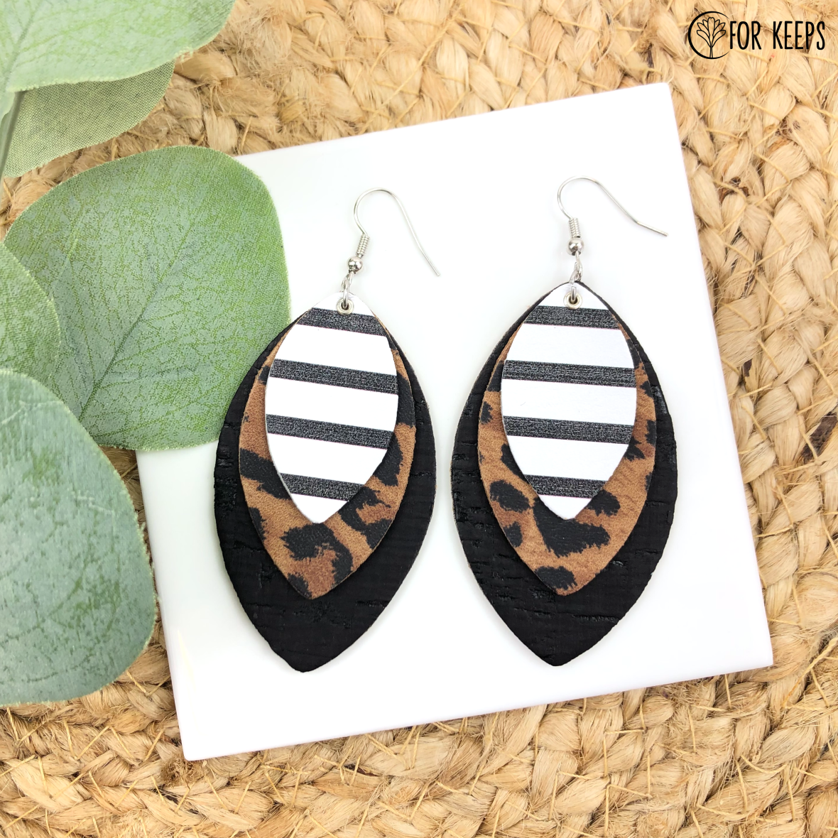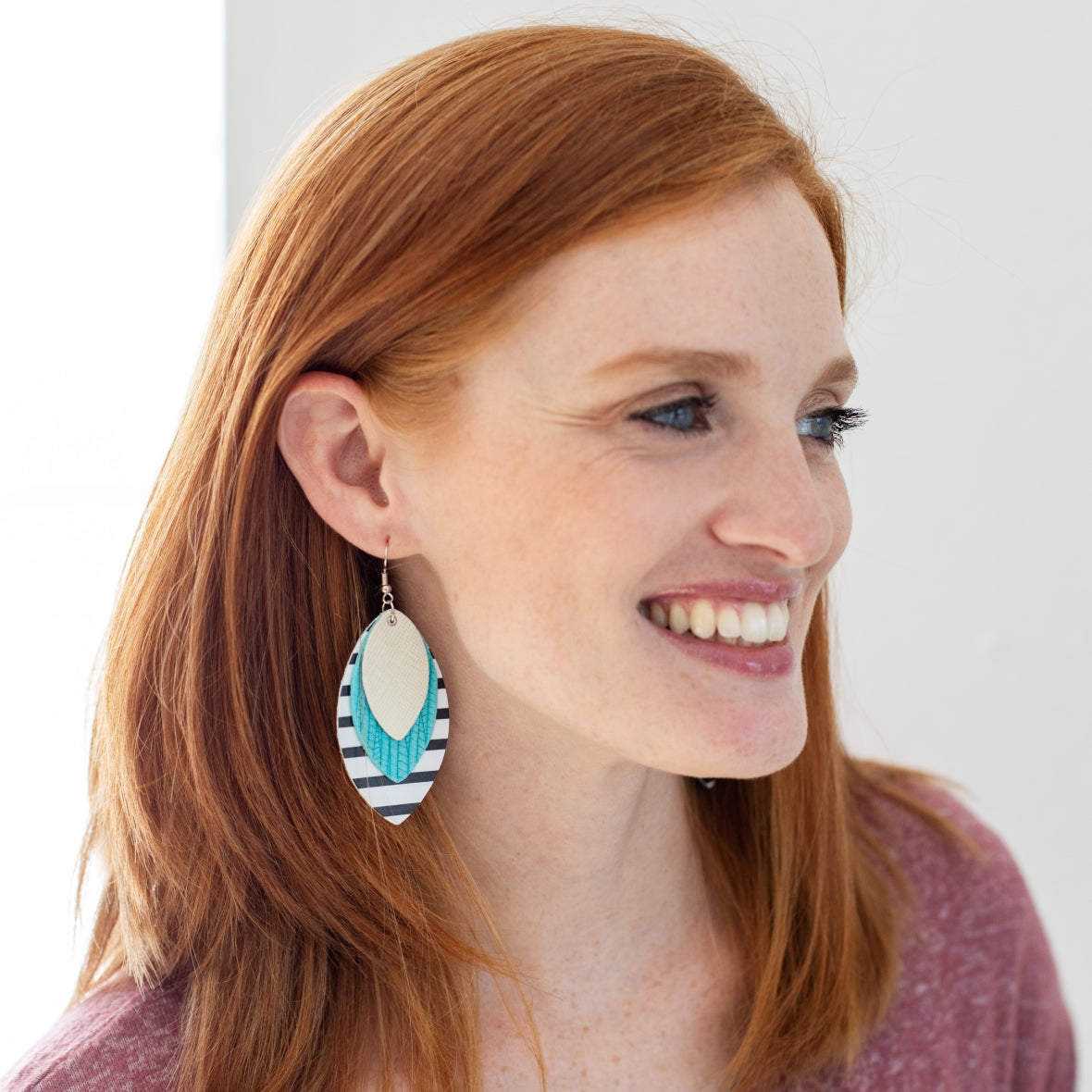 Triple layered, lightweight, leaf-shaped earrings. Customize in your choice of leather.