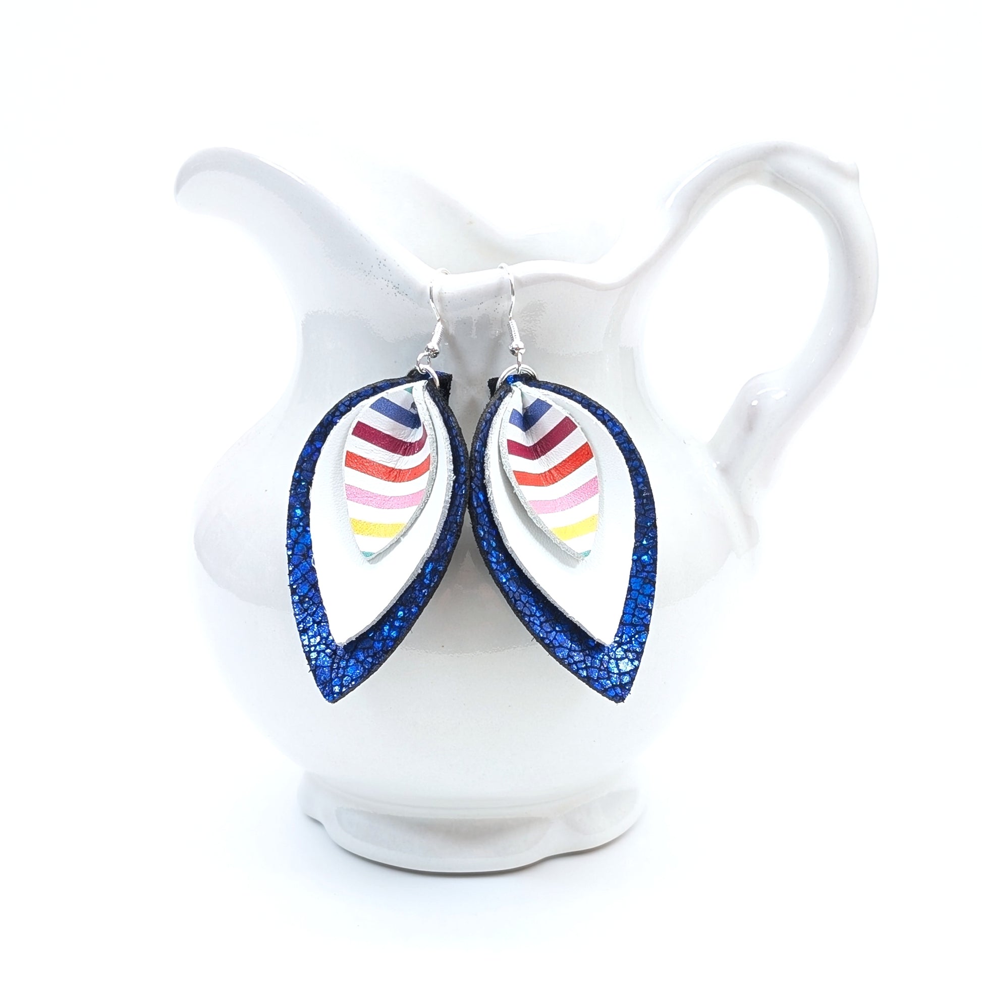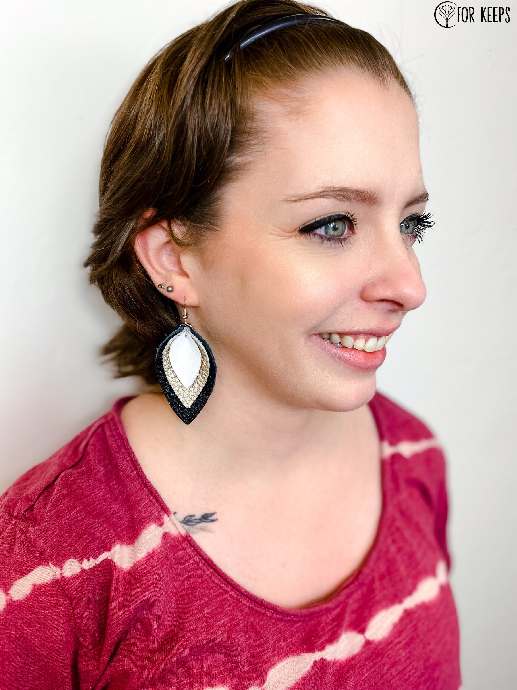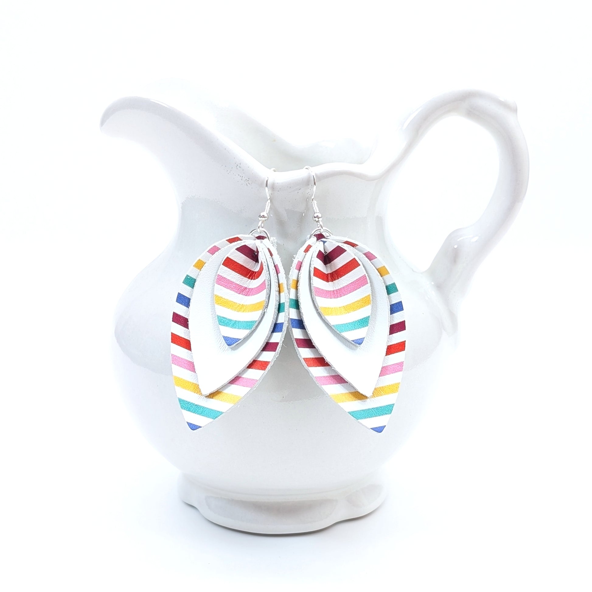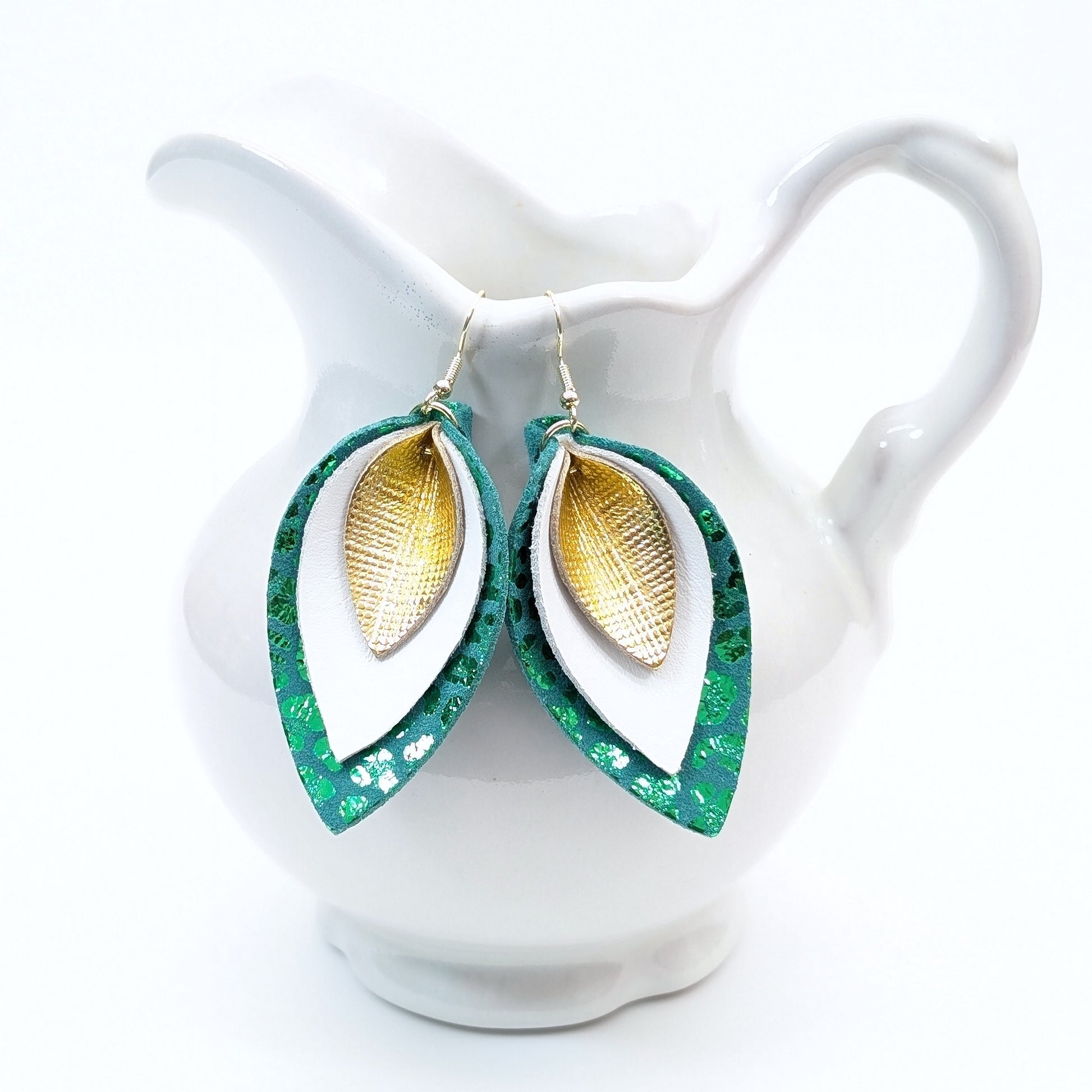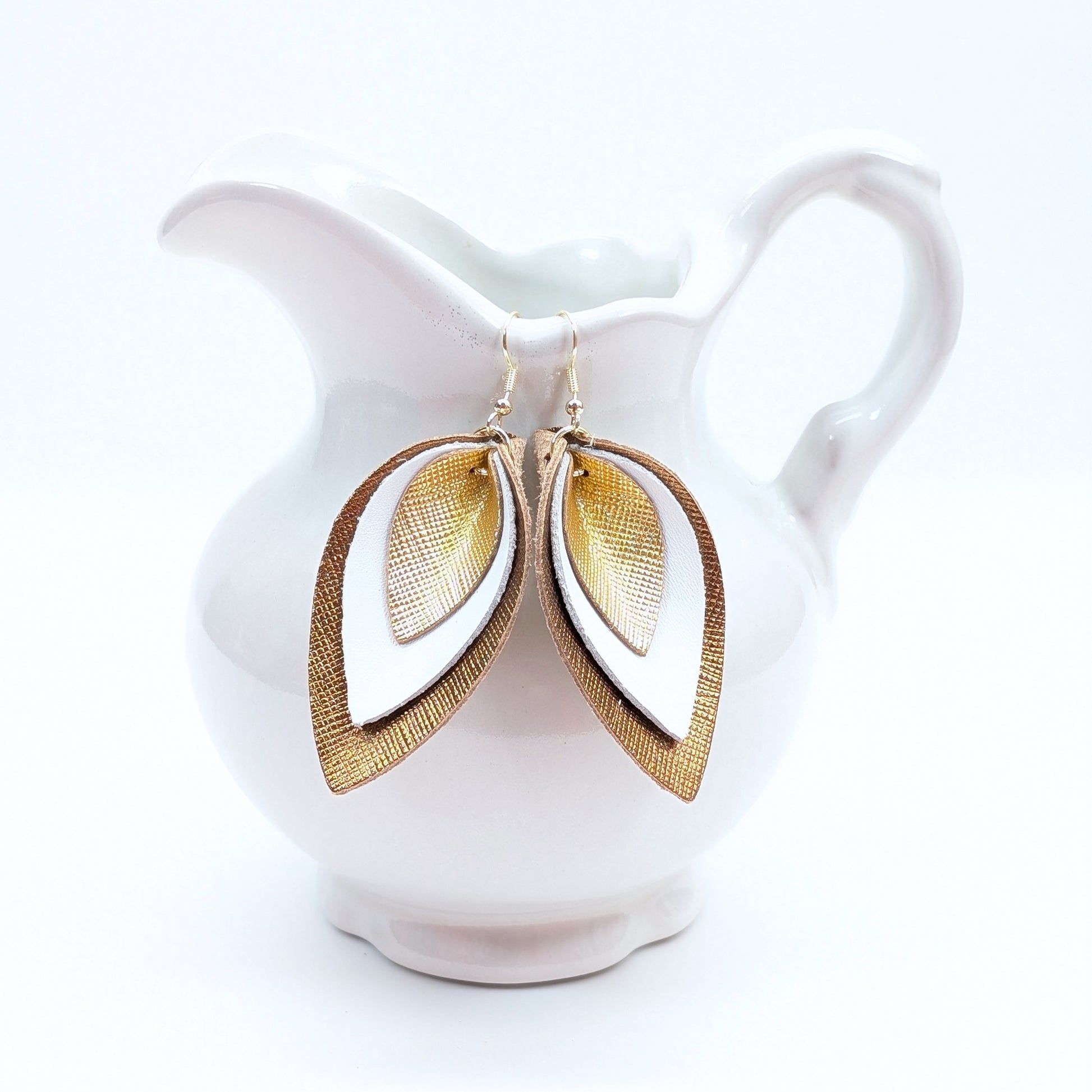 Triple layered, lightweight, petal-shaped earrings. Customize in your choice of leather.