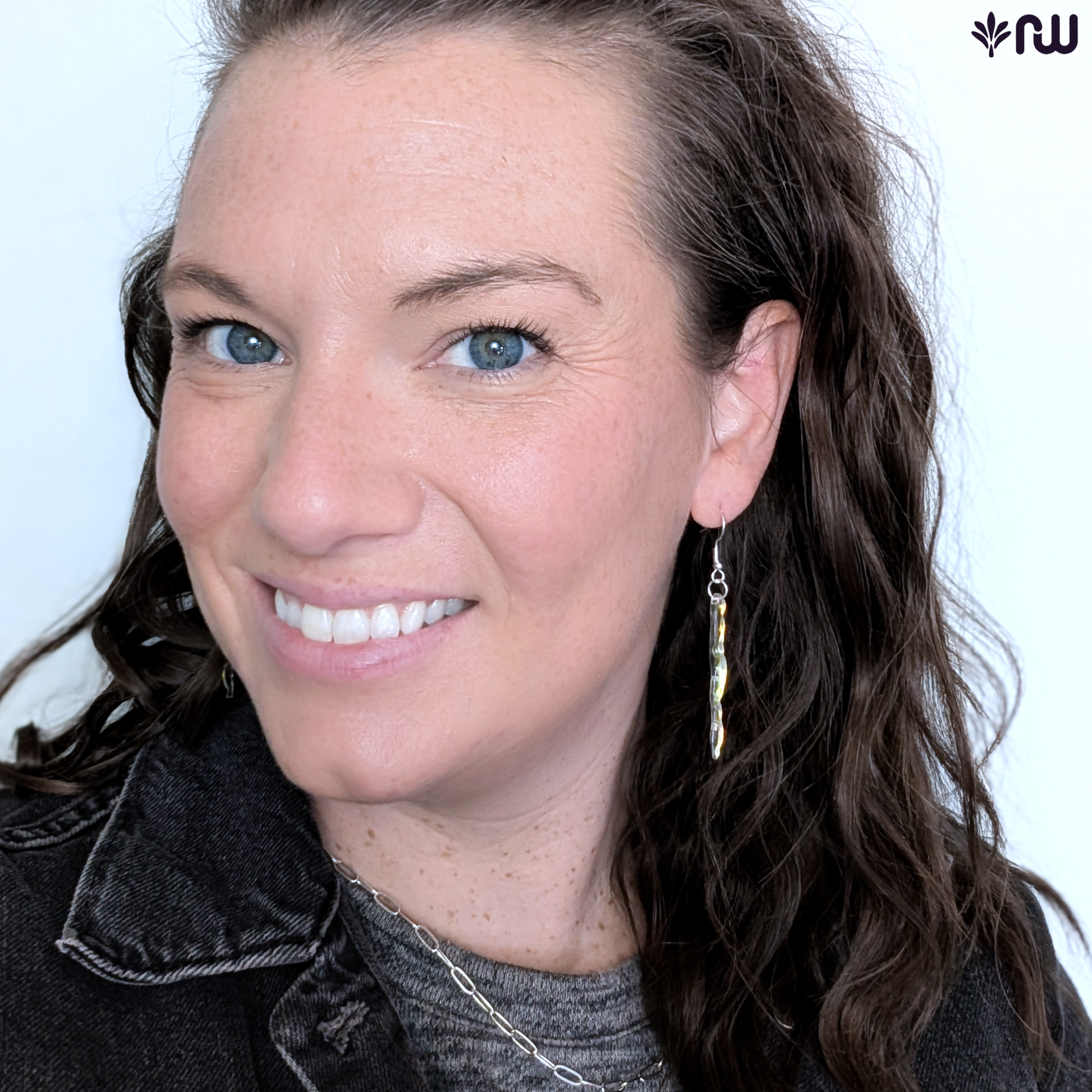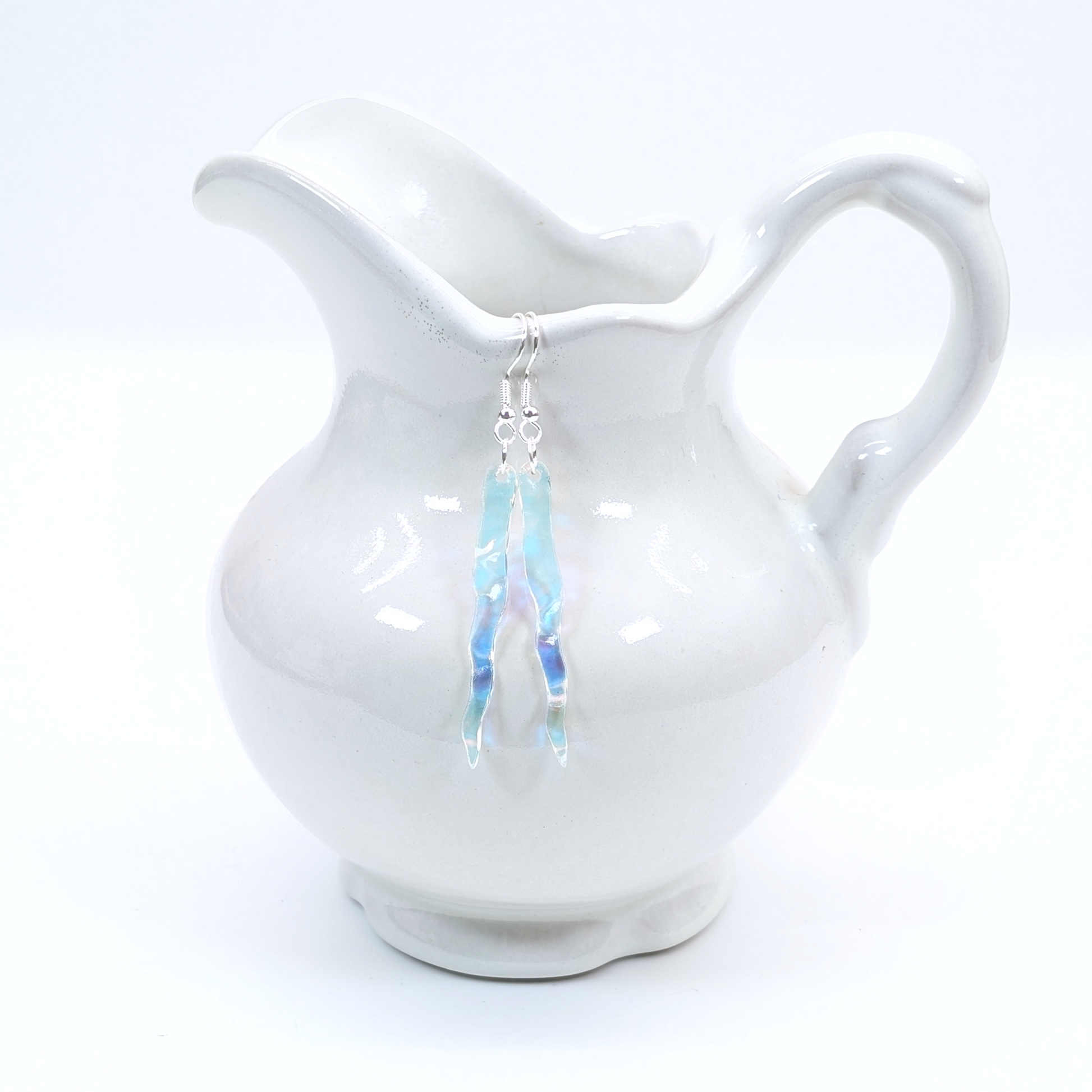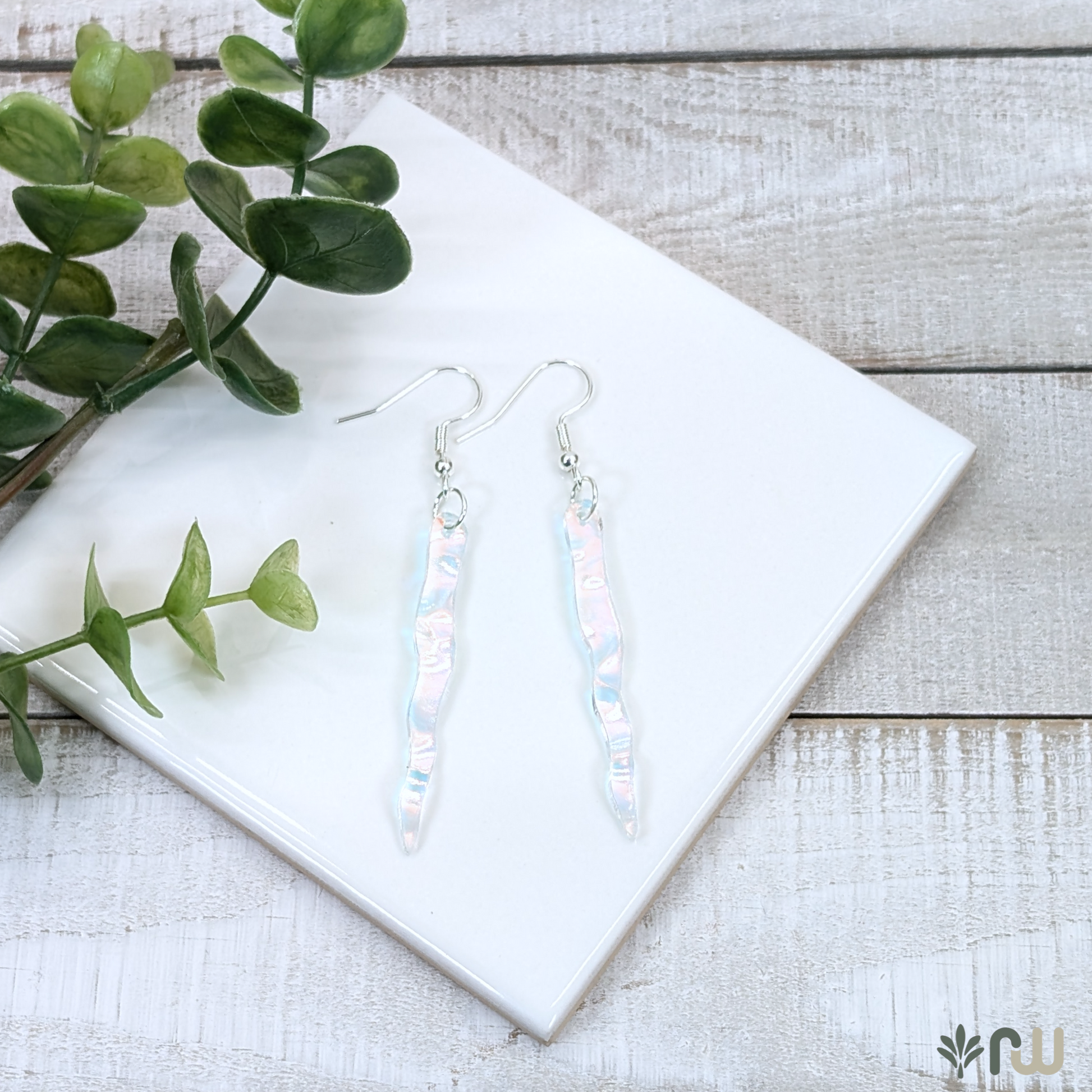 Icicle earrings in a wavy surface iridescent acrylic (similar to Opal with a wavy surface).