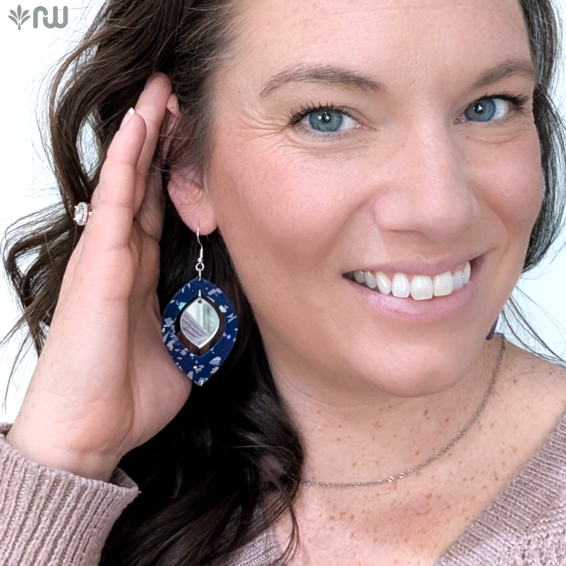 2 Piece Inlaid Leaf Earrings. Customizable in all of our Hardwood and Acrylic materials.