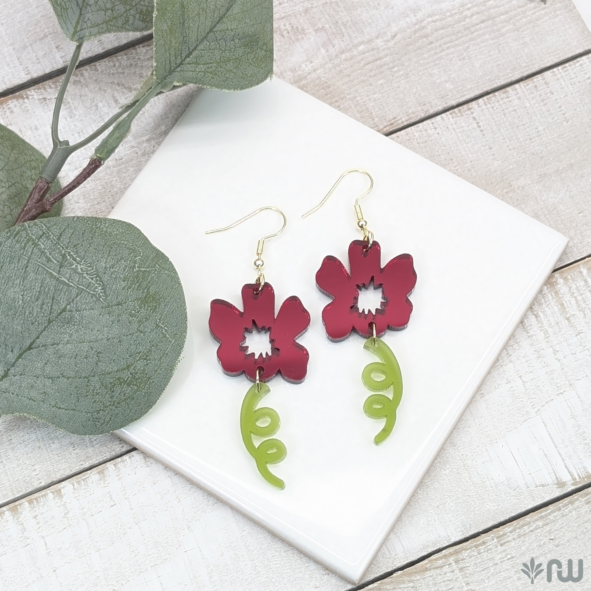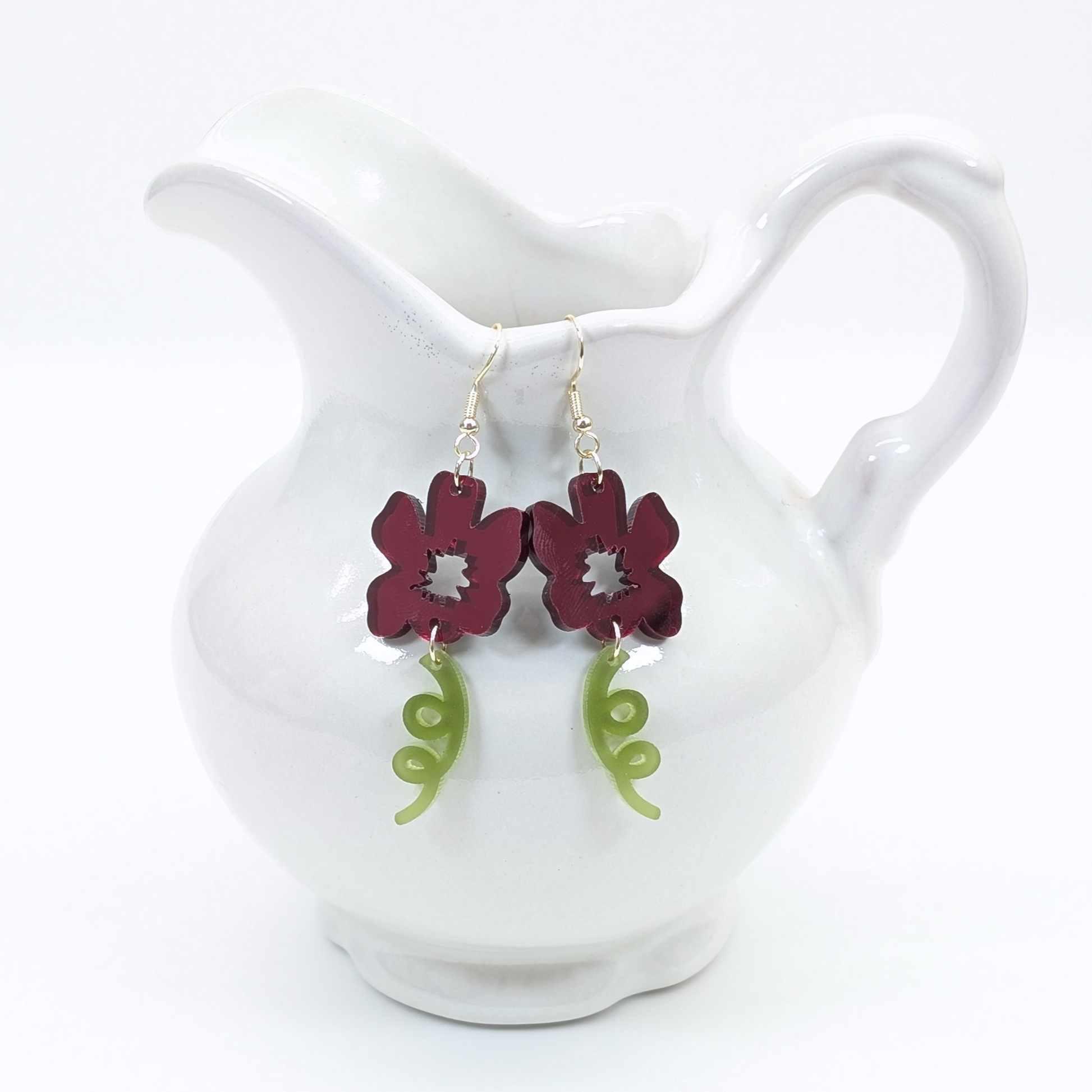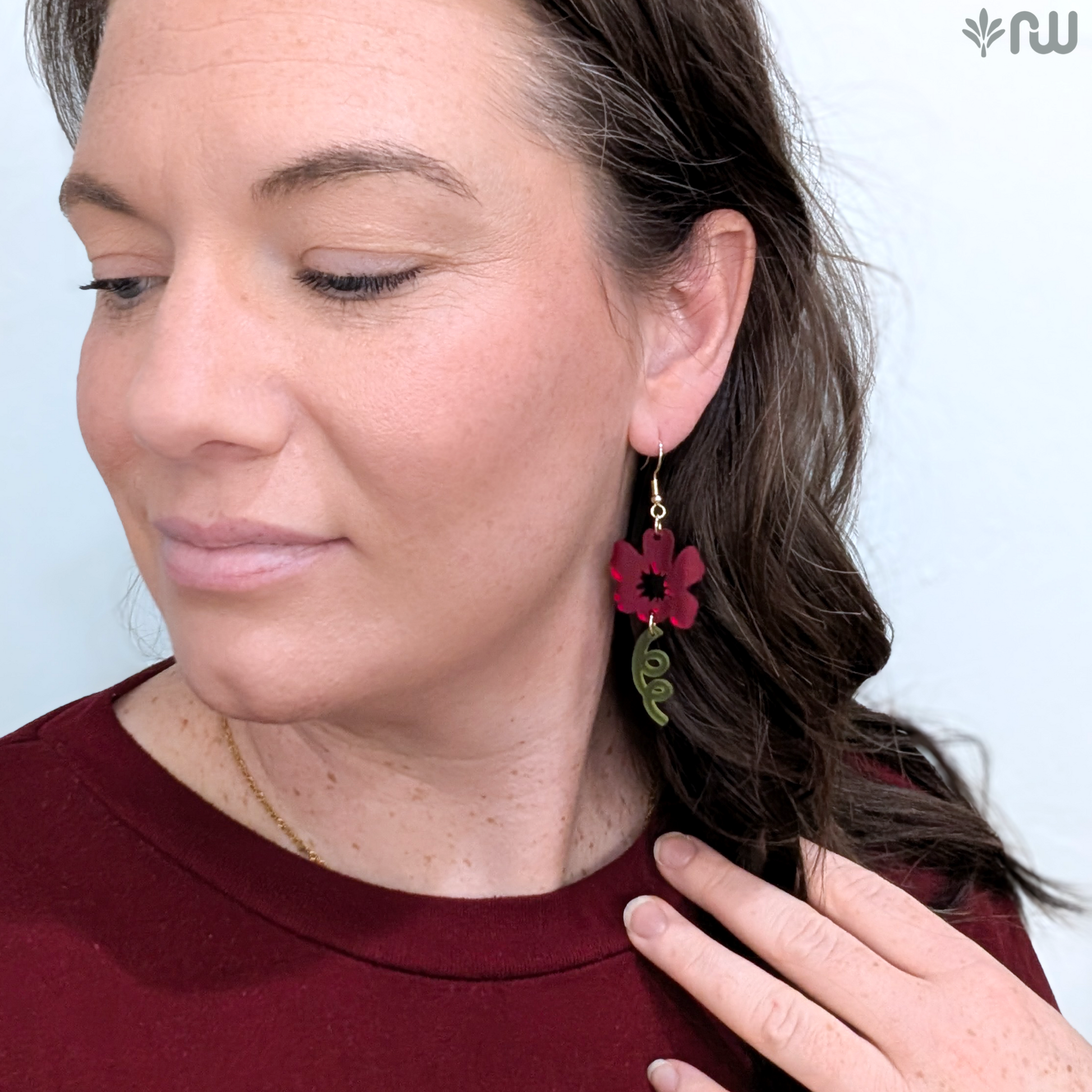 2 Piece Poppy Flower Earrings. Customizable in all of our Hardwood and Acrylic materials.