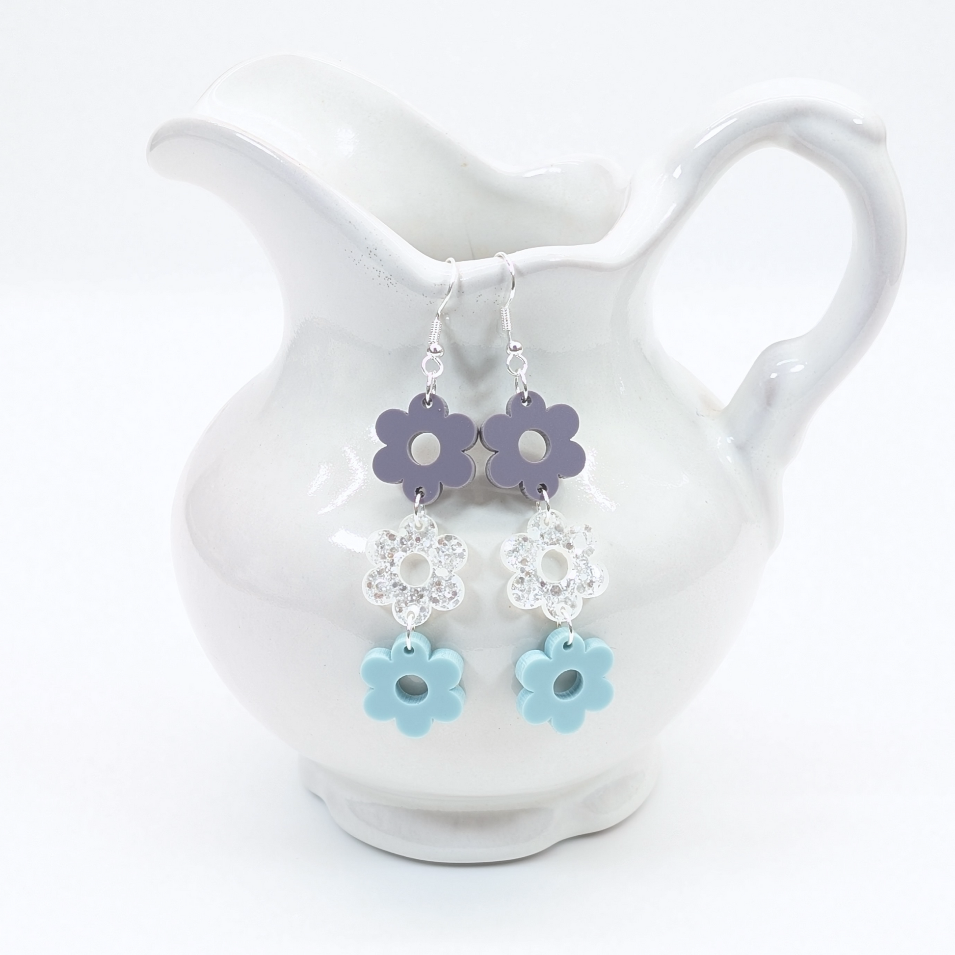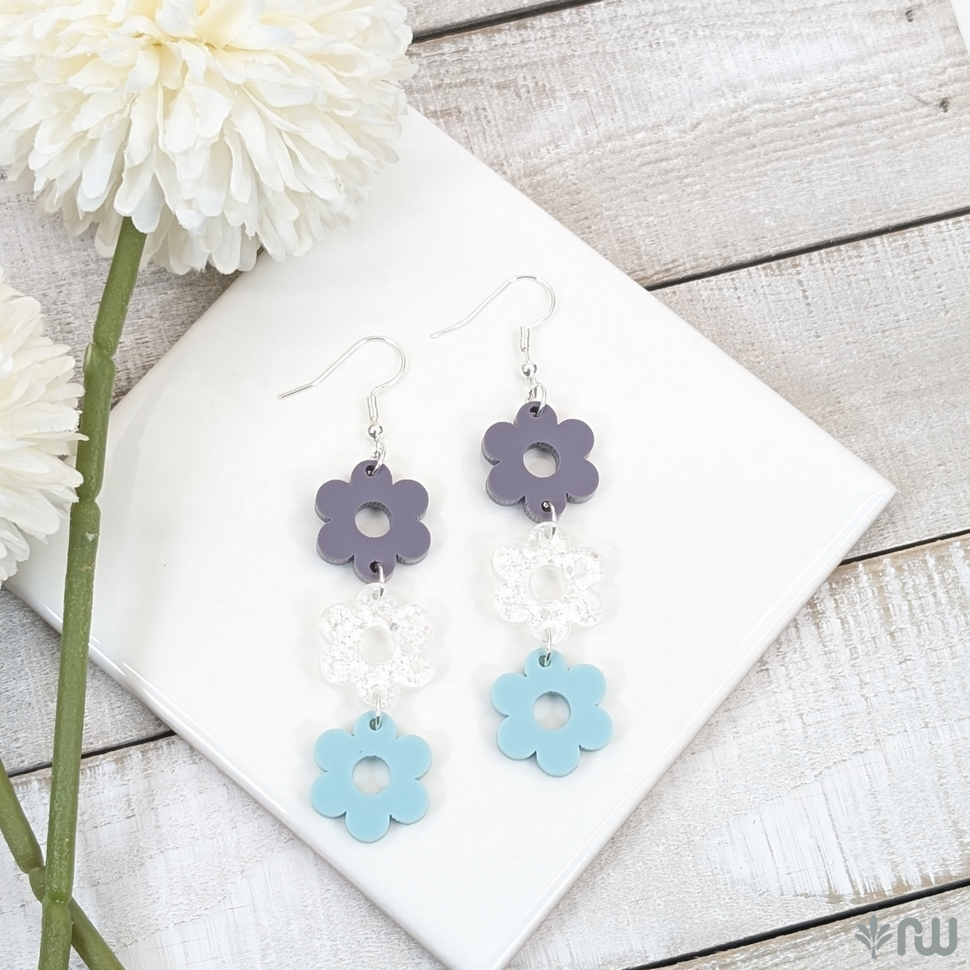 3 Piece Flower Earrings. Customizable in all of our Hardwood and Acrylic materials.