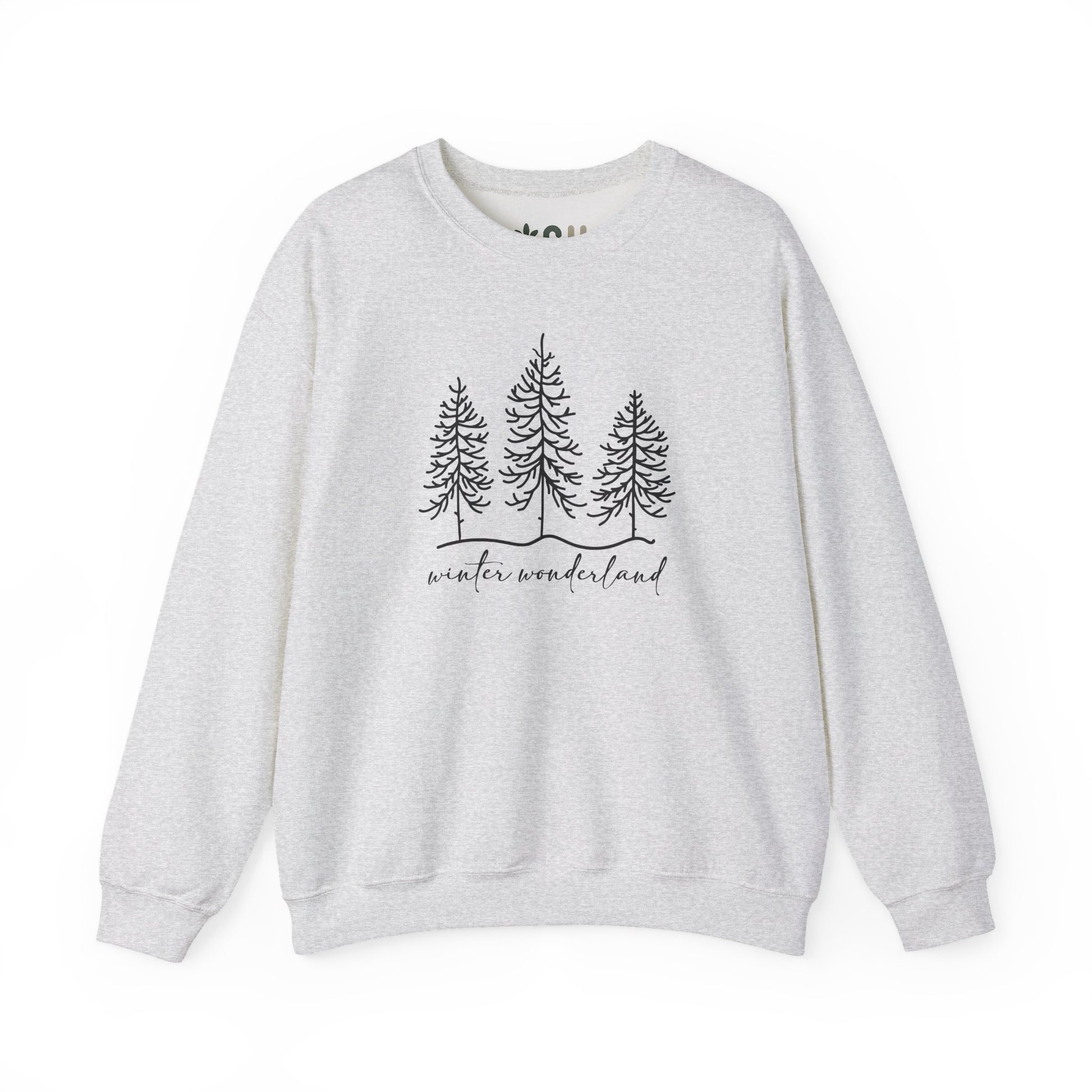 Cozy up in the magic of the season with our "Winter Wonderland" crewneck sweatshirt, the perfect blend of comfort and festive charm. Crafted from a soft, breathable cotton-blend, this unisex crewneck offers a relaxed fit and all-day warmth without the hood. The eye-catching design features three delicate line-drawn evergreen trees standing atop a gentle snowy hill, paired with the elegant handwritten script "winter wonderland" beneath. Ideal for crisp winter outings, holiday gatherings, or gifting to seasonal enthusiasts, this crewneck is a trendy way to embrace the serene, joyful vibes of a snow-dusted forest getaway.